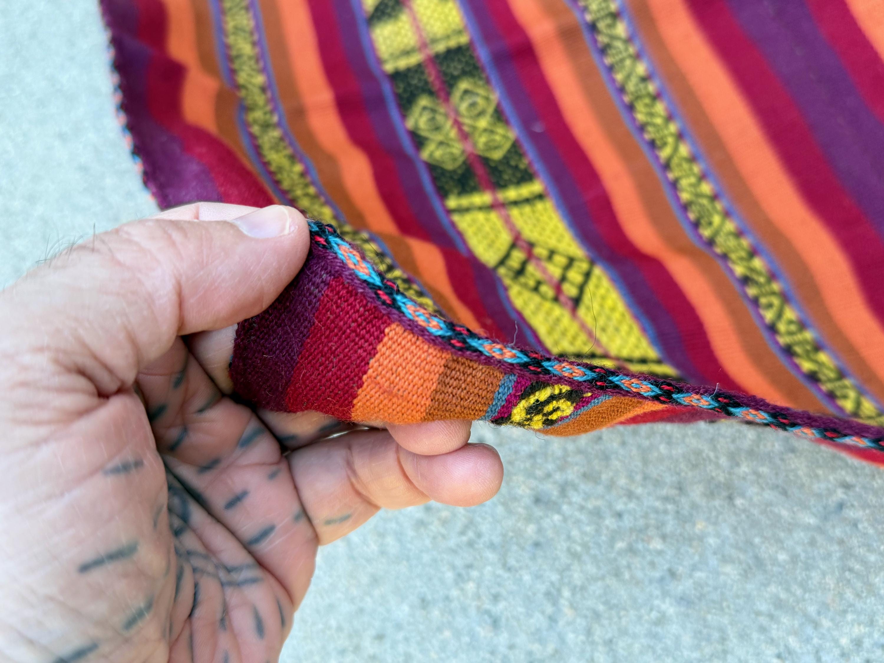 It is in excellent condition with very tight stitching, clean borders and no staining or areas of wear. It is soft enough and thin enough to "bundle" easily, for shamanic disciplines that require a bundling of their mesa. This would make the most handsome manta for ceremony or home mesa. So beautiful!