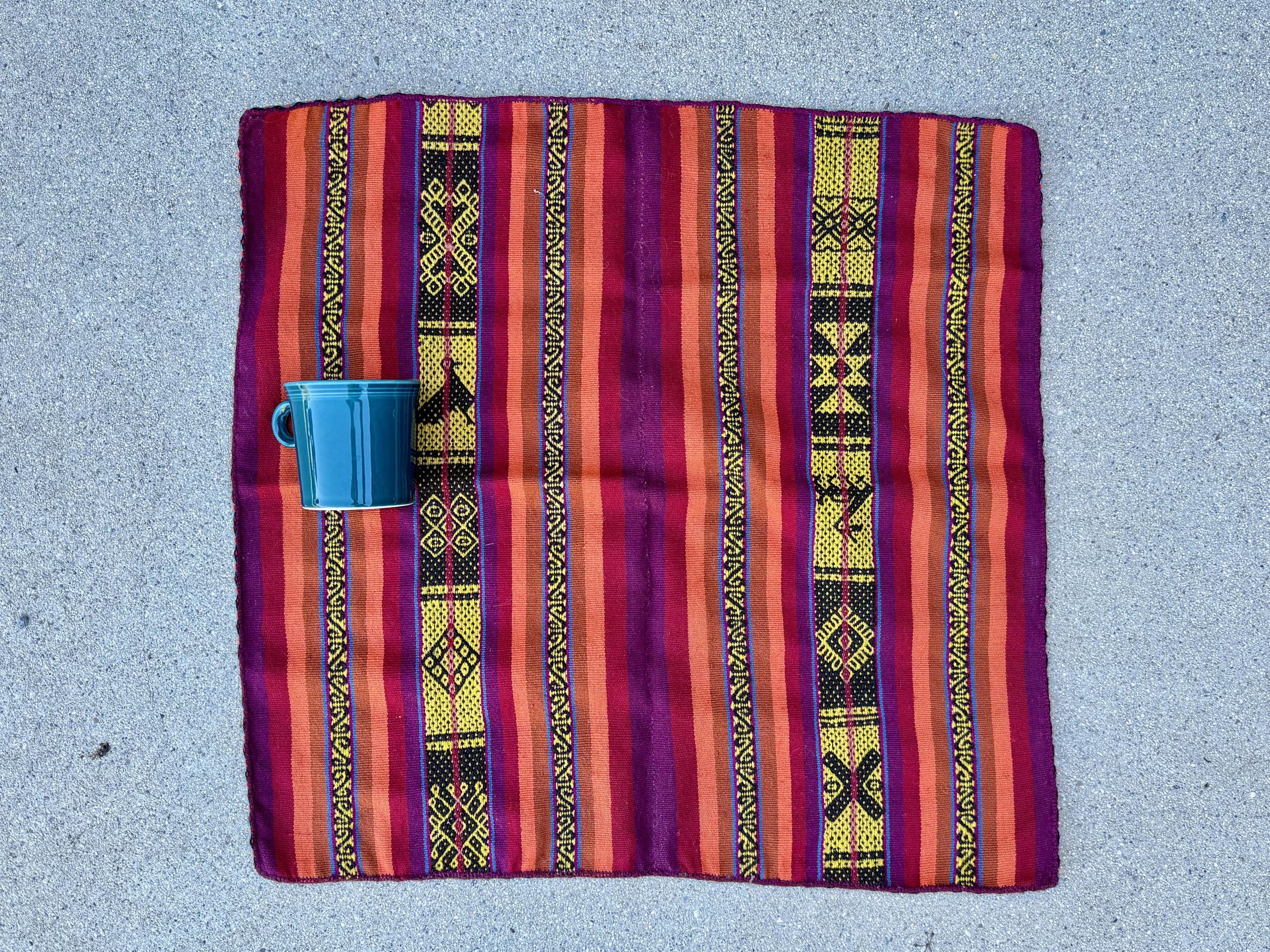 Made from Alpaca wool, cotton and natural fibers, these manta cloths are hand loomed, and can take many months to complete. They may be adorned with traditional symbols such as coca leaves, animals, or other geometric designs that are considered sacred to the indigenous Andean people. They are used traditionally as altar cloths for one's "mesa" (or shamanic altar), as a setting for one's shamanic tools during plant medicine ceremonies, or in some cases, as a surface for doing coca leaf divination.