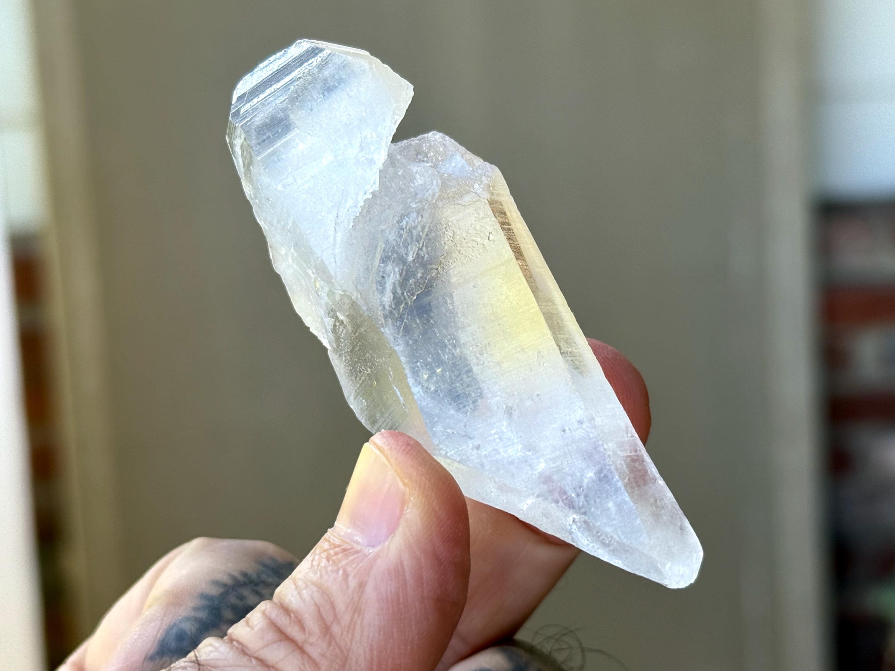 One of the most uniquely formed Lemurians we've seen from this collection! This is a brilliantly lustrous and clear crystal with an unusual Double Terminated form that includes a Growth Interference imprint at the base.