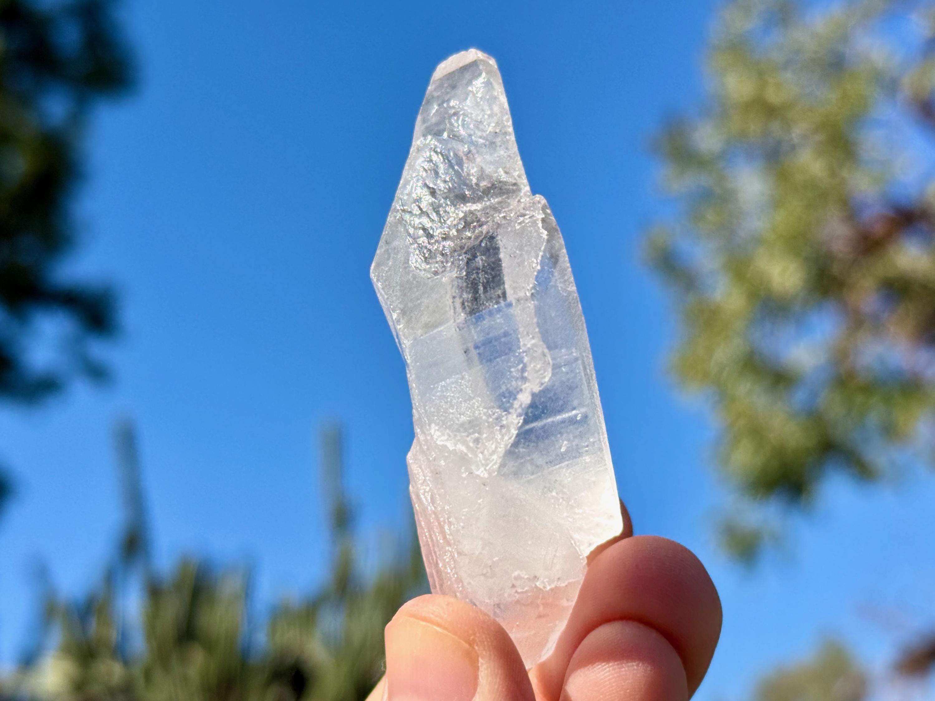 Lemurian Quartz resonates with all chakras, but primarily the Crown Chakra. It has one of the highest vibrations of any crystal and is a beautiful companion for meditation and to realign energies in the body. It can assist in clearing blockages in one's energy field and/or chakras, dispelling heavy energies from the body. If there is stagnant energy in the body, it can help to increase Prana (life force) energy to get things moving properly again. Meditating with Lemurian Crystals can allow us to connect with higher-dimensional spirit guides and connect to Divine realms, as well as to decode the information they contain within.