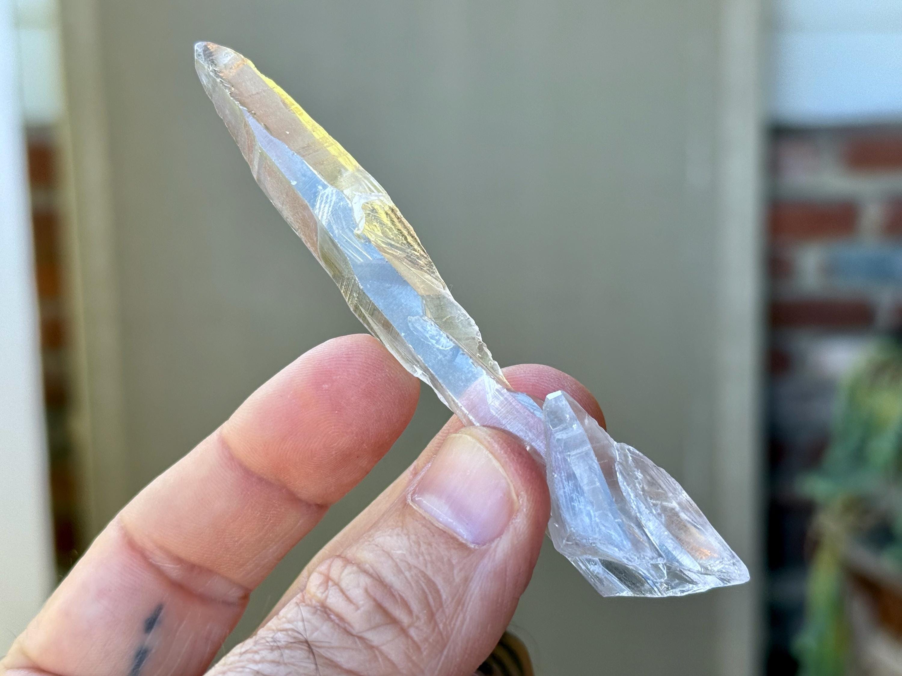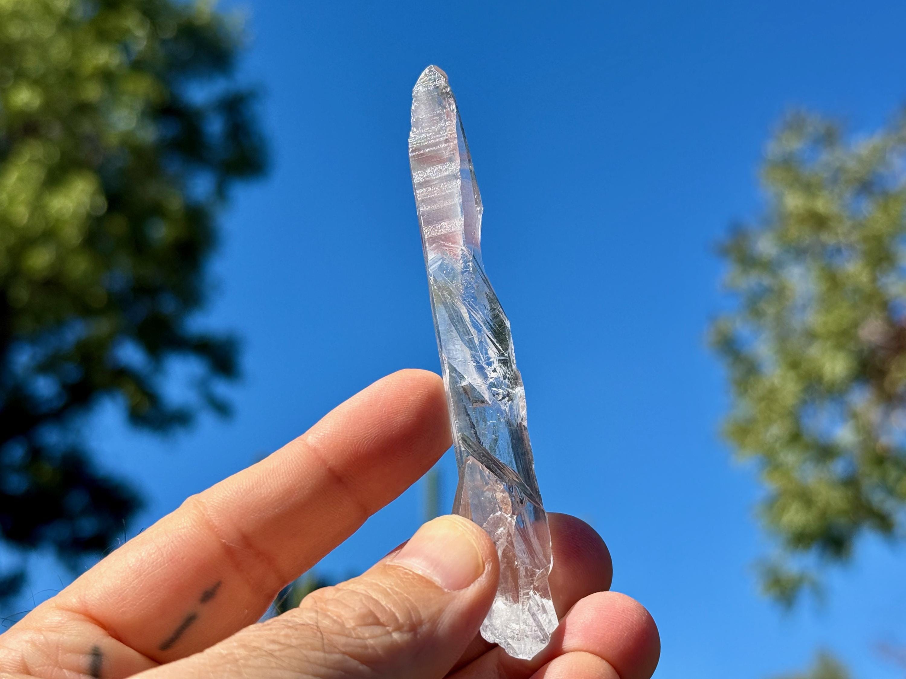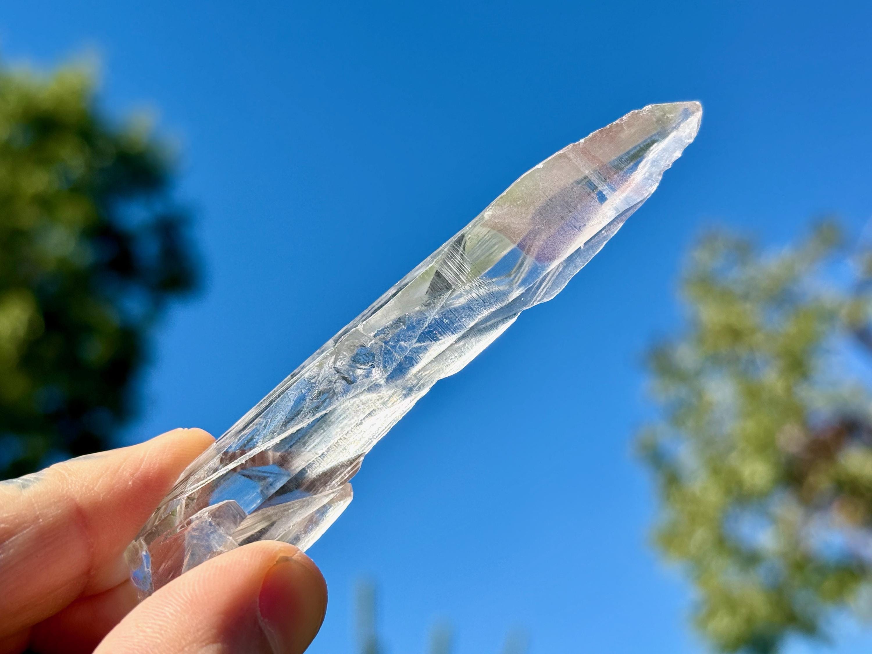 Lemurian Quartz resonates with all chakras, but primarily the Crown Chakra. It has one of the highest vibrations of any crystal and is a beautiful companion for meditation and to realign energies in the body. It can assist in clearing blockages in one's energy field and/or chakras, dispelling heavy energies from the body. If there is stagnant energy in the body, it can help to increase Prana (life force) energy to get things moving properly again. Meditating with Lemurian Crystals can allow us to connect with higher-dimensional spirit guides and connect to Divine realms, as well as to decode the information they contain within.
