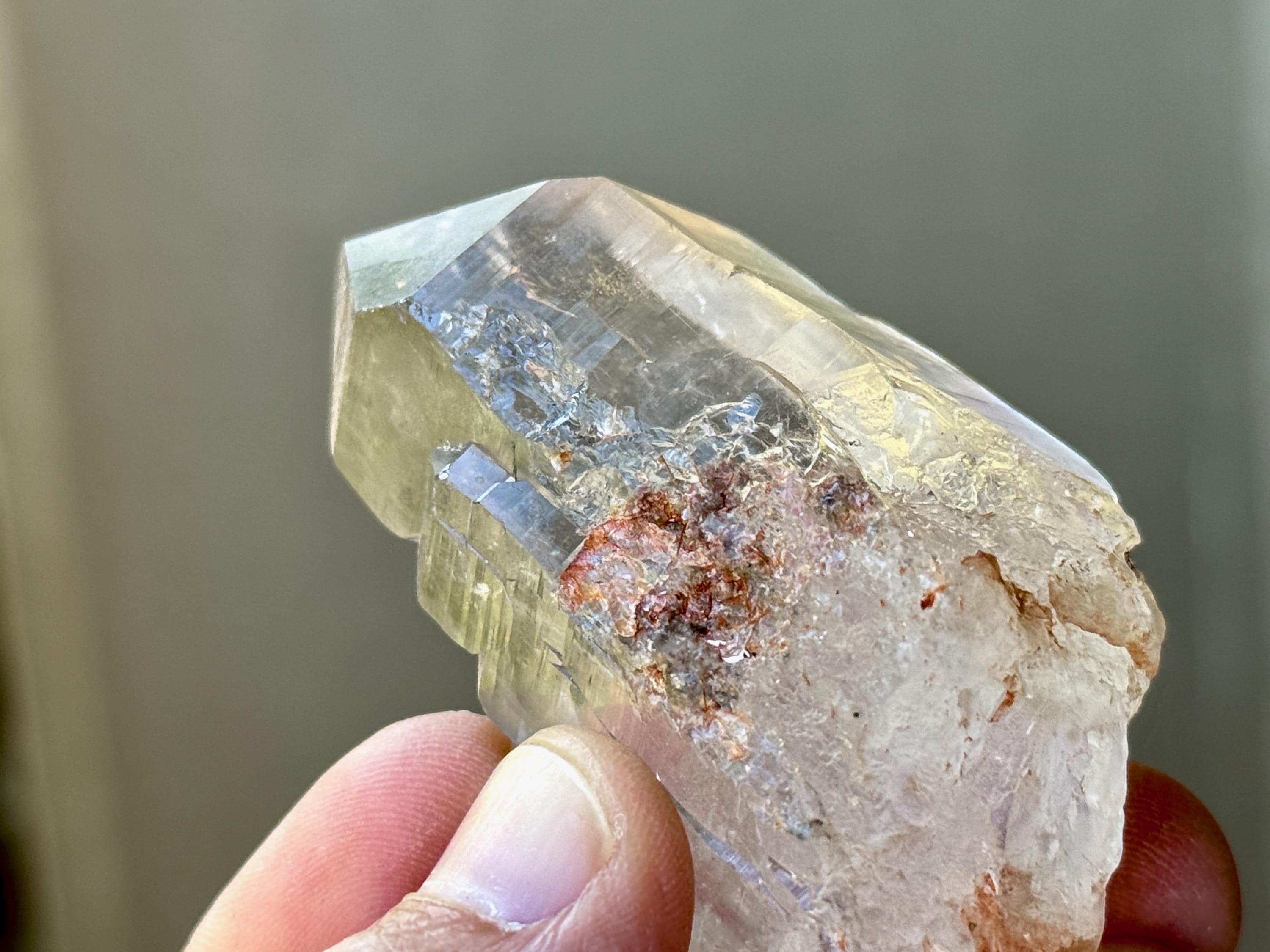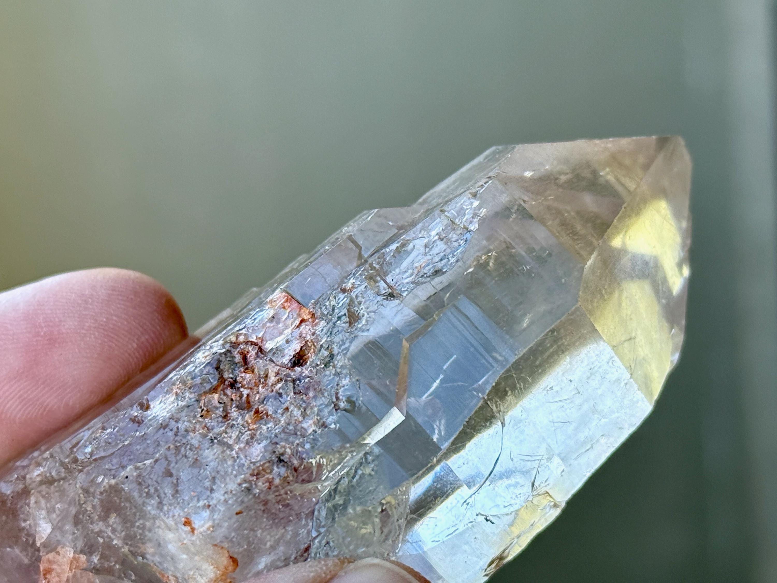 One surprise on this piece are some *very* thin needles of either Black Rutile or Black Tourmaline that are floating within the crystal (Photo 4). Great termination to this special piece.