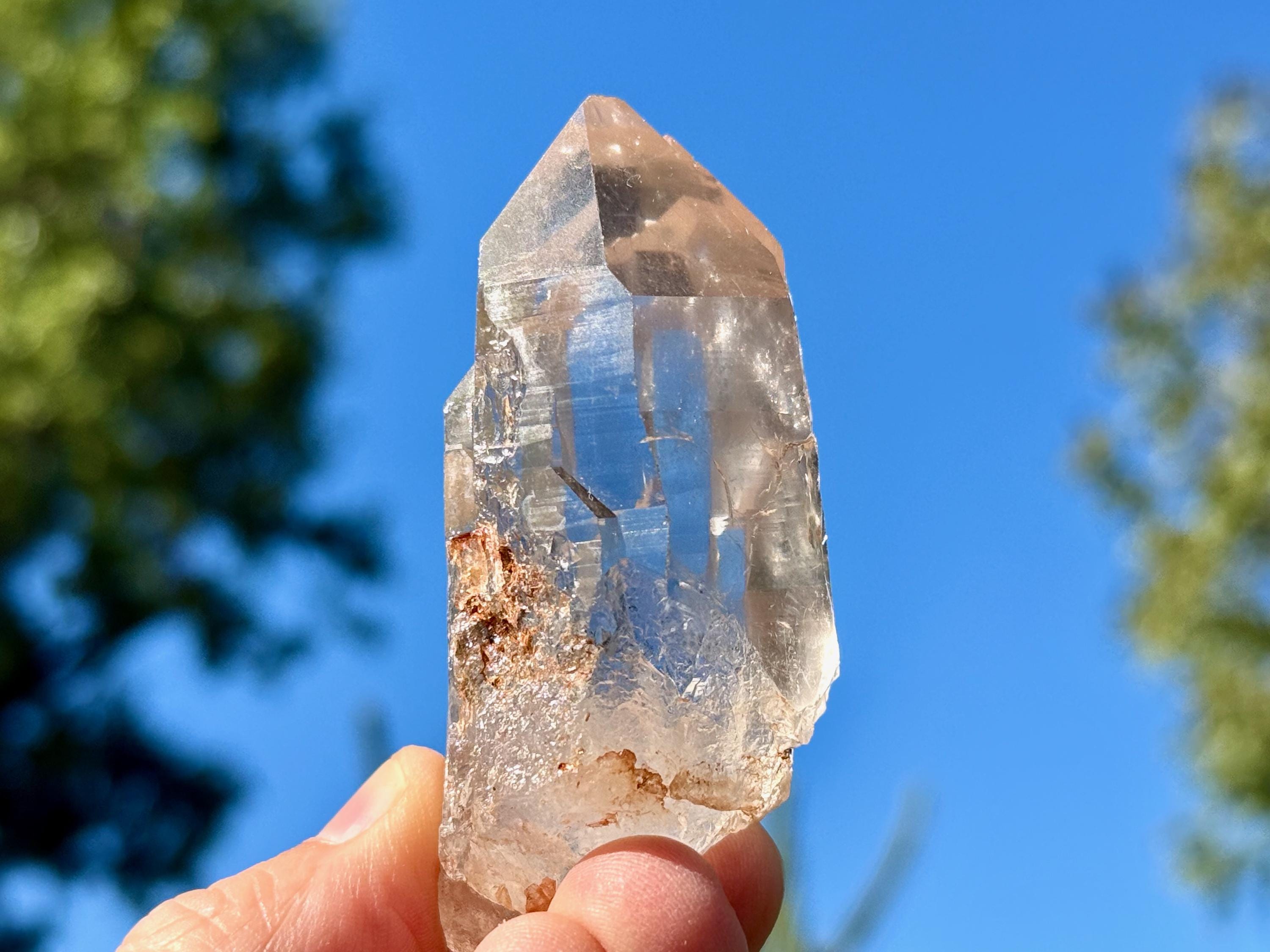 Water clear clarity and magnificent luster to this stunning Cathedral Quartz crystal from Diamantina. This crystal exhibits the quintessential cathedral form, with various spires on its sides. There's a *very* slight reddish tinge to the crystal, due to the Hematite inclusion that we see more prominently on the exterior near the base.