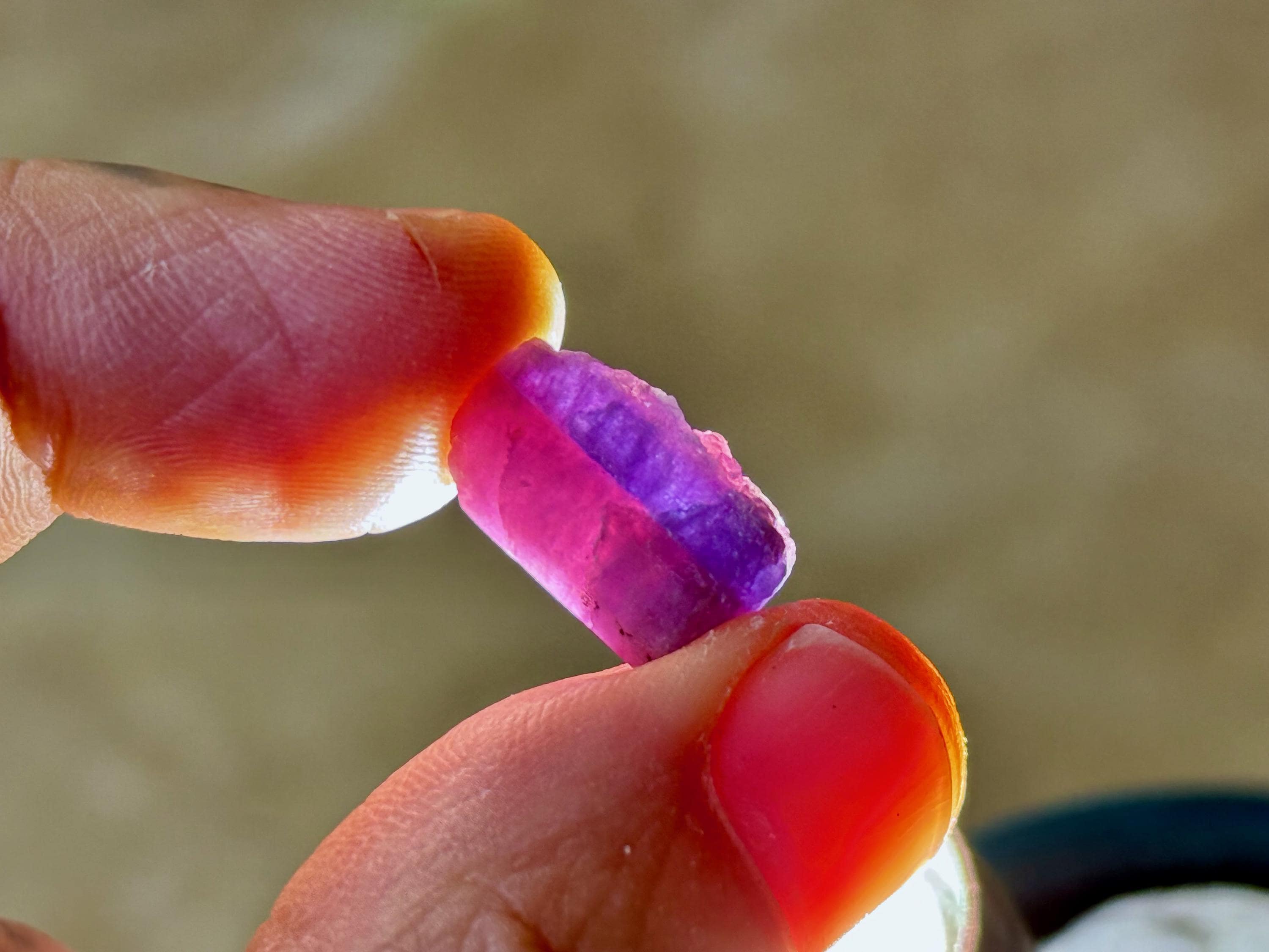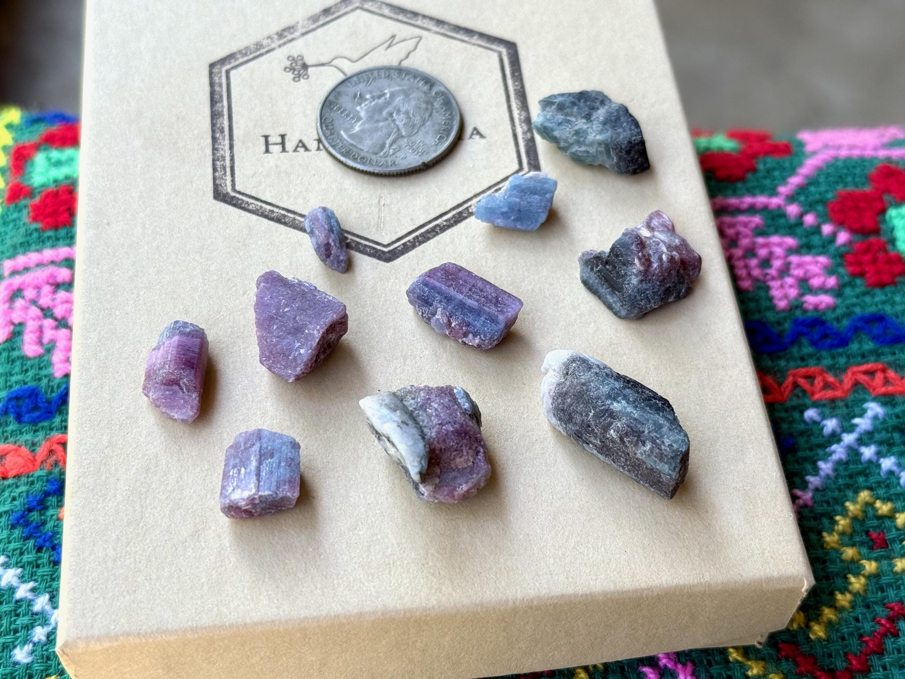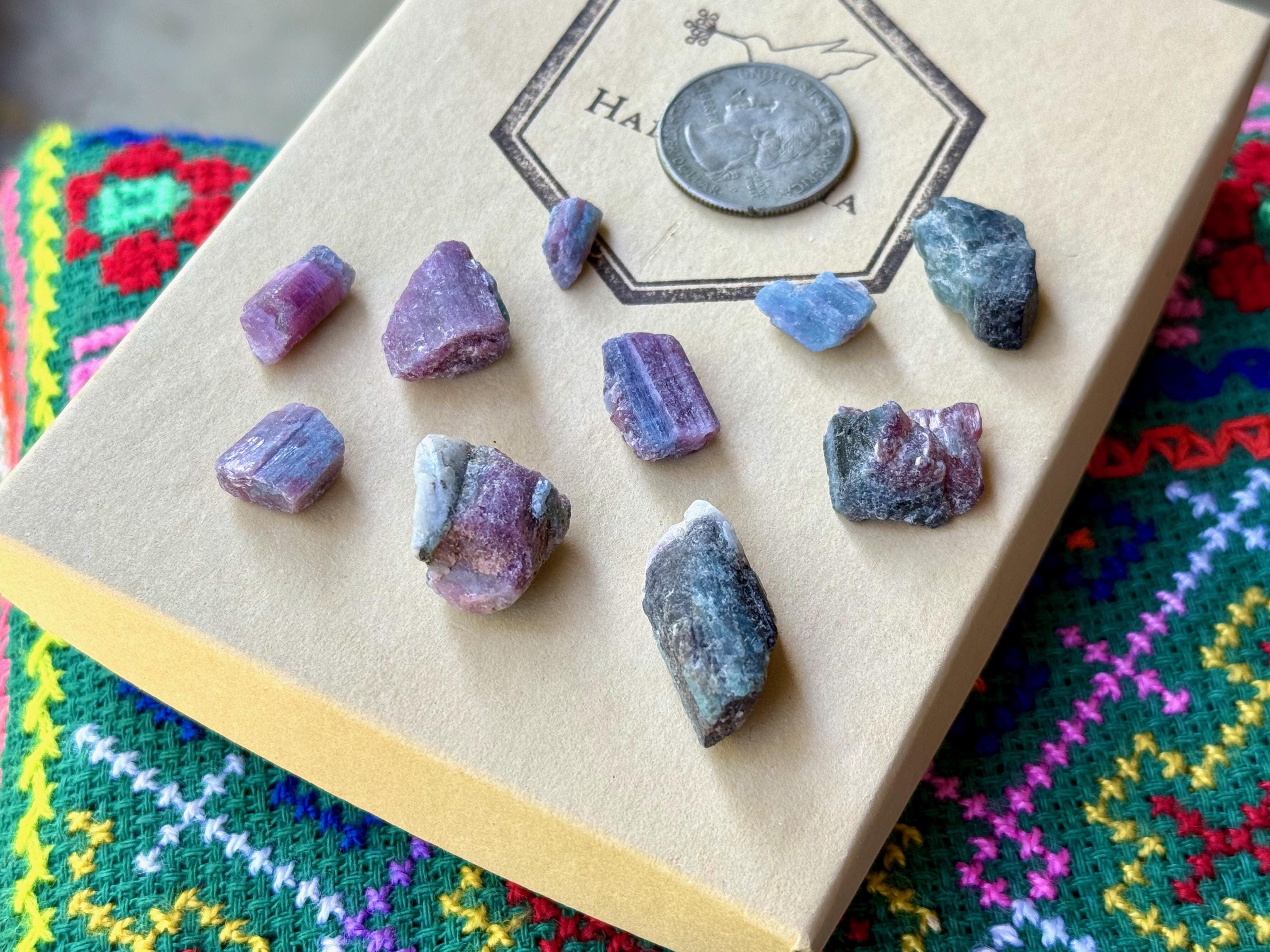 This lot of TEN multicolor Paraiba Tourmalines comes from an old find in Paraiba State, Brazil. This lot features natural (unpolished) crystals with gradient hues of pink, blue and purple.