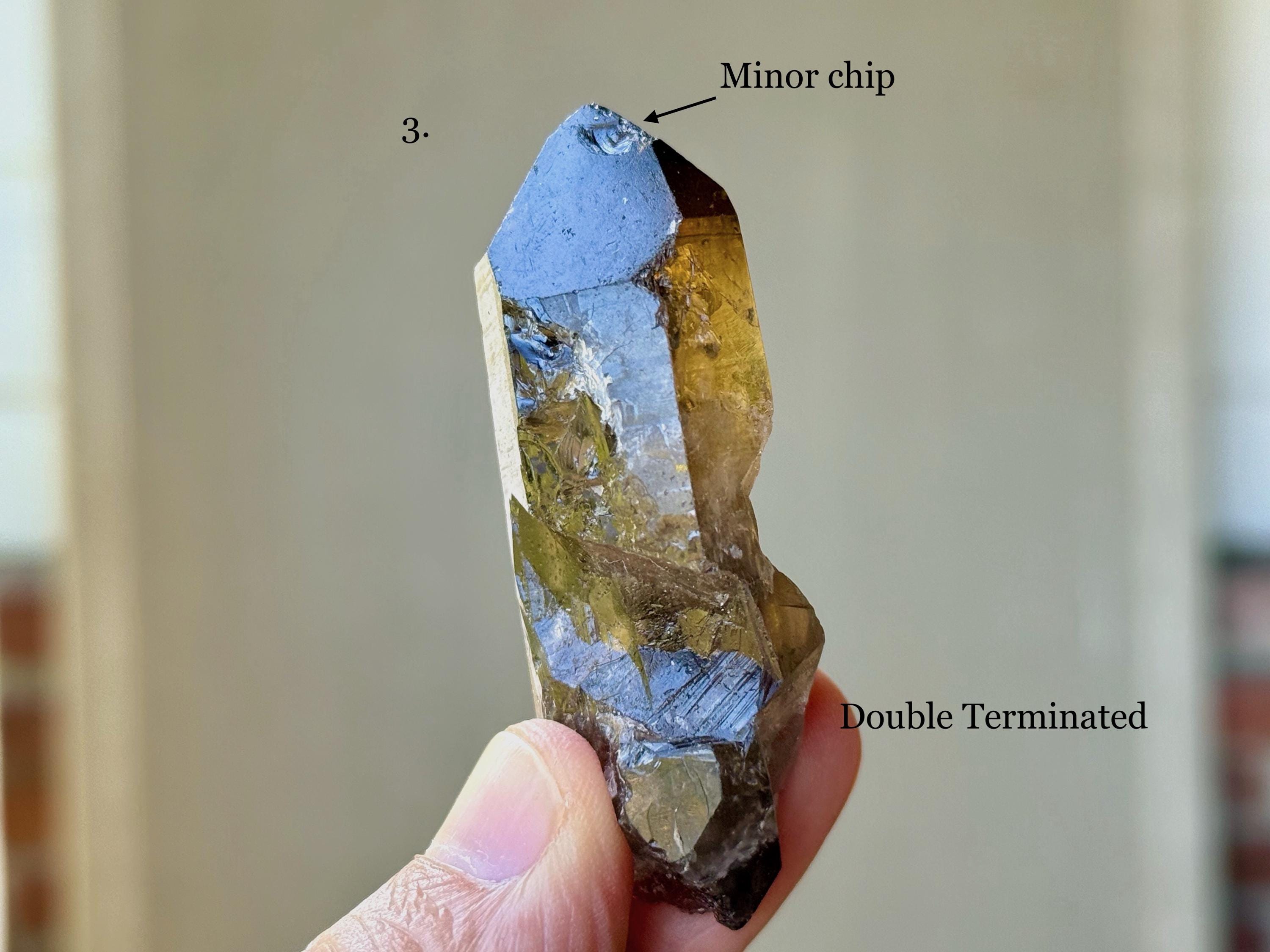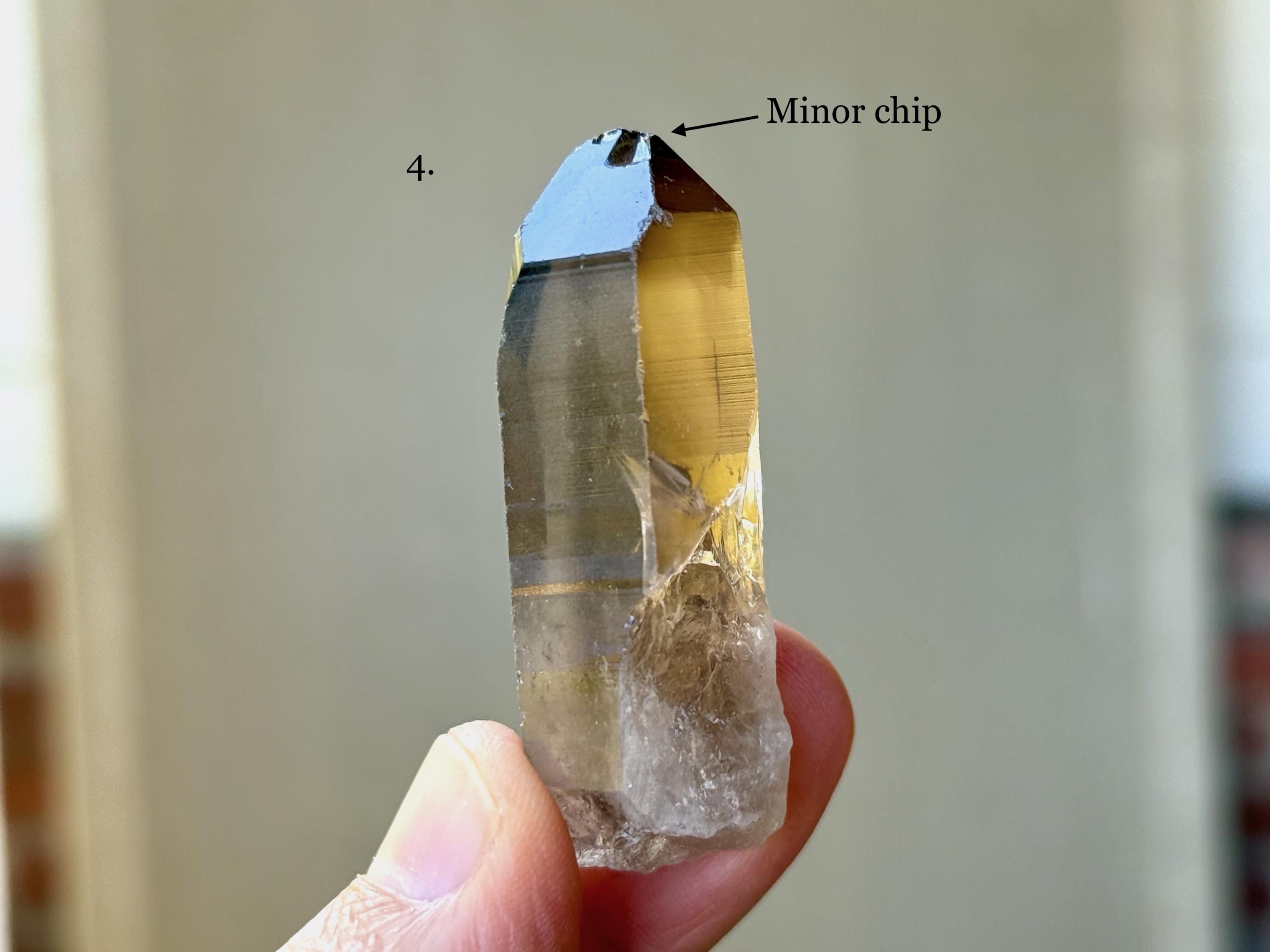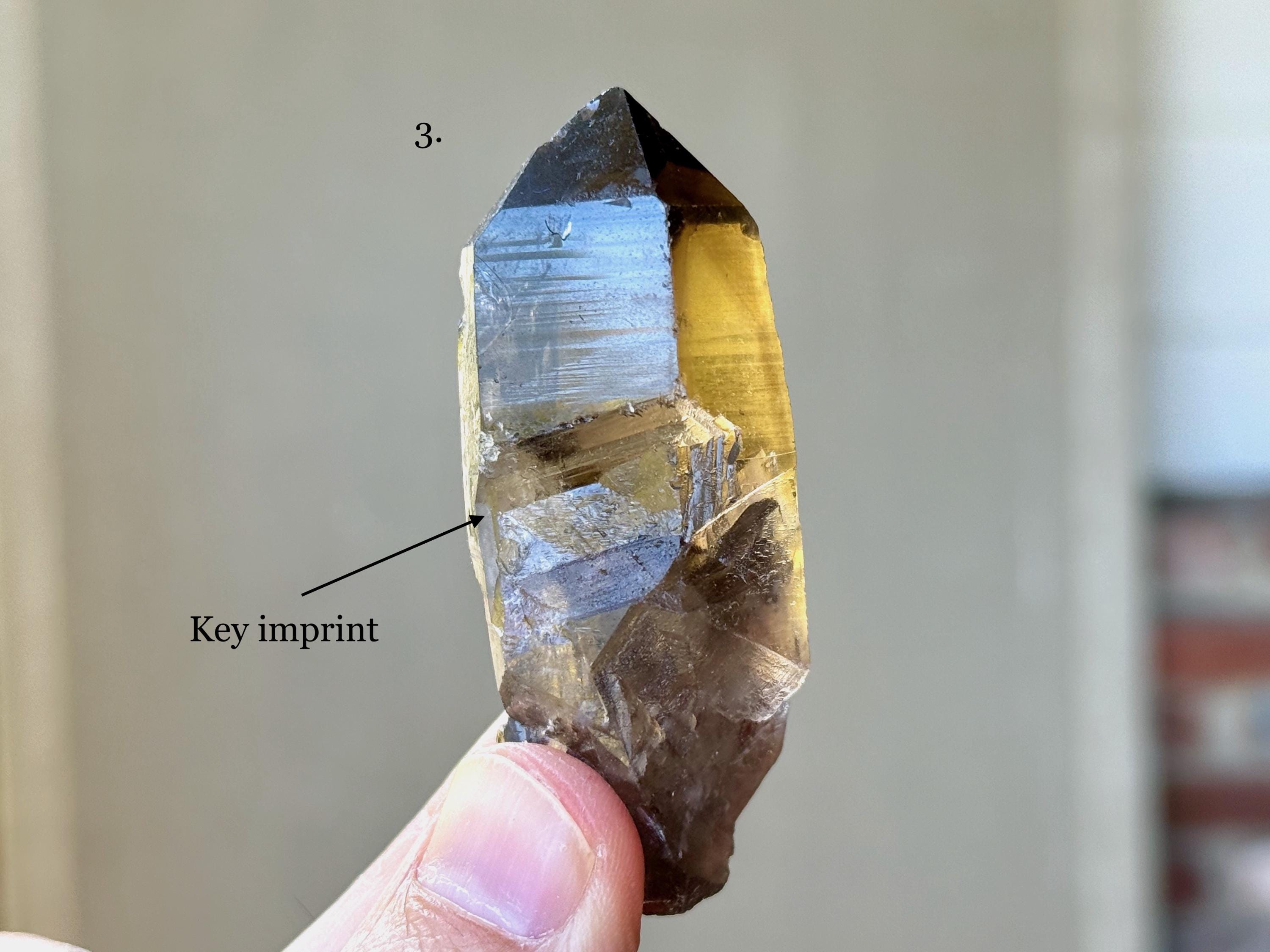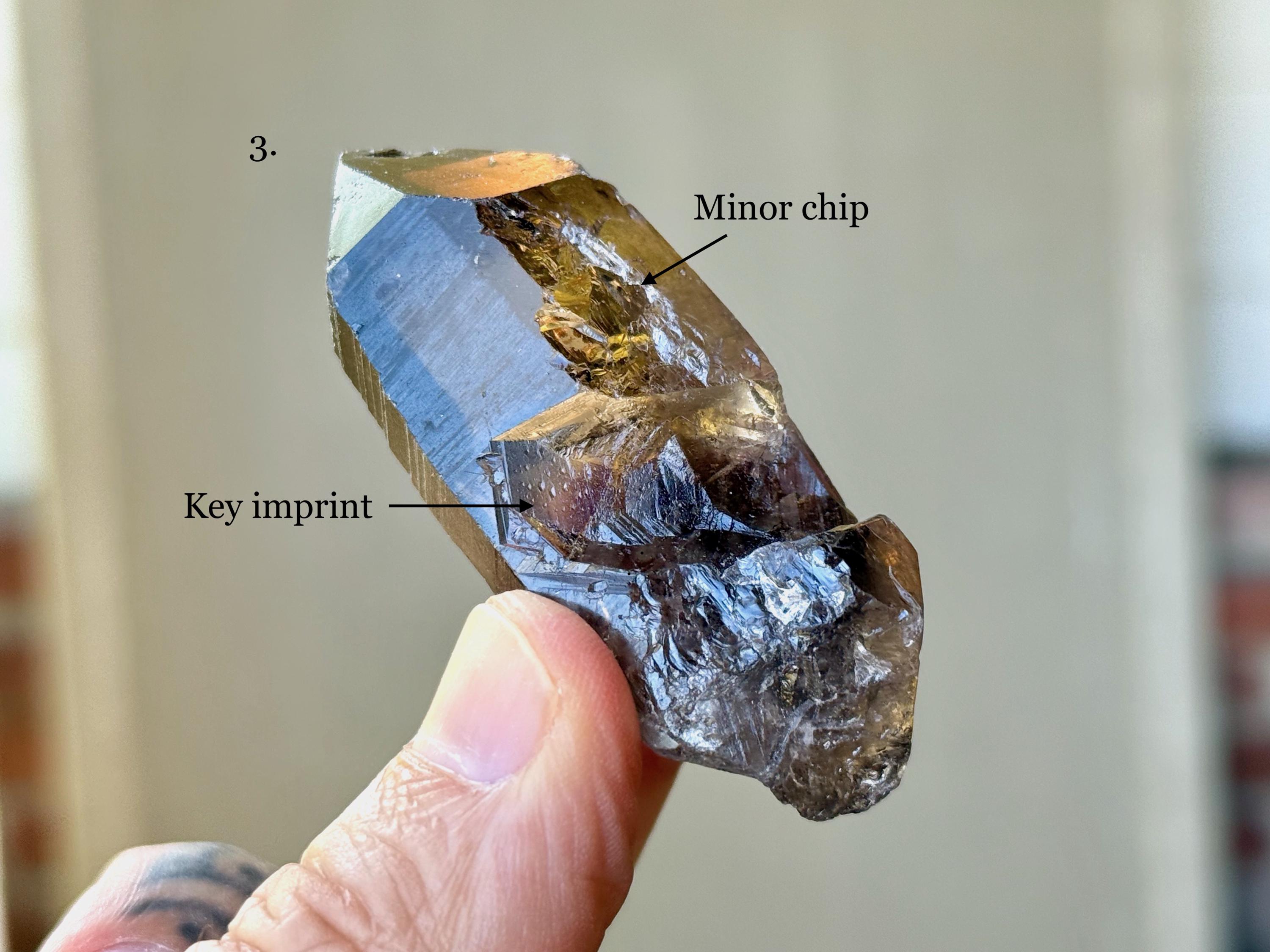 This is a new locale for Lemurian Quartz and these in particular are quite special, with very dark, almost black, smoky hues and rich, golden inclusions of Citrine. They are both aesthetically and energetically similar to the original "Shadow Healer" find in Minas Gerais, Brazil in the early 2000's. Shadow Healers are particularly powerful for doing deep inner work involving our own shadow-selves (see more at the end of this listing).