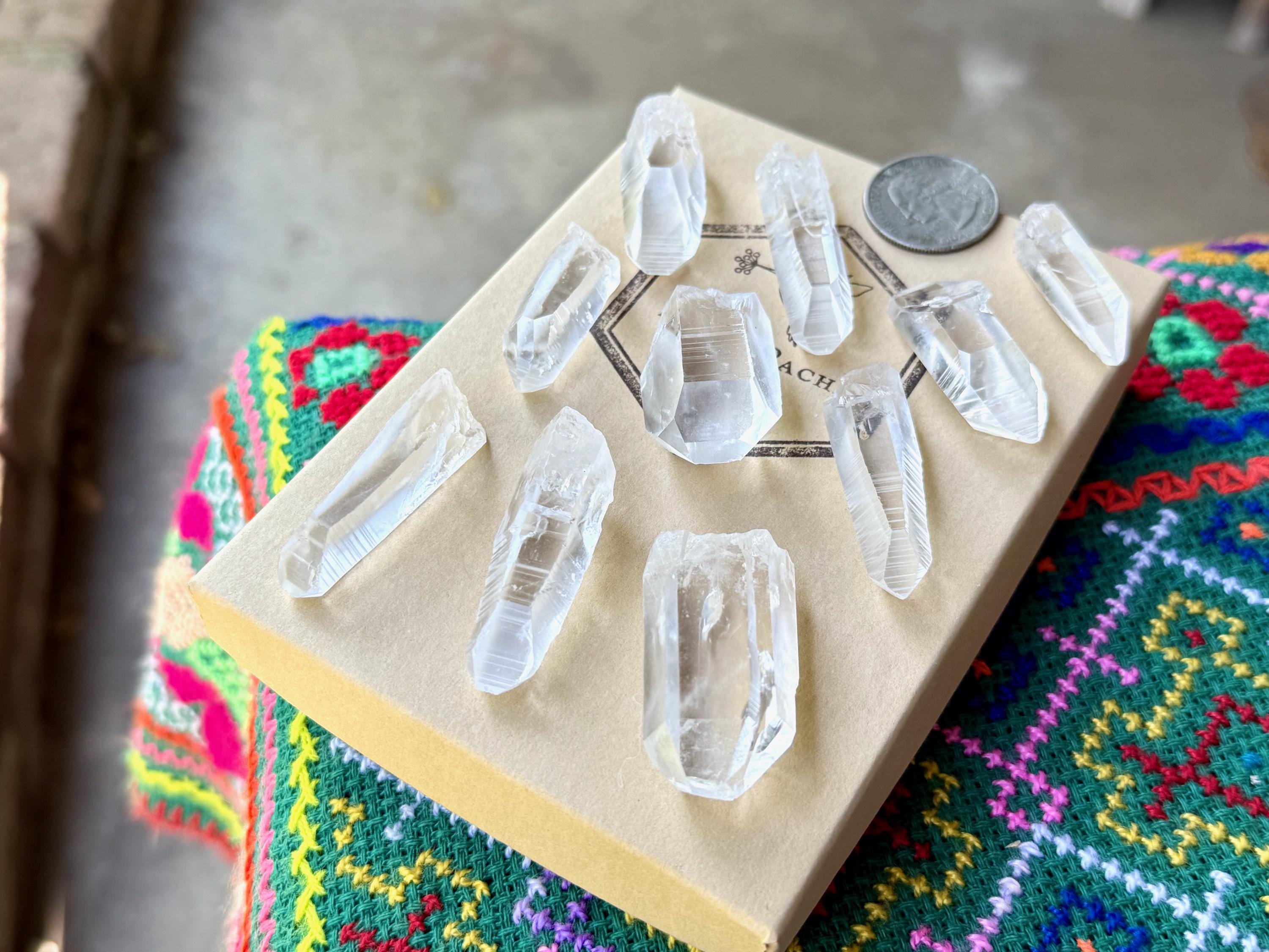This lot of TEN natural, high-grade Lemurian Quartz crystals comes from a recent find in the Serra do Cabral Mountains, Minas Gerais, Brazil.