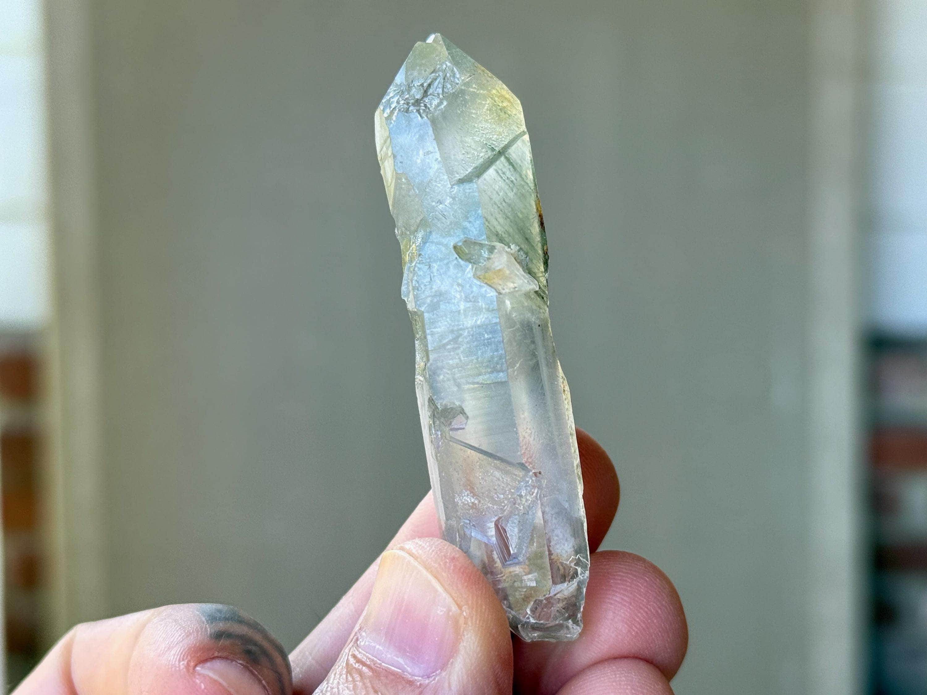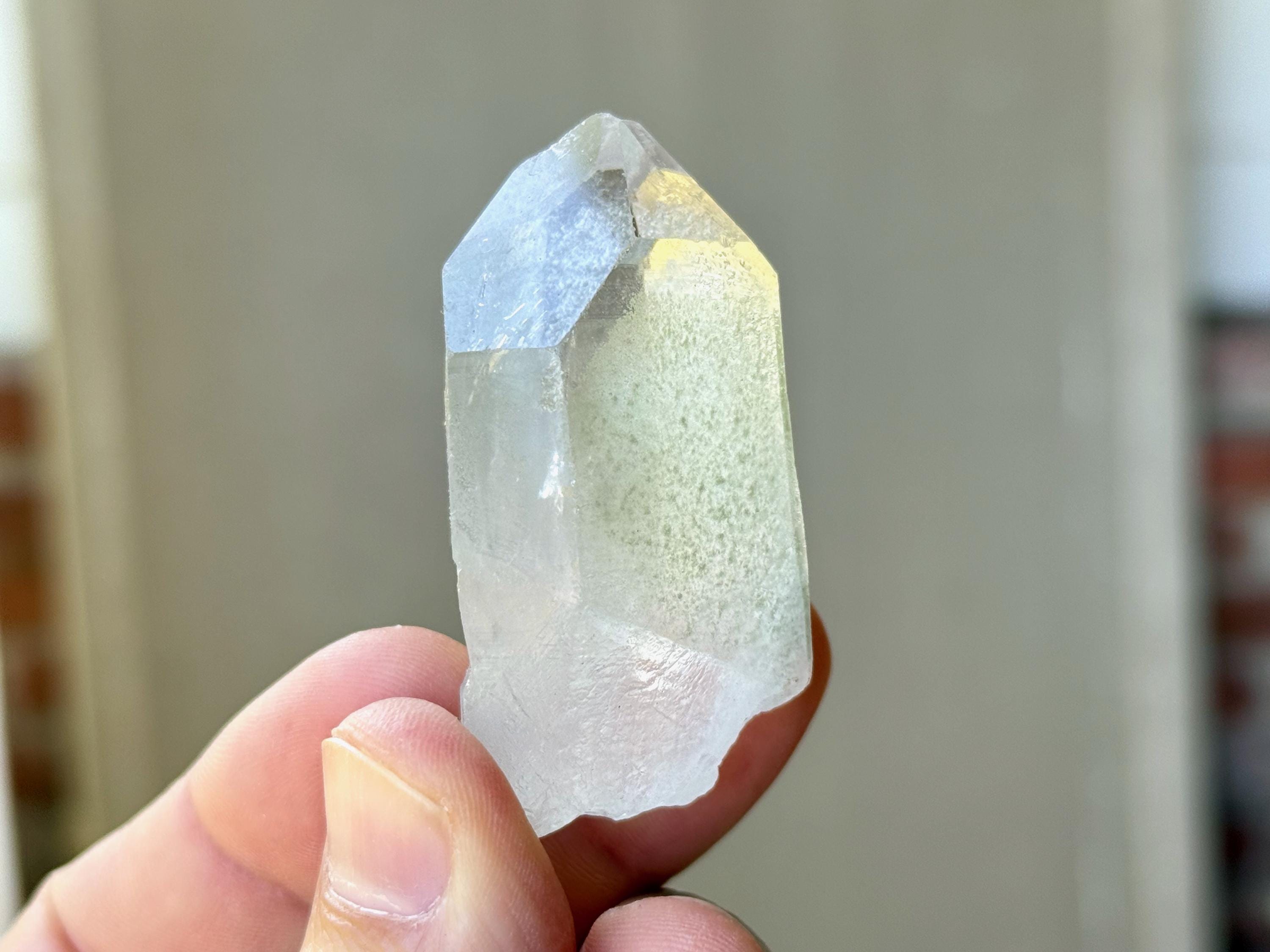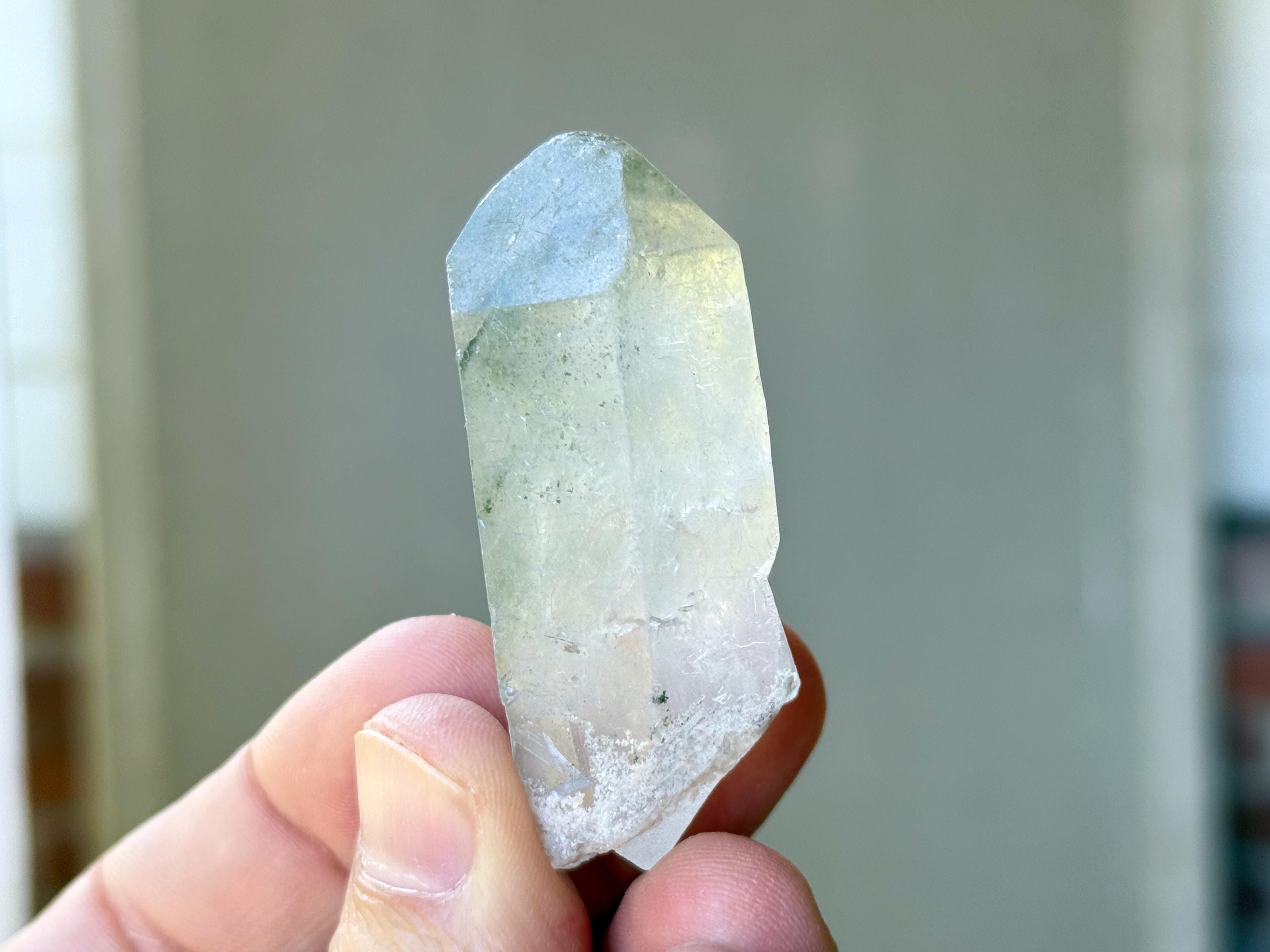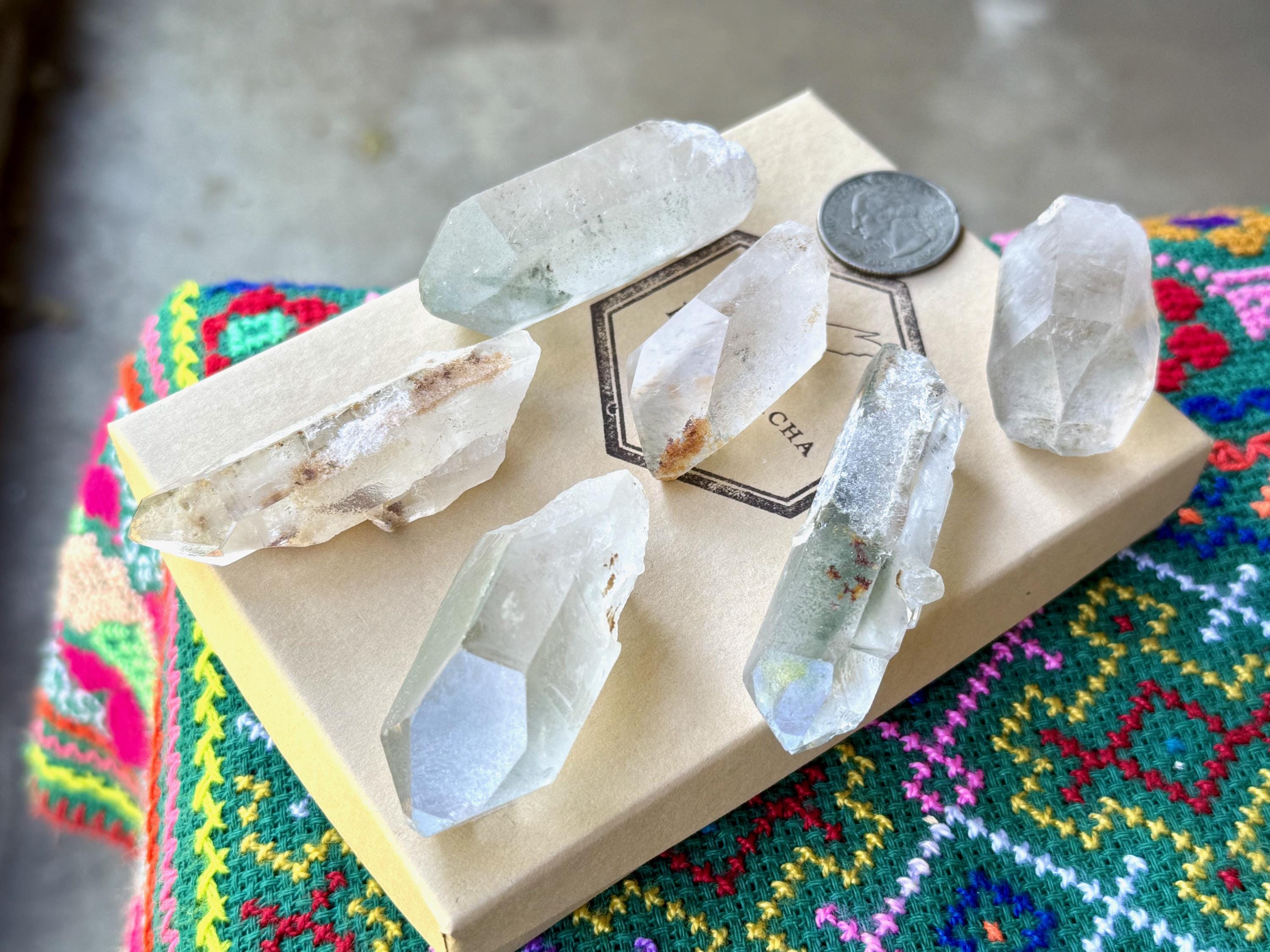 Wonderful clarity and excellent luster to these all natural Green Chlorite Quartz crystals. Each of these has some mild inclusion of Green Chlorite, and in some cases, Hematite or Kaolinite. Two or three of these appear to be Lemurians!