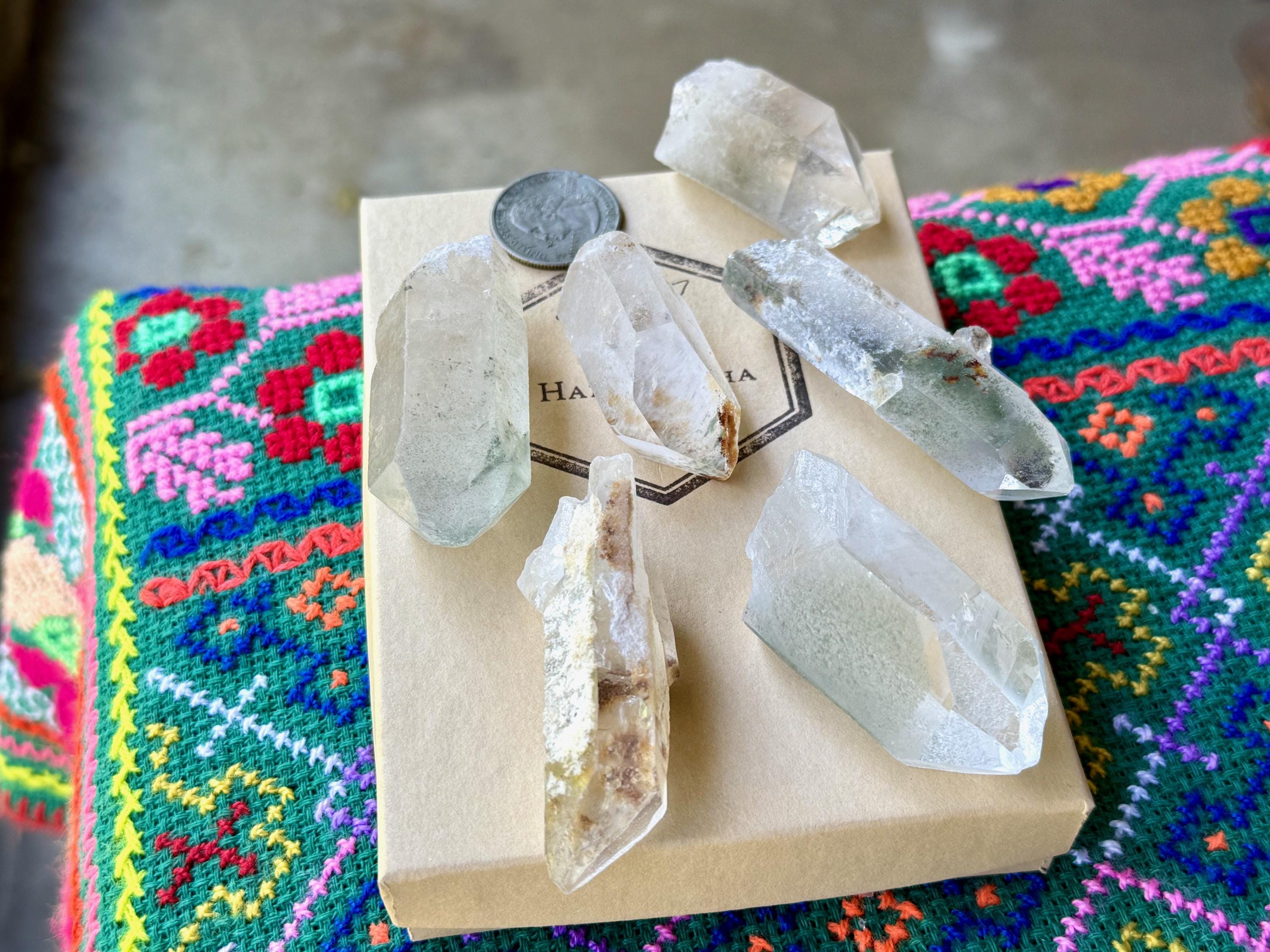One or two crystals have a mild ding around the main facet area, but all are nicely terminated. A great set for crystal grids, jewelry, etc.