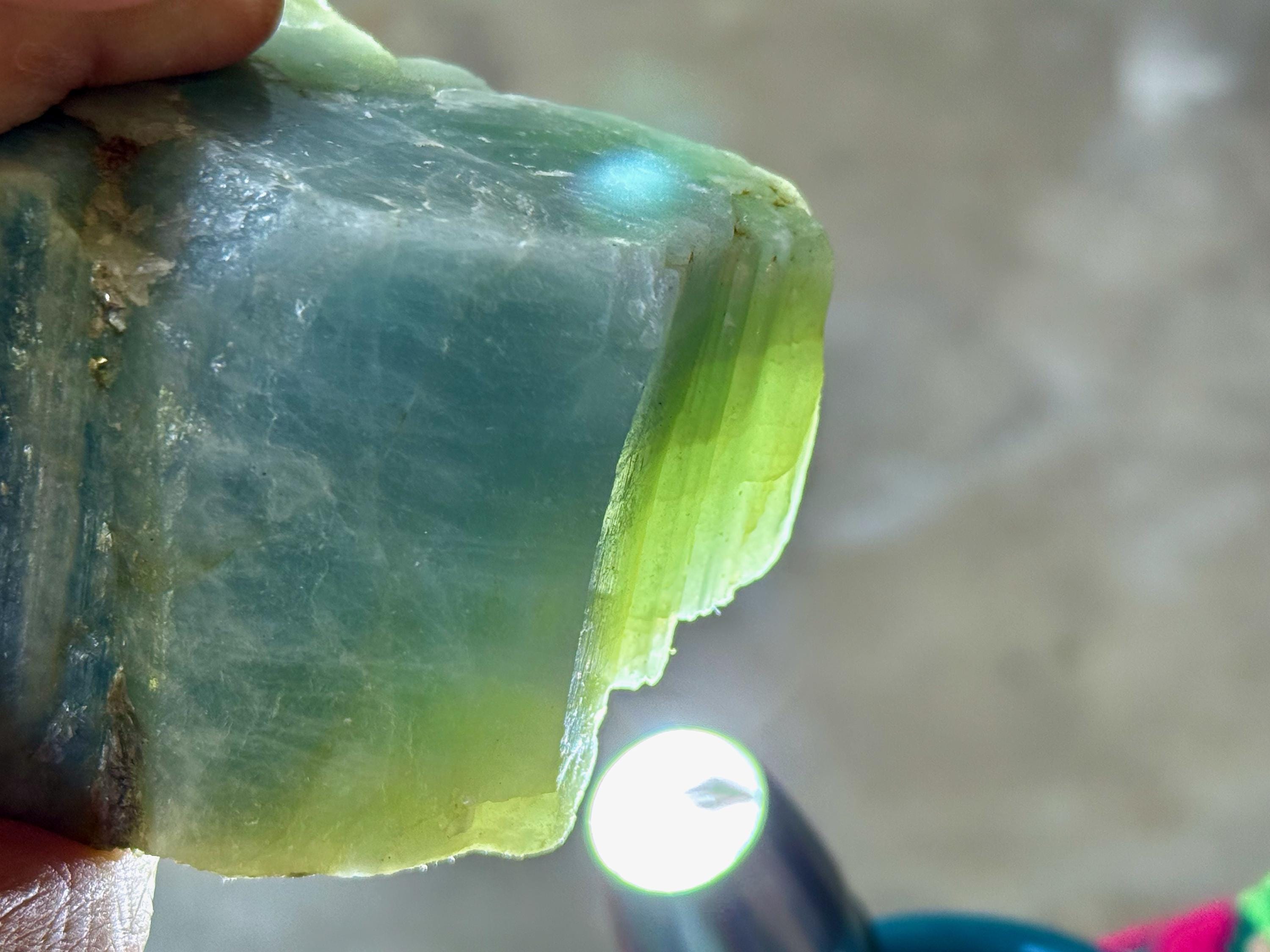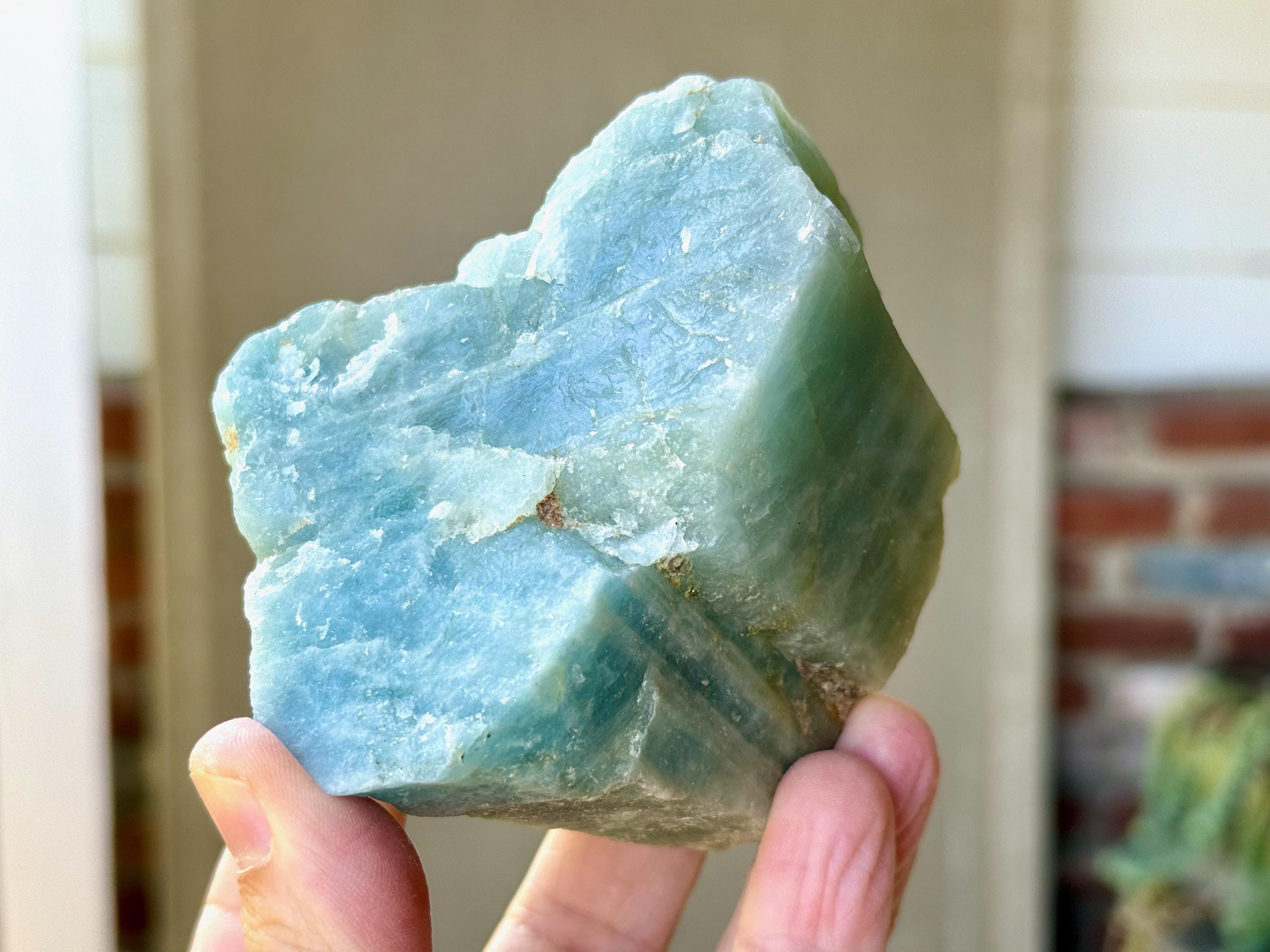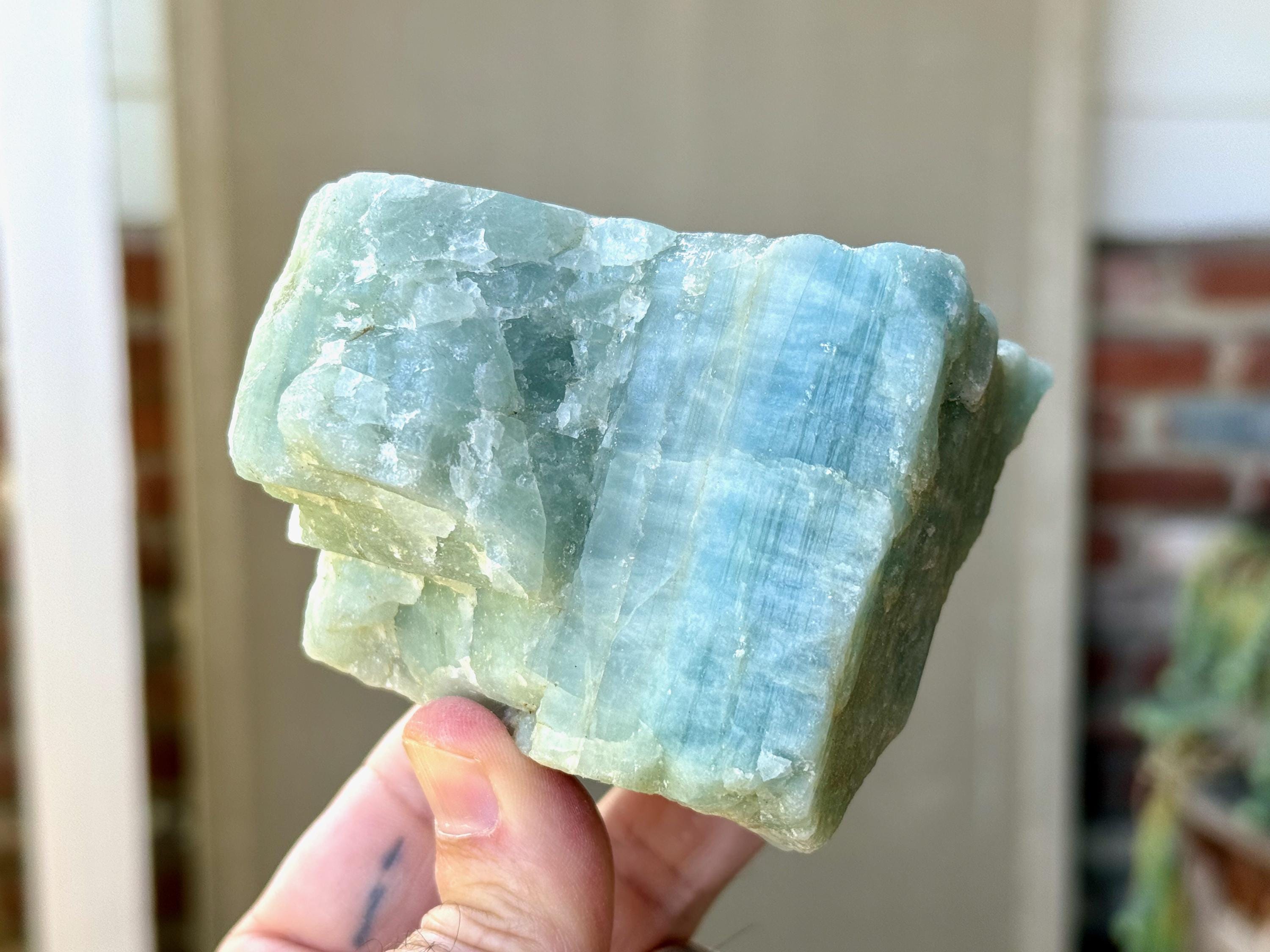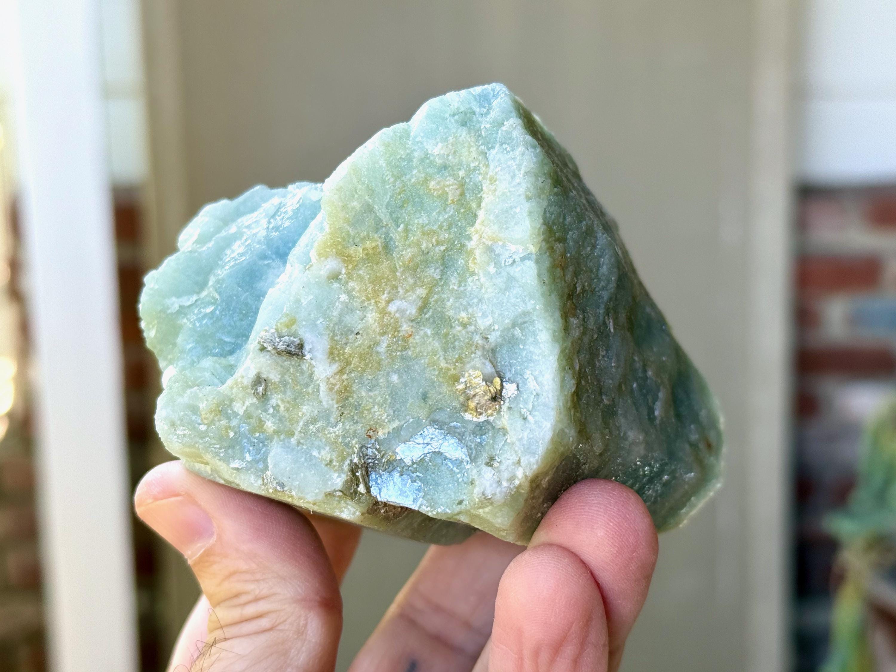 This natural Aquamarine crystal comes from a recent find in Bahia, Brazil. Aquamarine is the blue mineral in the Beryl family and is a powerful crystal for aiding in self-expression and emotional cleansing.