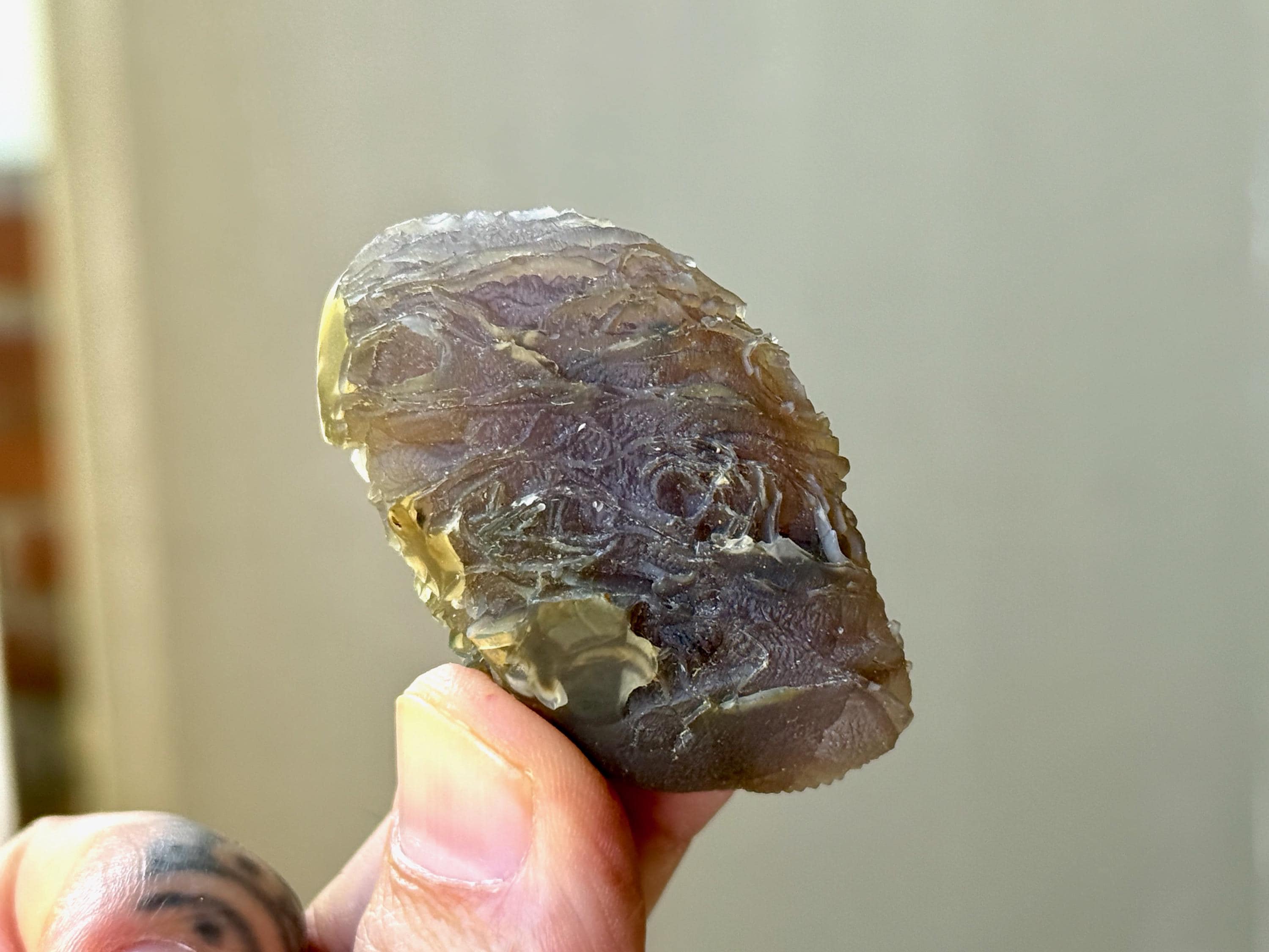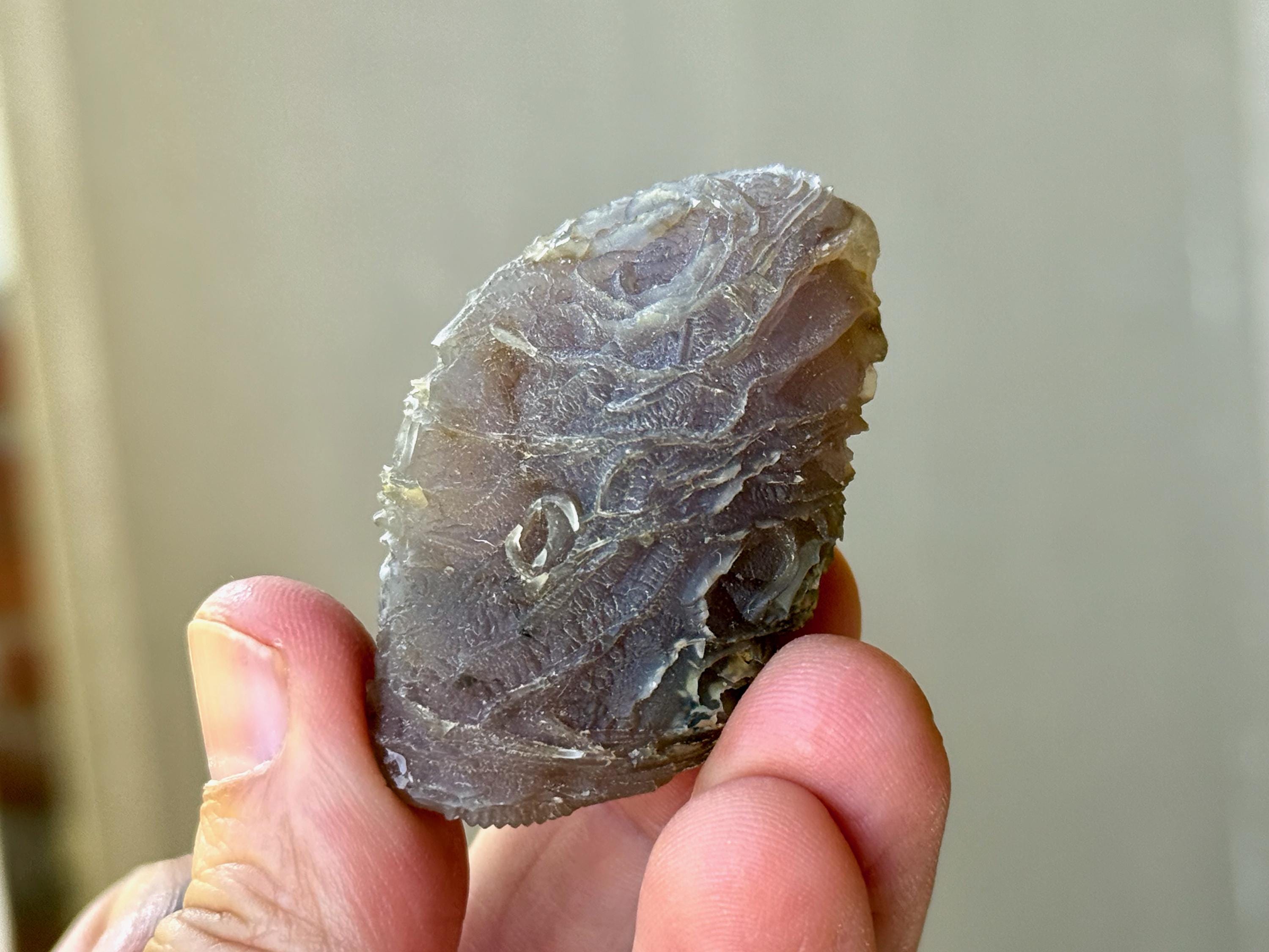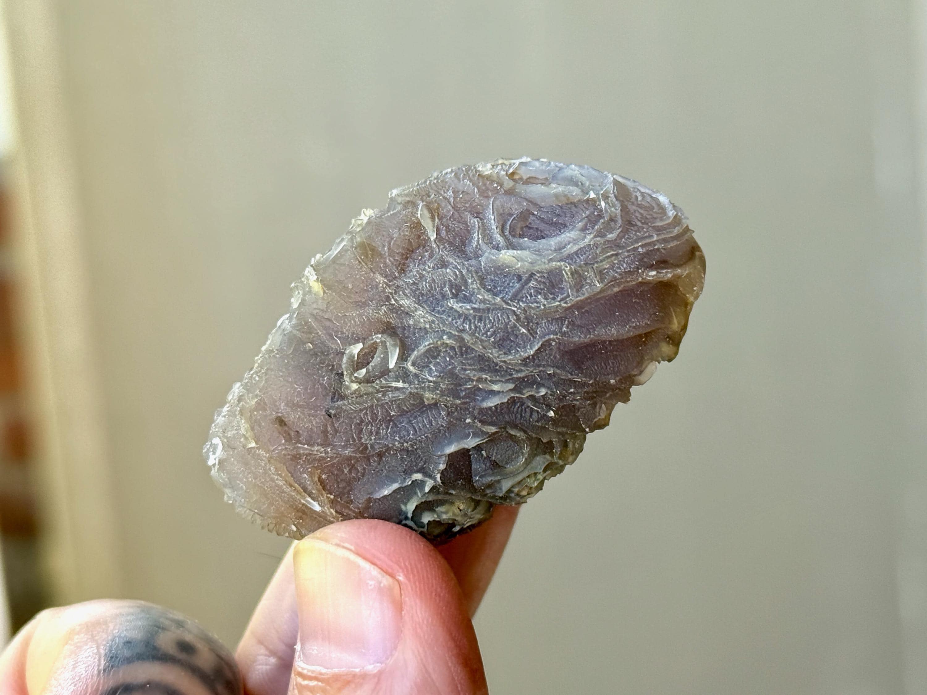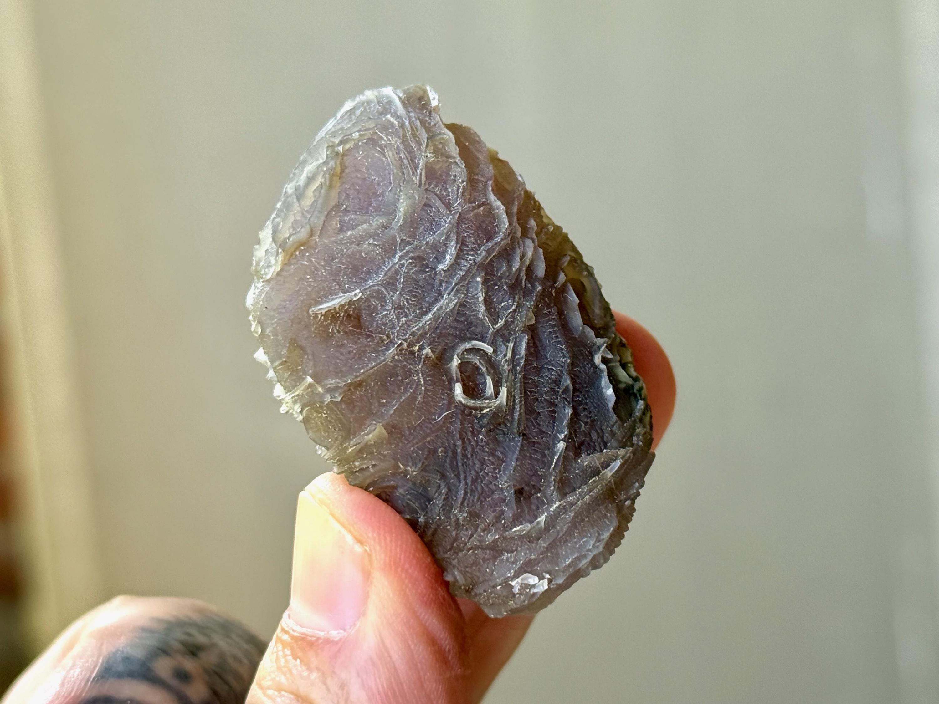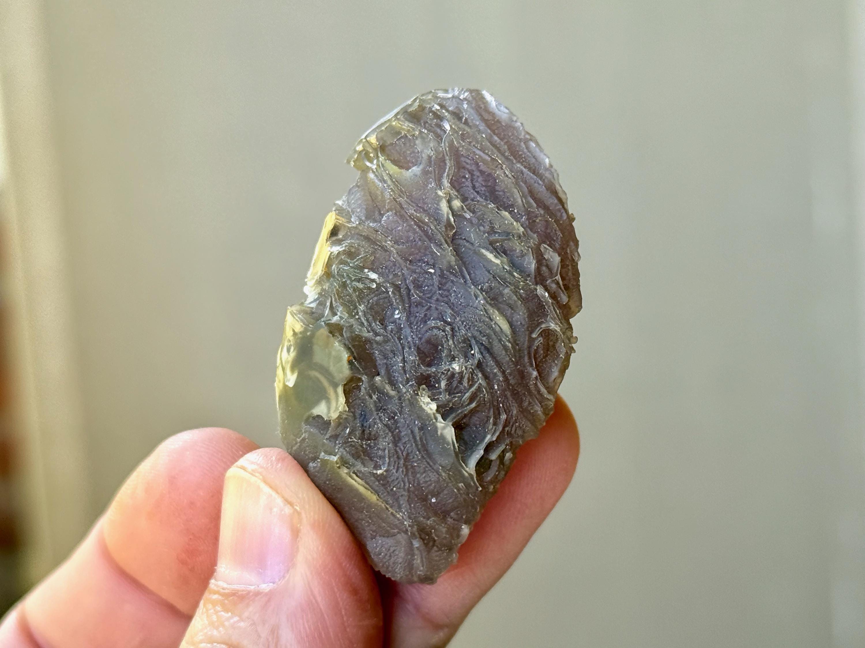 Layers upon layers of unique textures to this unusual Black Mountain Gobi Agate! In natural light, this stone has a grayish-black color with intricate patterning throughout. When backlit, this stone lights up brilliantly! (Photos 3-5). A very unique and beautiful stone from this rare locale.