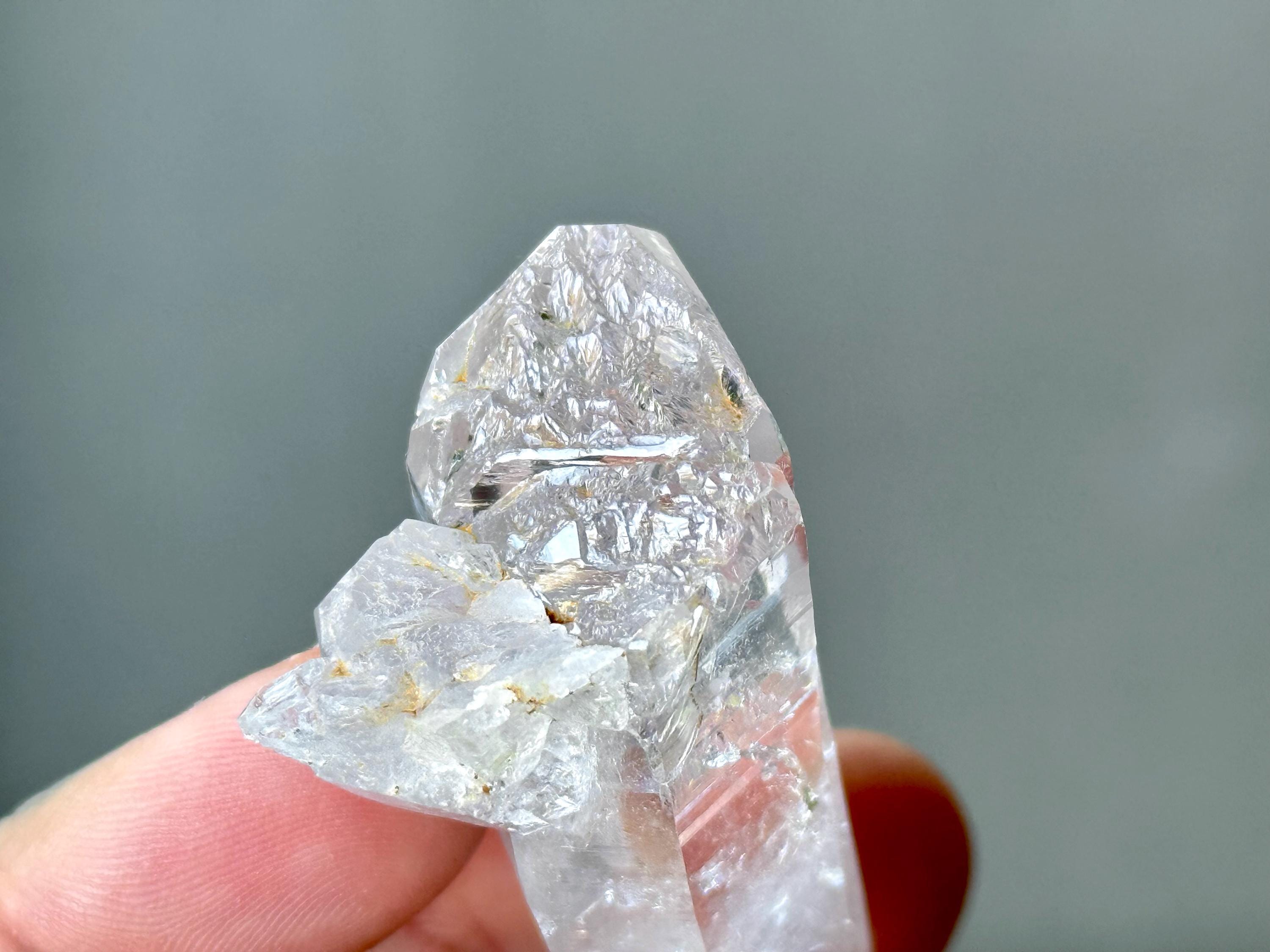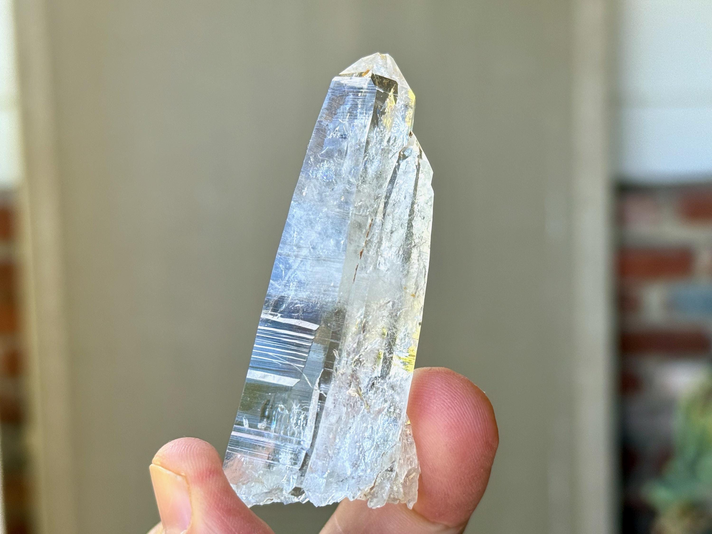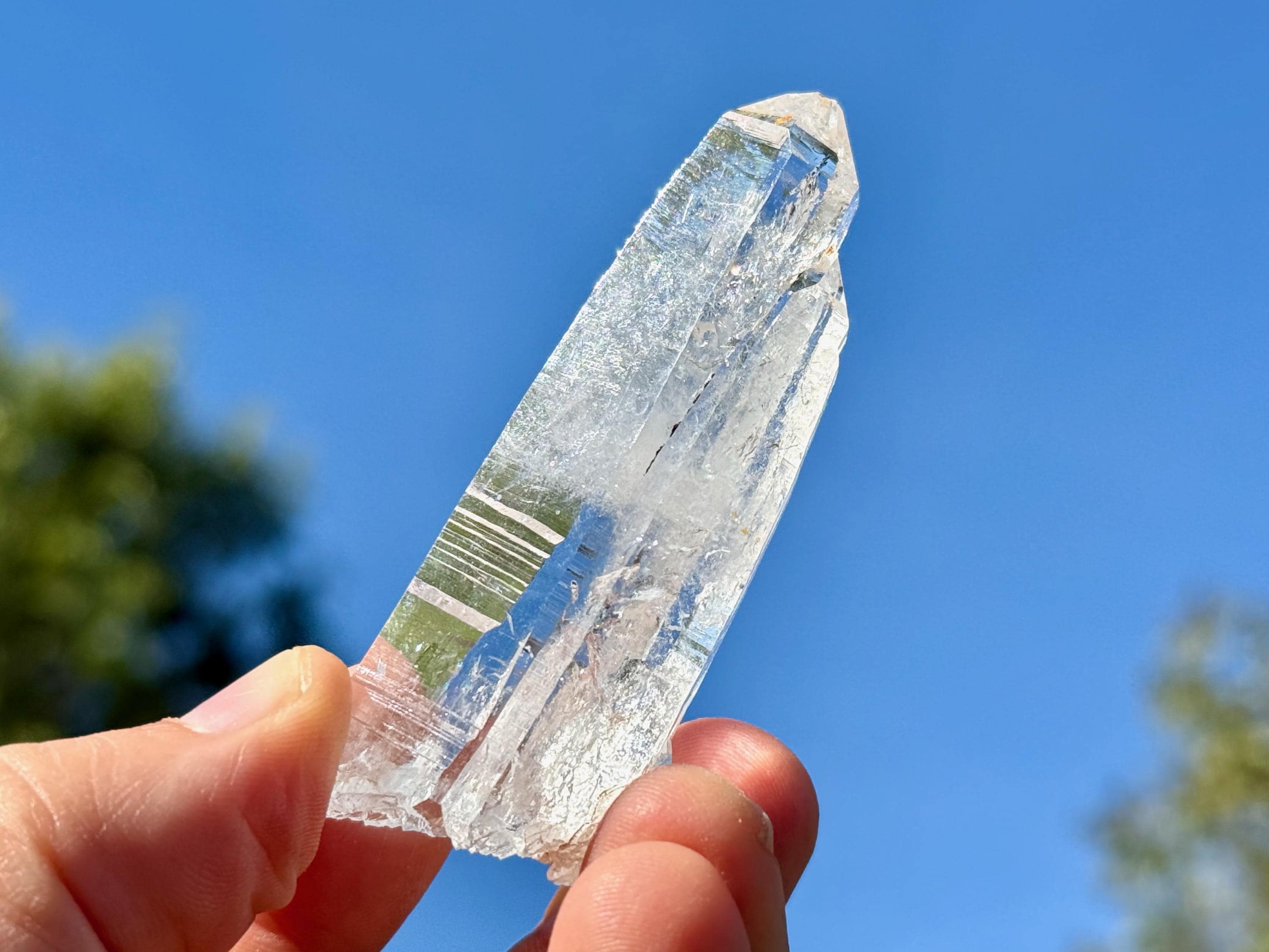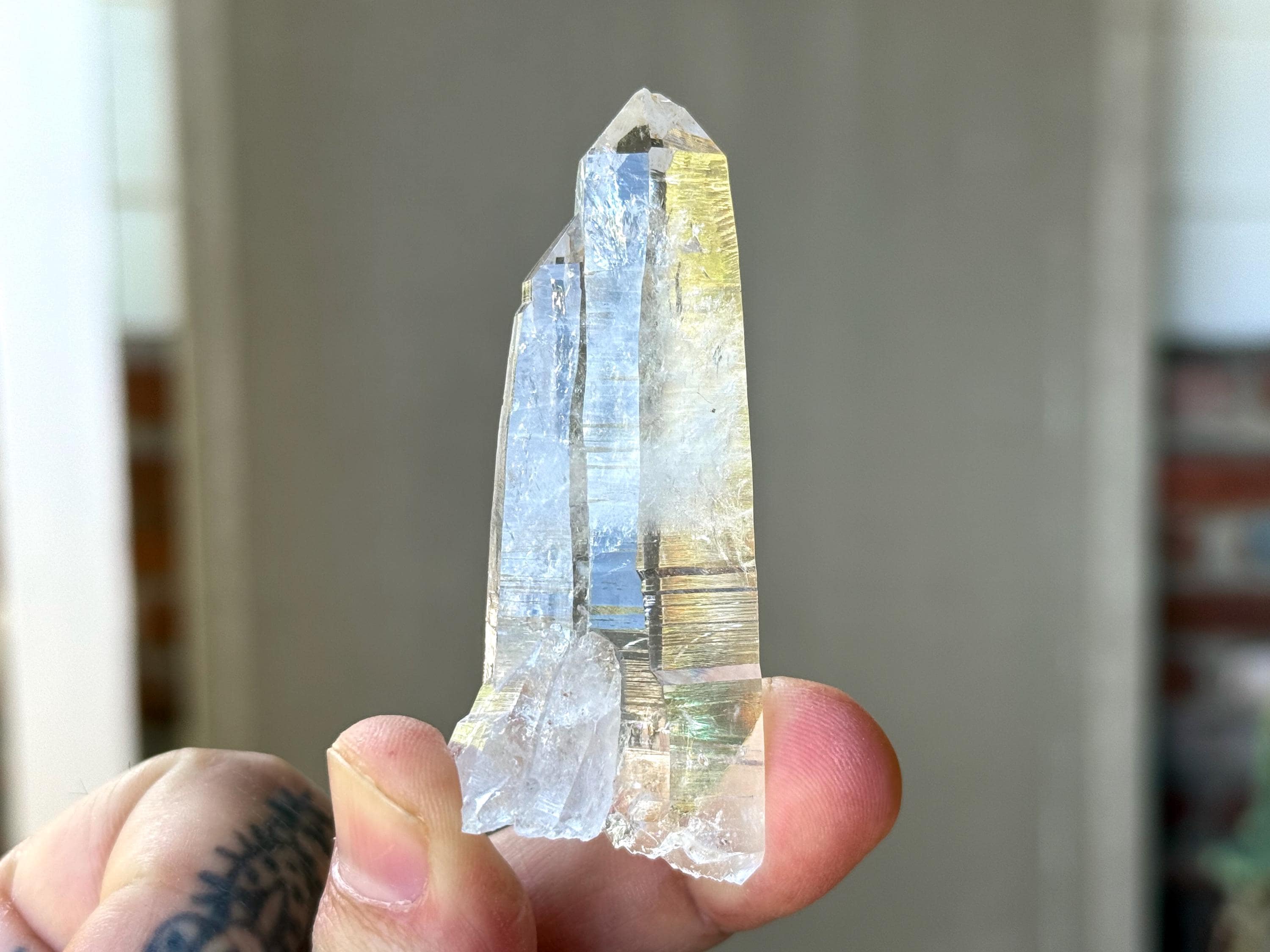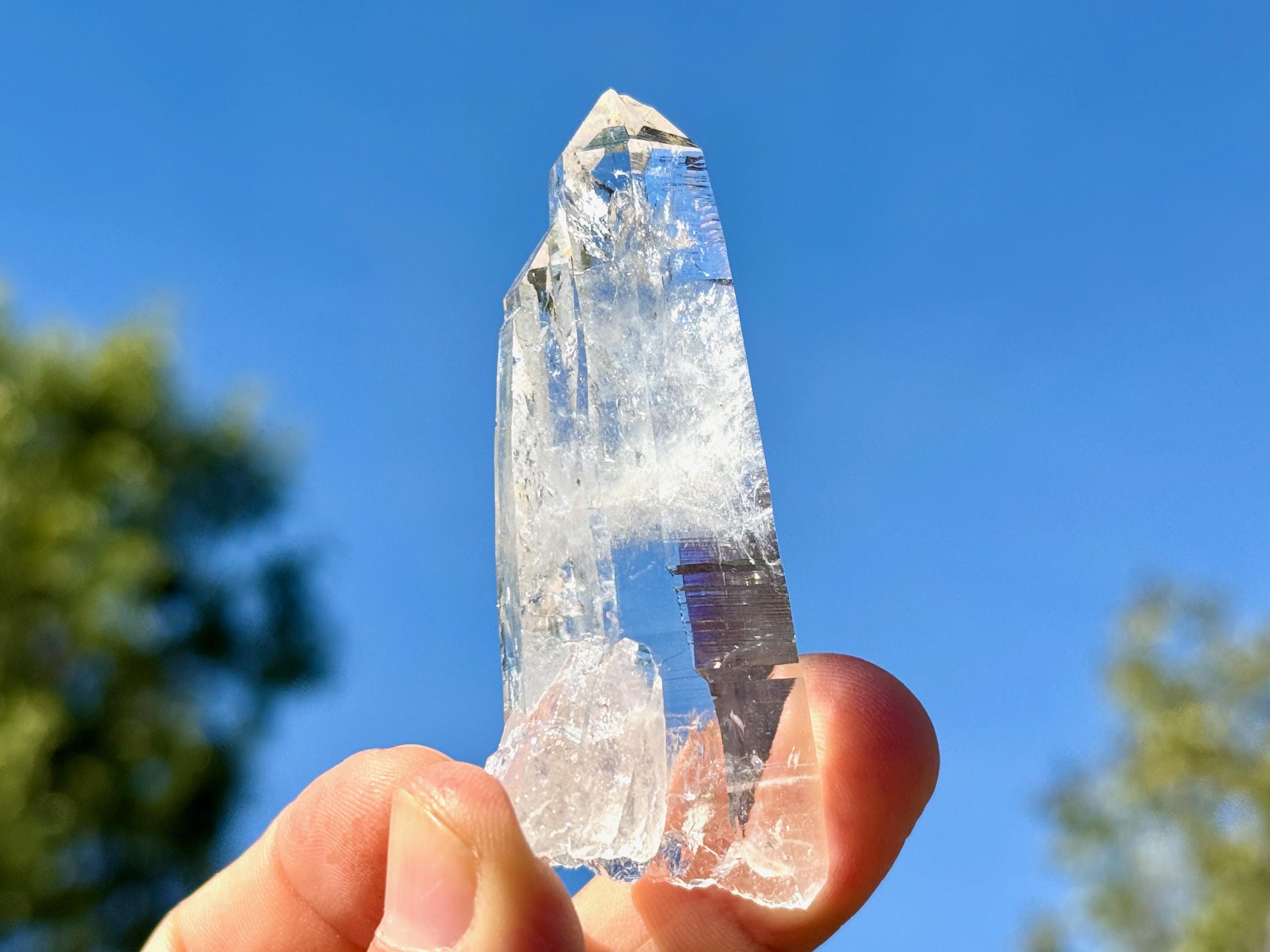 *Please note this crystal is clear and colorless. Any yellow hues in the photos are a result of the natural sunlight reflecting off the crystal.
