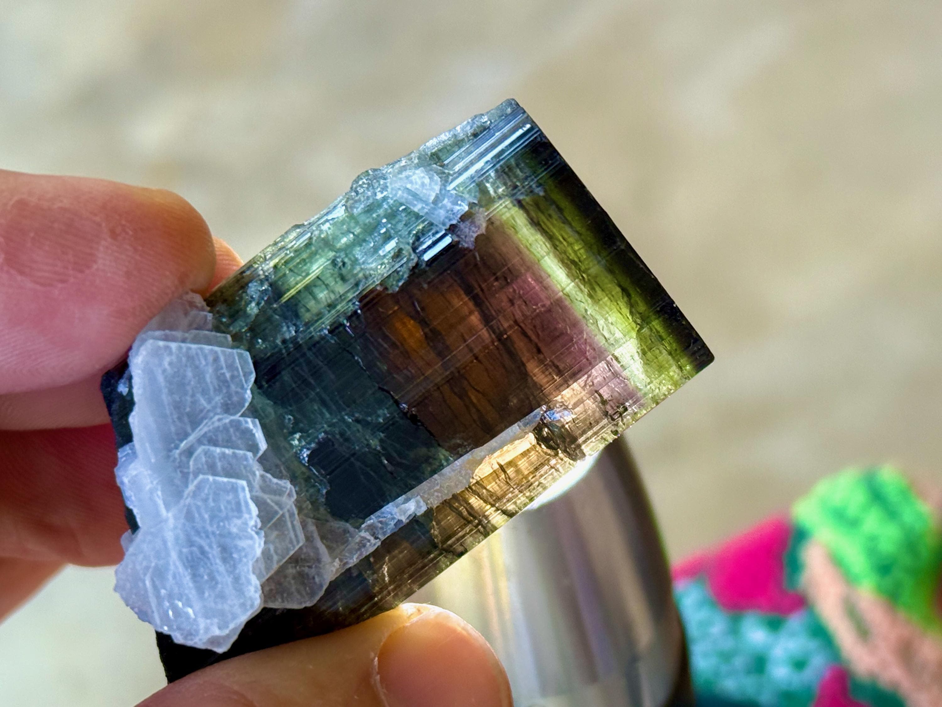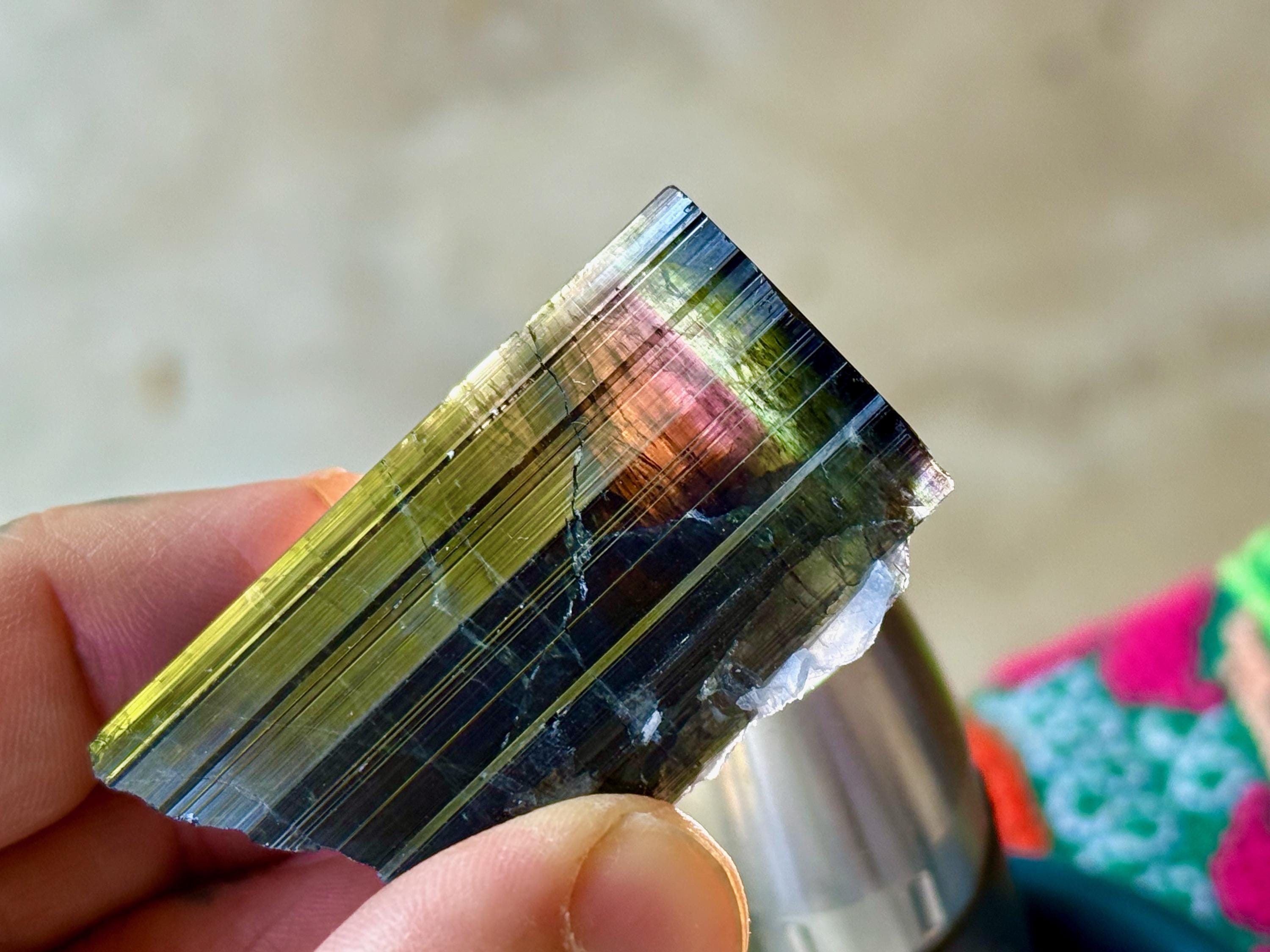 The largest Tourmaline from this collection with an absolutely stunning array of 4 distinct banded colors!