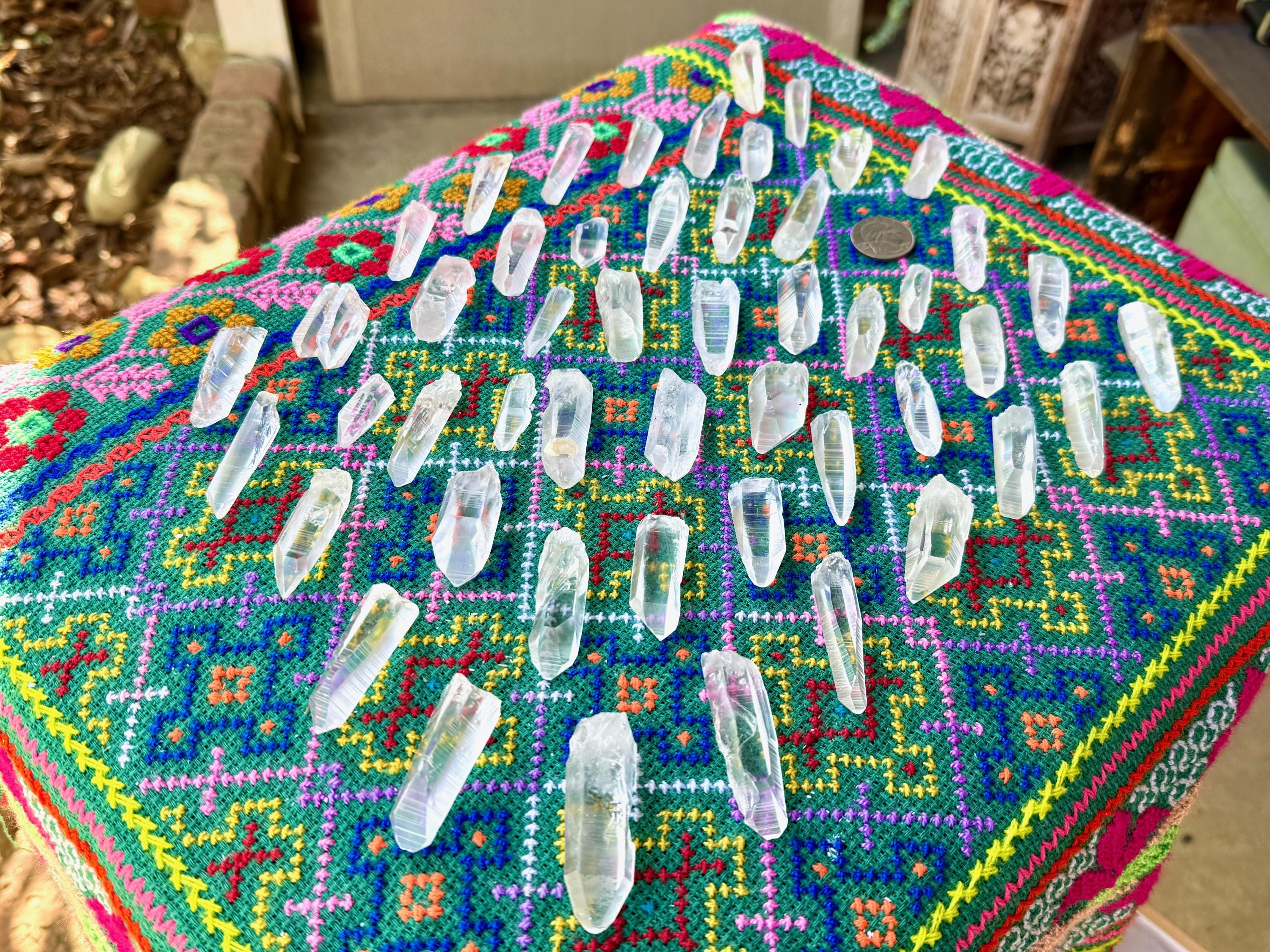 The sizes range from smaller to medium sized points. Please see general measurements below and Quarter in photos for size comparison. This is an ideal lot for resellers, jewelry makers, crystal gridders, etc.