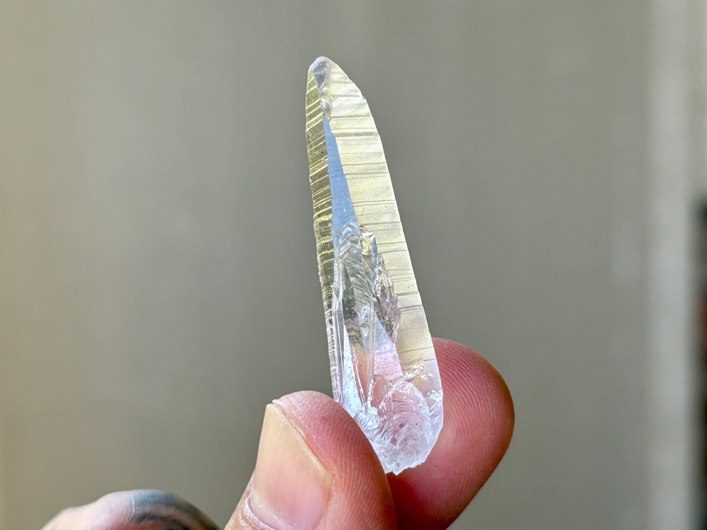 Lemurian Quartz resonates with all chakras, but primarily the Crown Chakra. It has one of the highest vibrations of any crystal and is a beautiful companion for meditation and to realign energies in the body. It can assist in clearing blockages in one's energy field and/or chakras, dispelling heavy energies from the body. If there is stagnant energy in the body, it can help to increase Prana (life force) energy to get things moving properly again. Meditating with Lemurian Crystals can allow us to connect with higher-dimensional spirit guides and connect to Divine realms, as well as to decode the information they contain within.