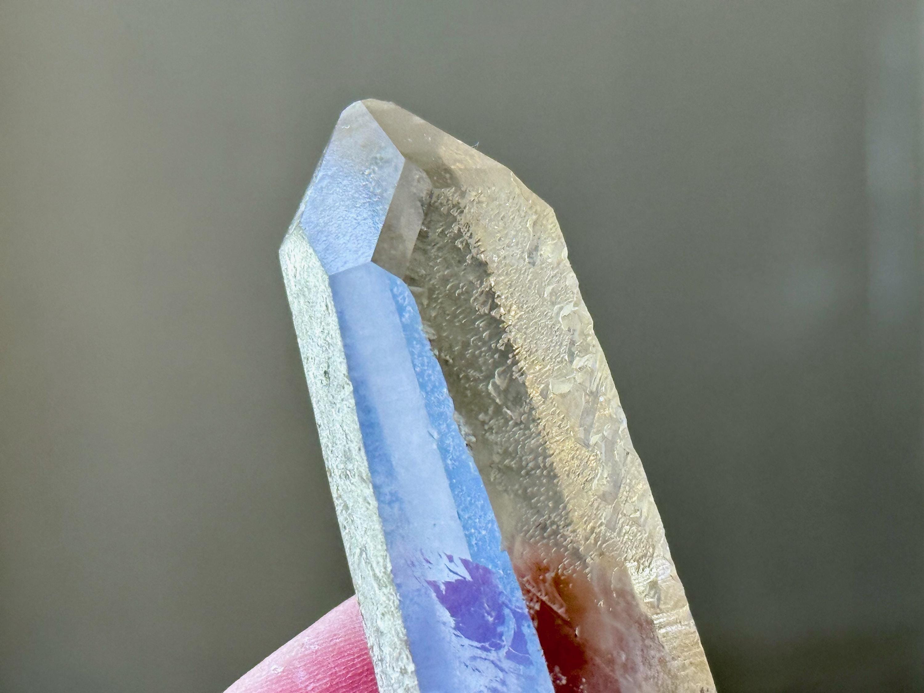 There's a mild white mineral "frost" on the left and backside. The termination is excellent.