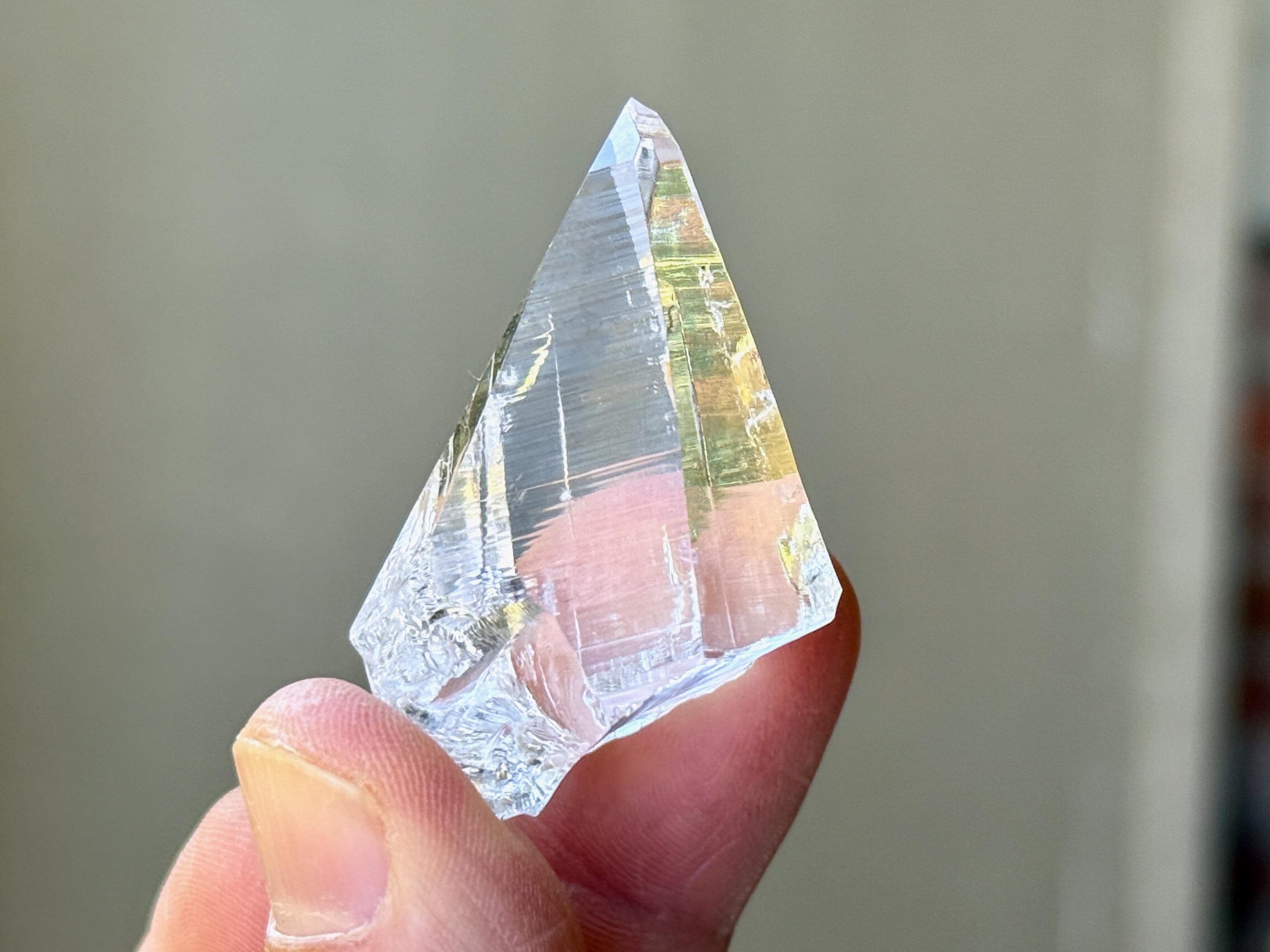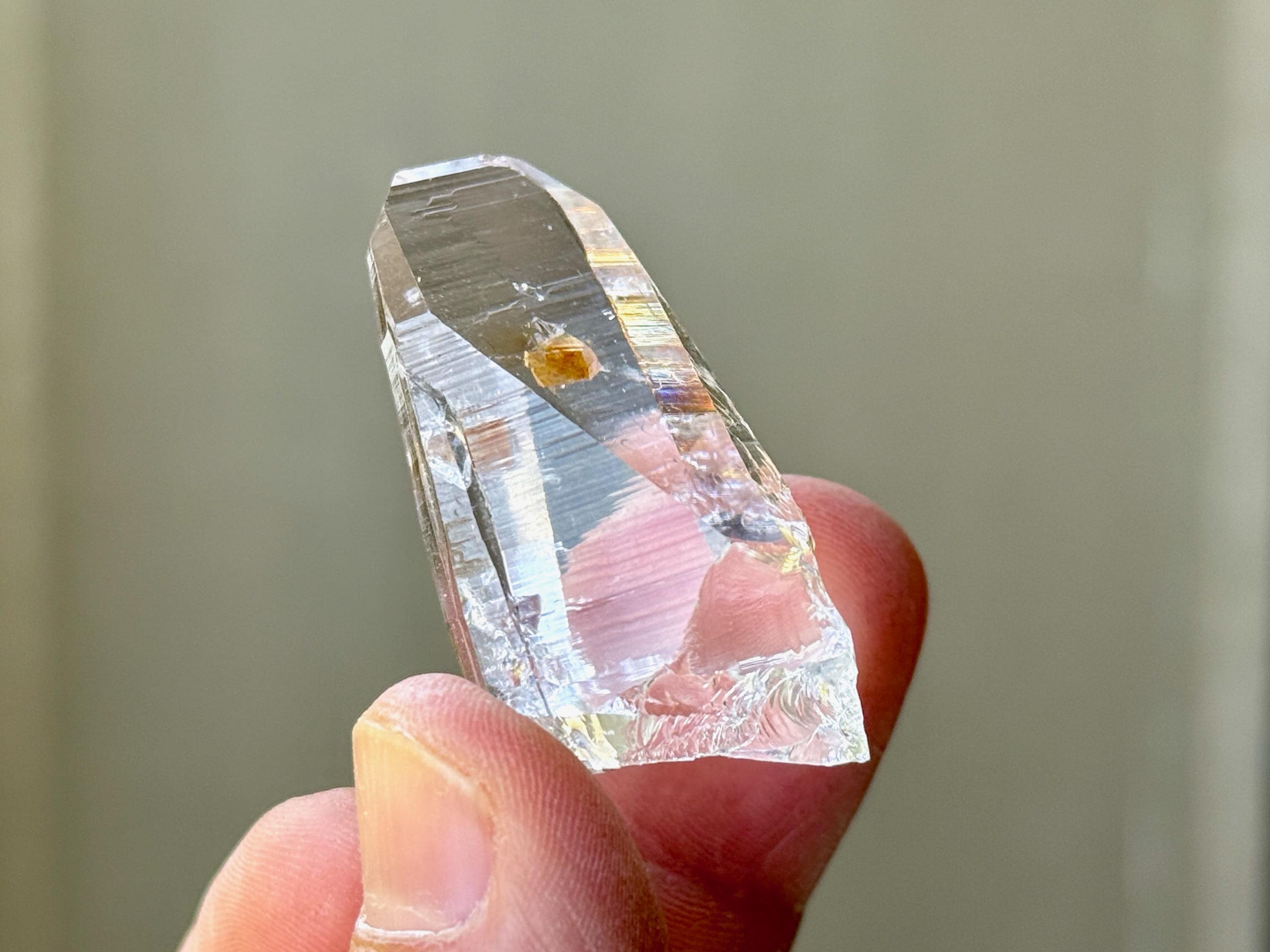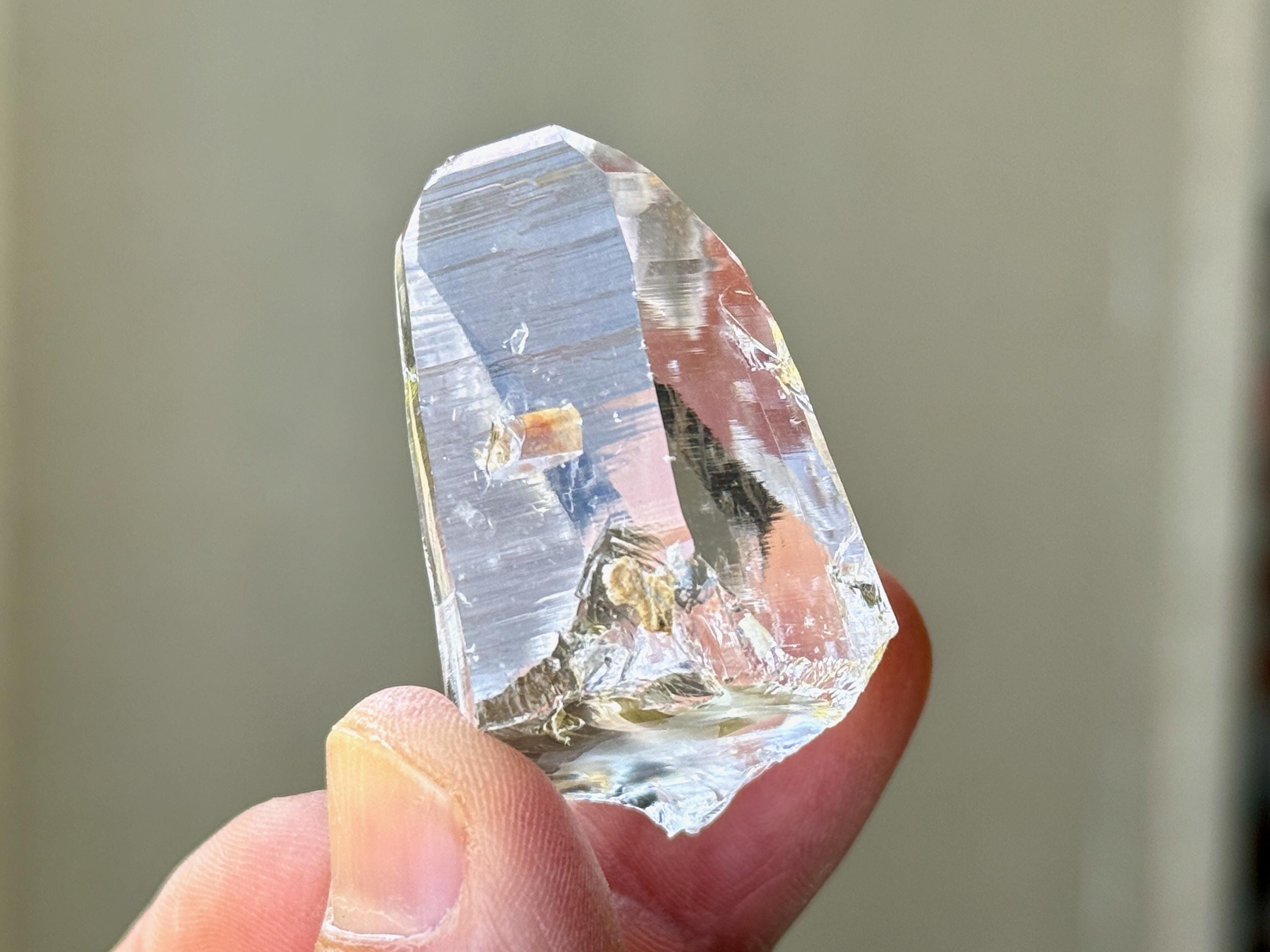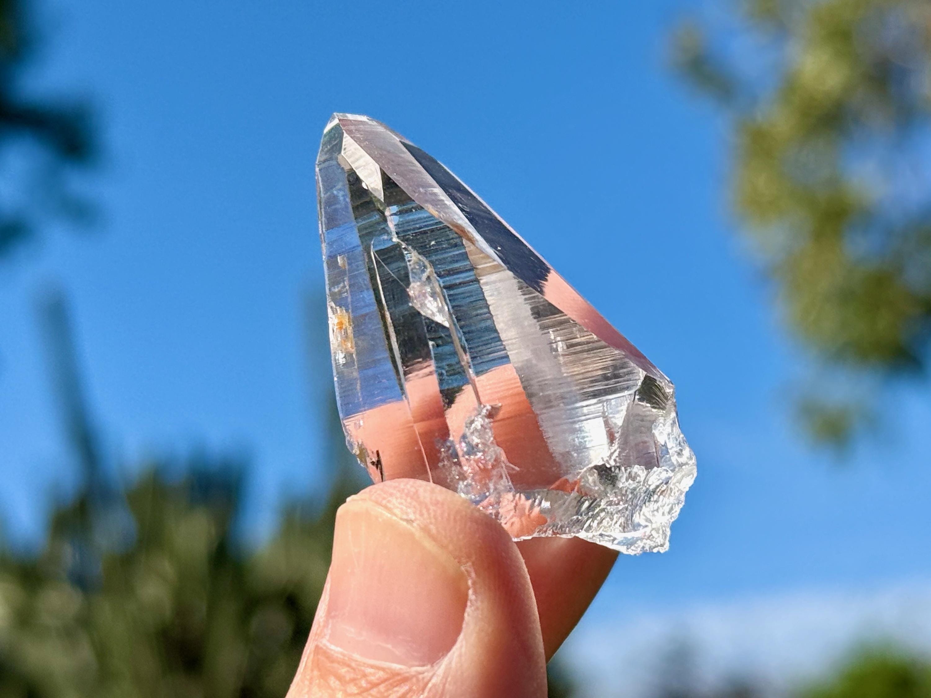 This pristine Lemurian Quartz crystal comes from a 2020 find in the Peñas Blancas Mine, Boyaca, Colombia. Lemurian collectors know that Peñas Blancas Lemurians are among the finest, with a lustrous, almost "oily" complexion and unparalleled clarity.