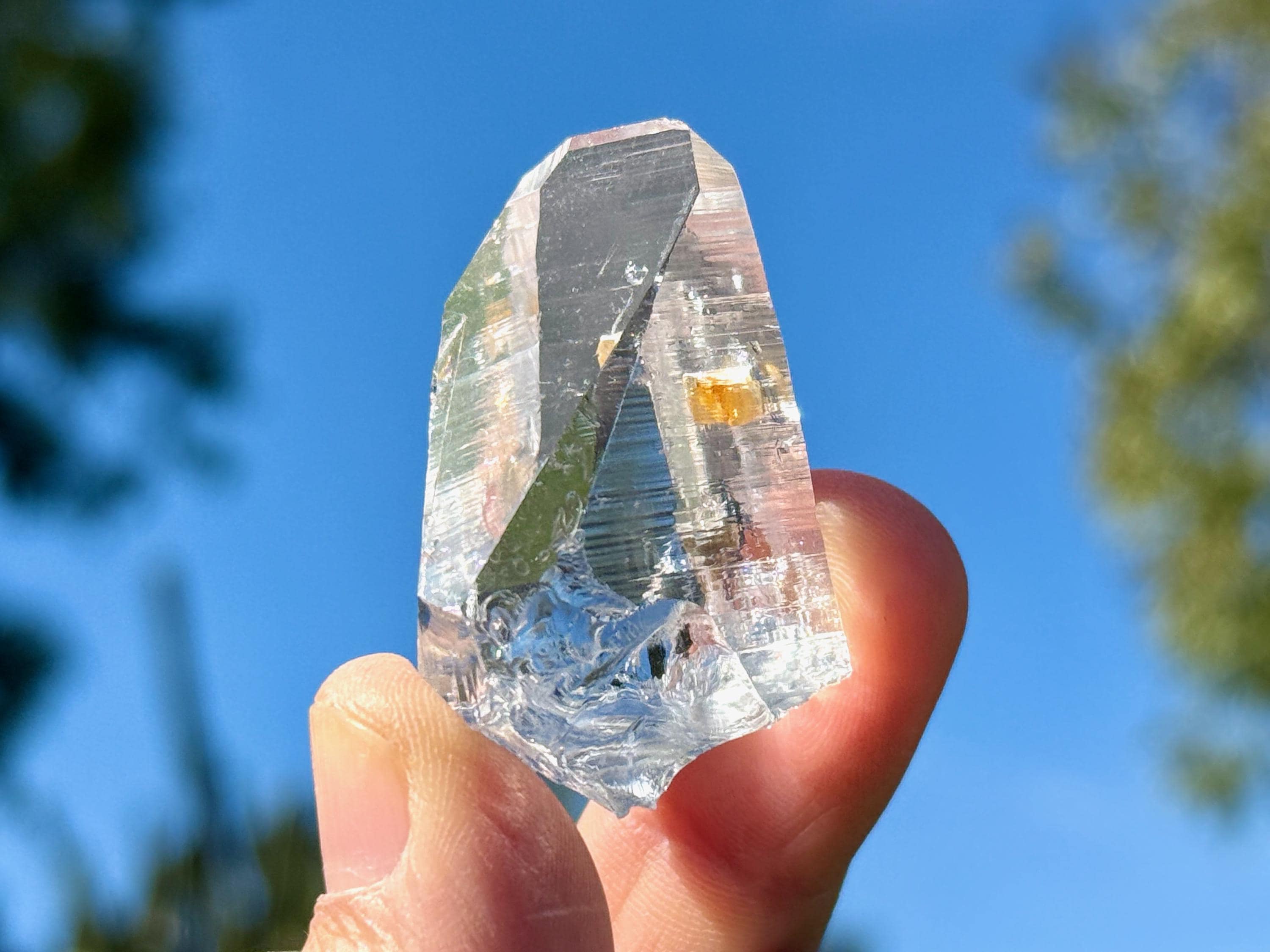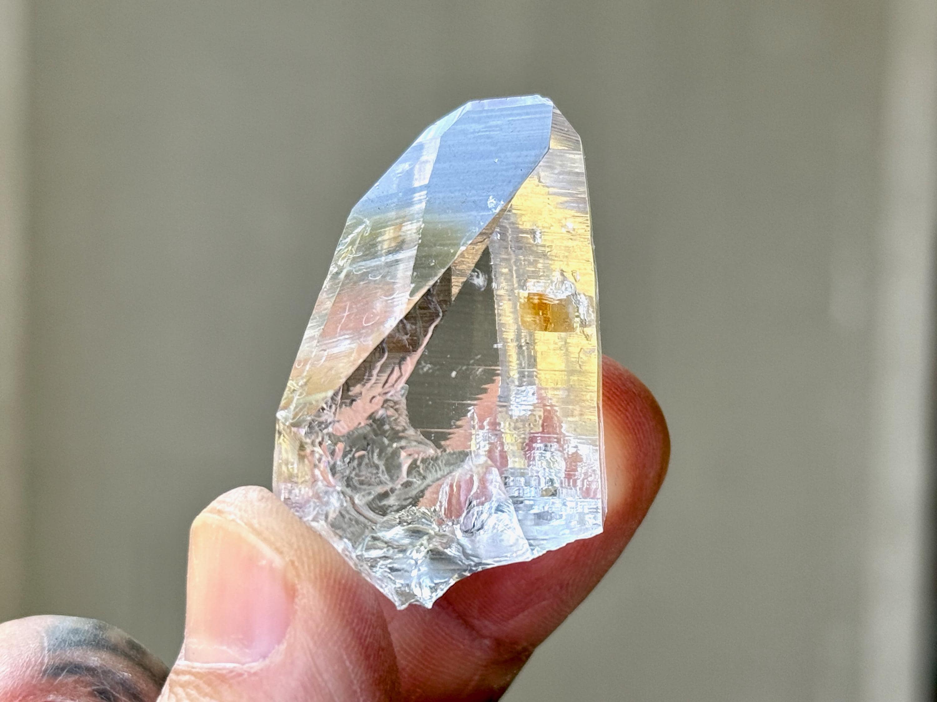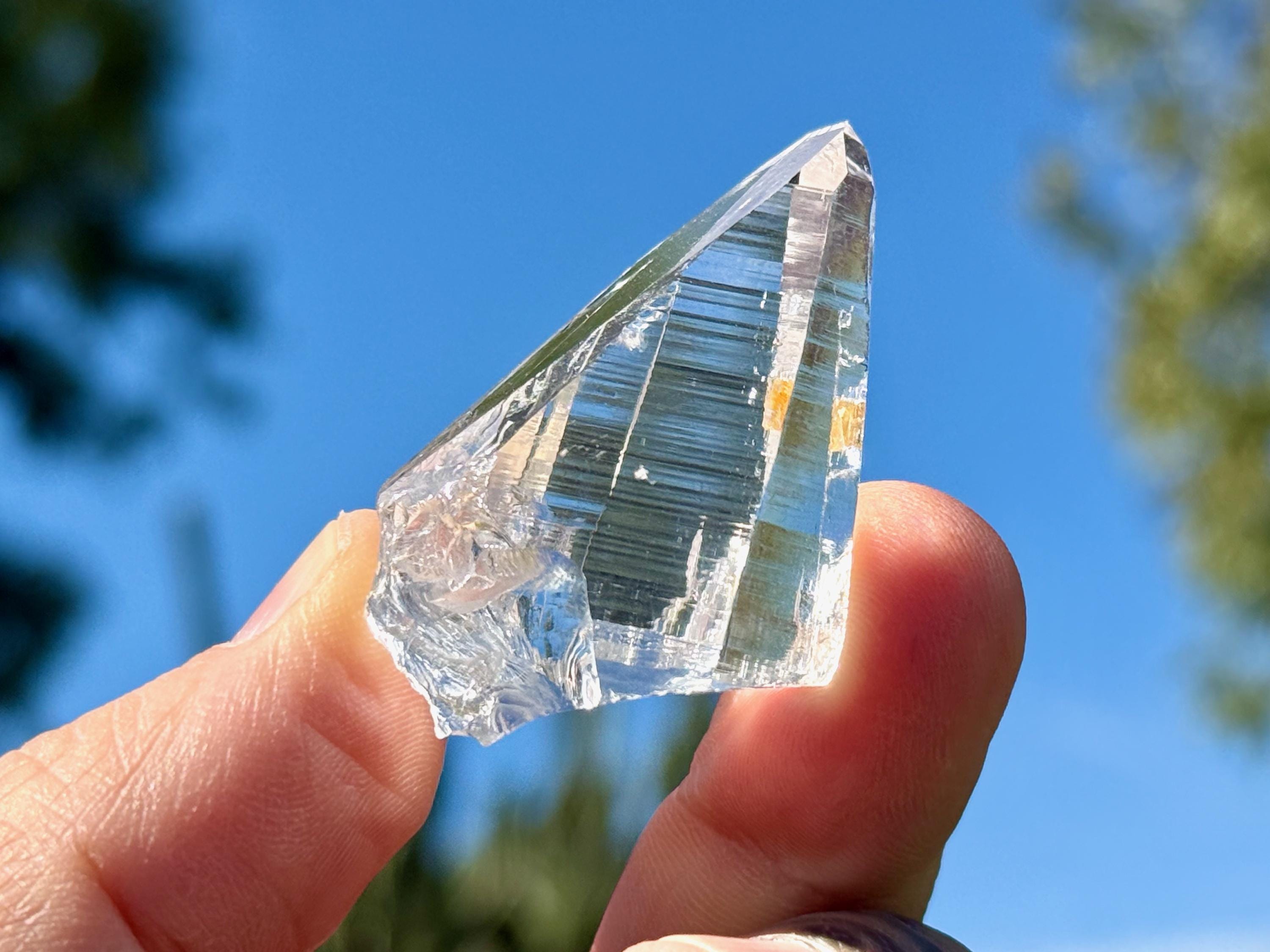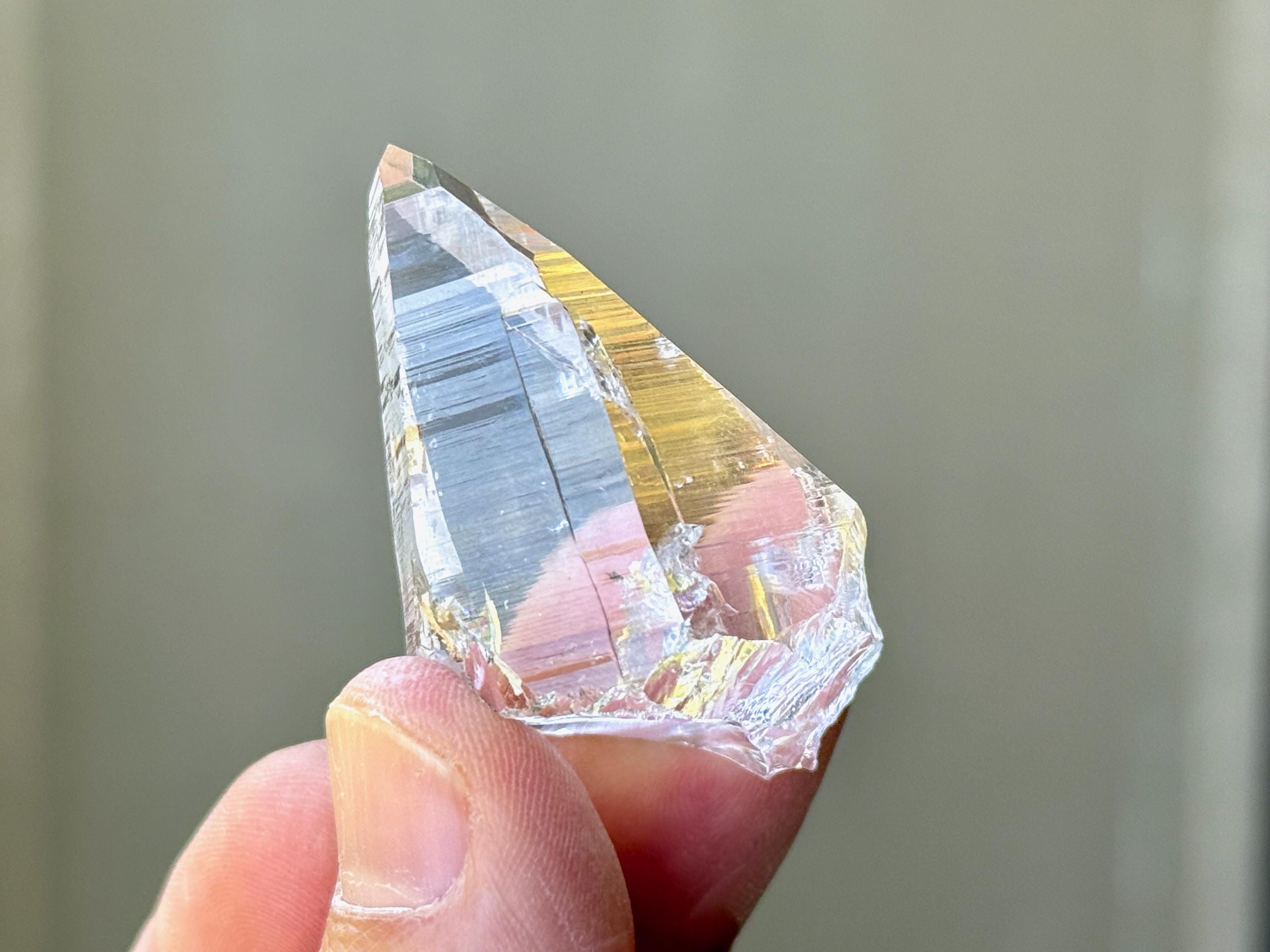 This pristine Lemurian Quartz crystal comes from a 2020 find in the Peñas Blancas Mine, Boyaca, Colombia. Lemurian collectors know that Peñas Blancas Lemurians are among the finest, with a lustrous, almost "oily" complexion and unparalleled clarity.
