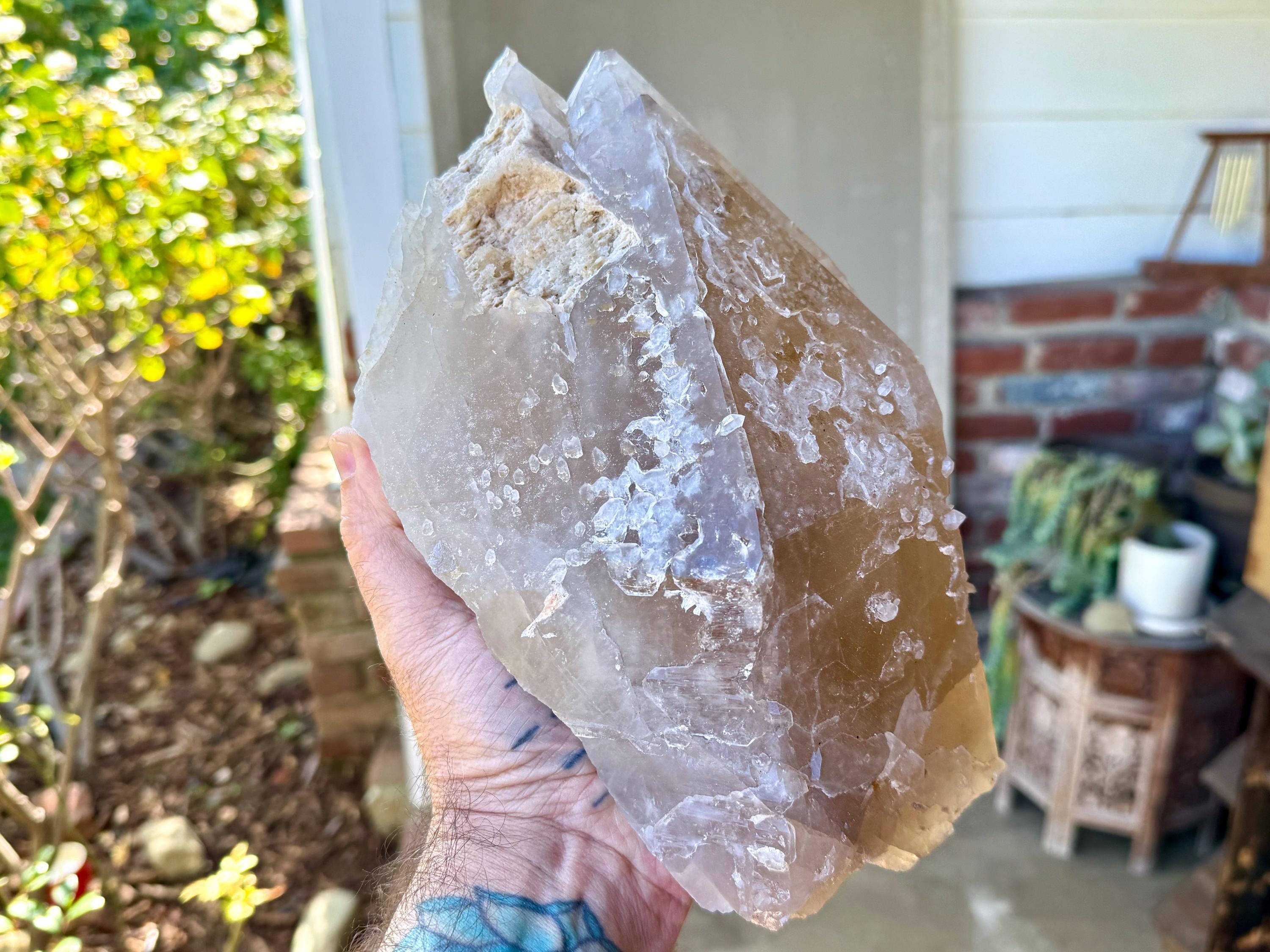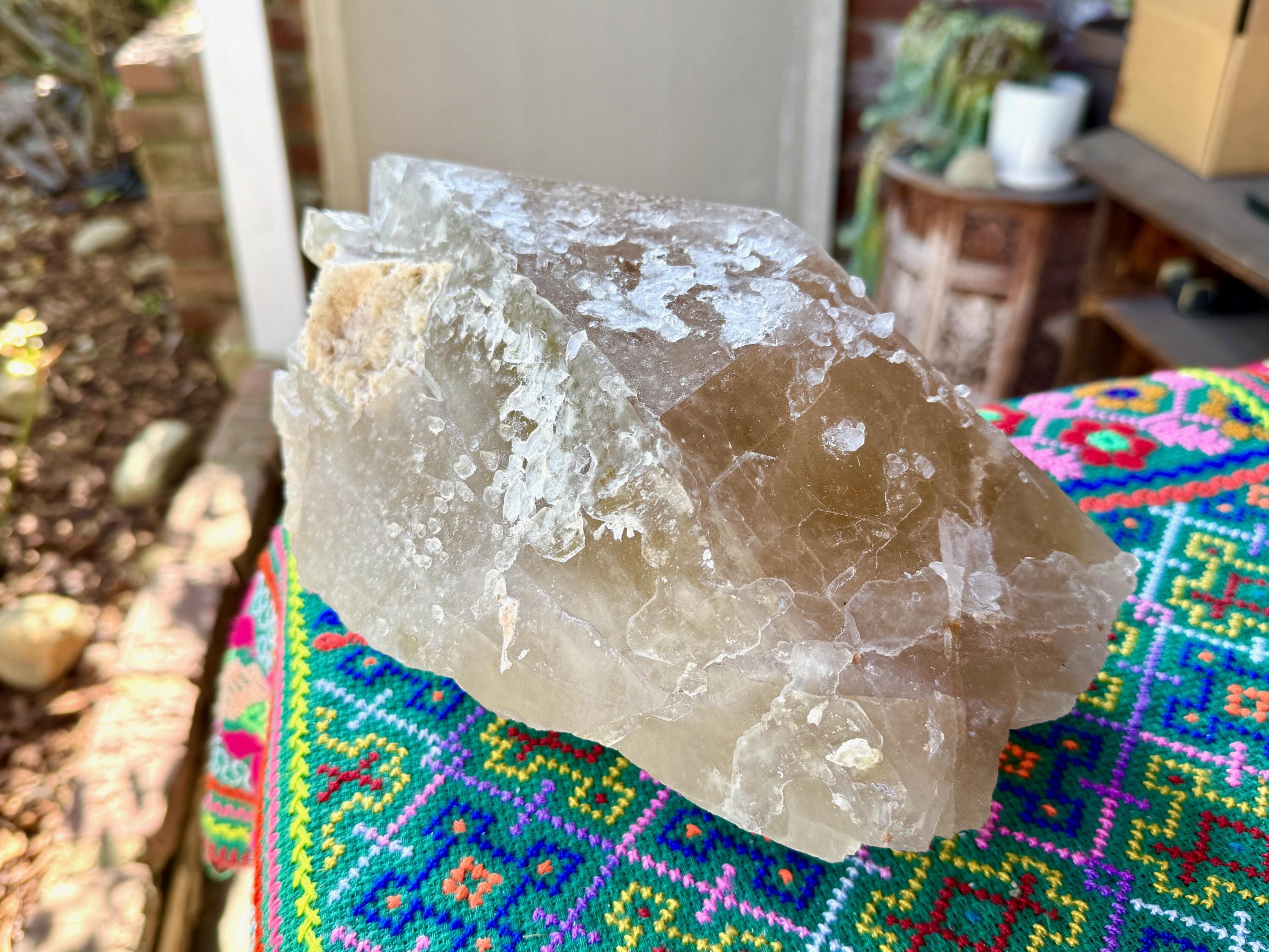 One of the largest Citrines we currently have to offer, this is an exceptional, all-natural Elestial Citrine crystal with beautiful luster and an ancient look and feel. This gentle giant just seems to emanate powerful, ancient energies!