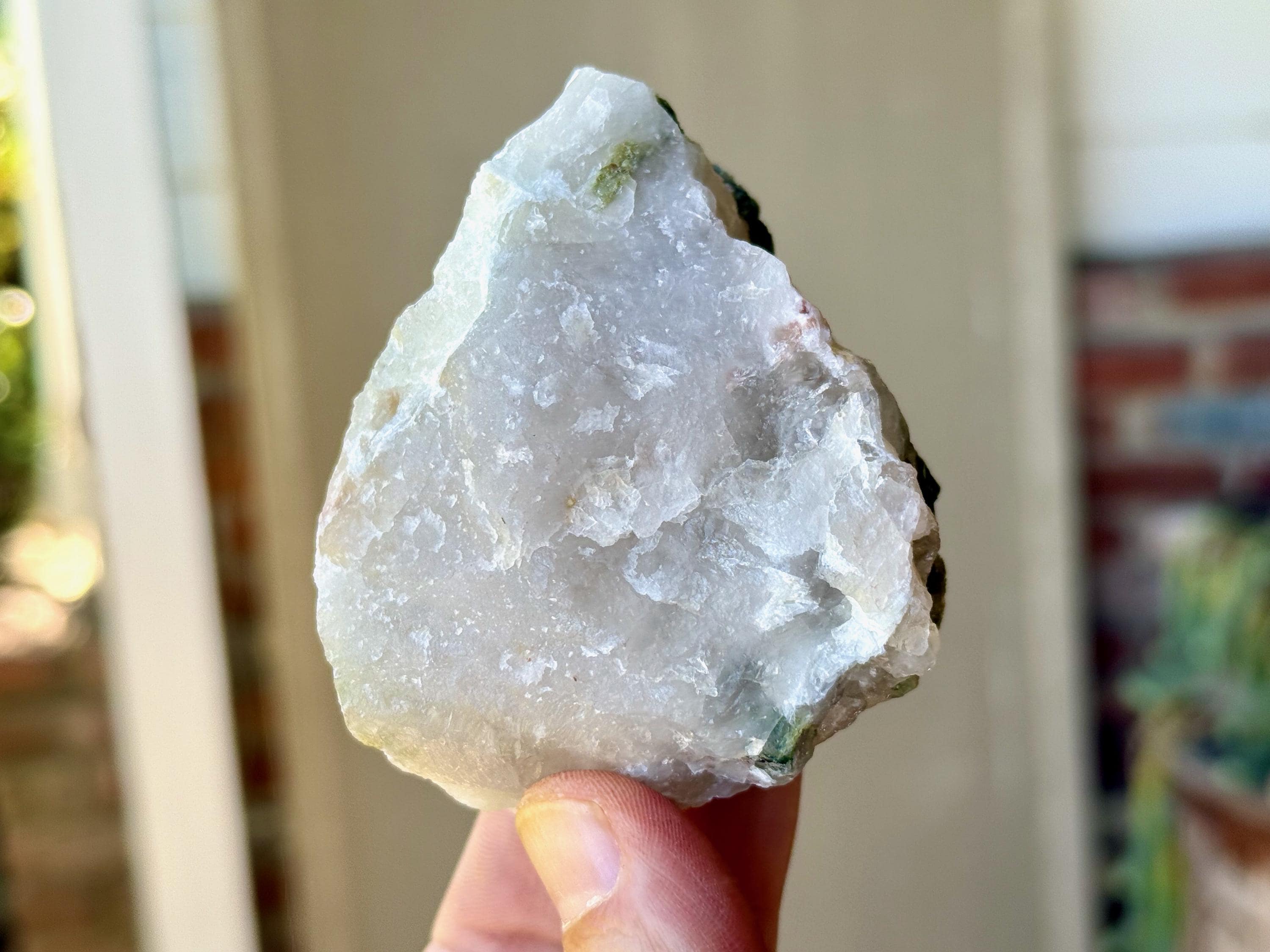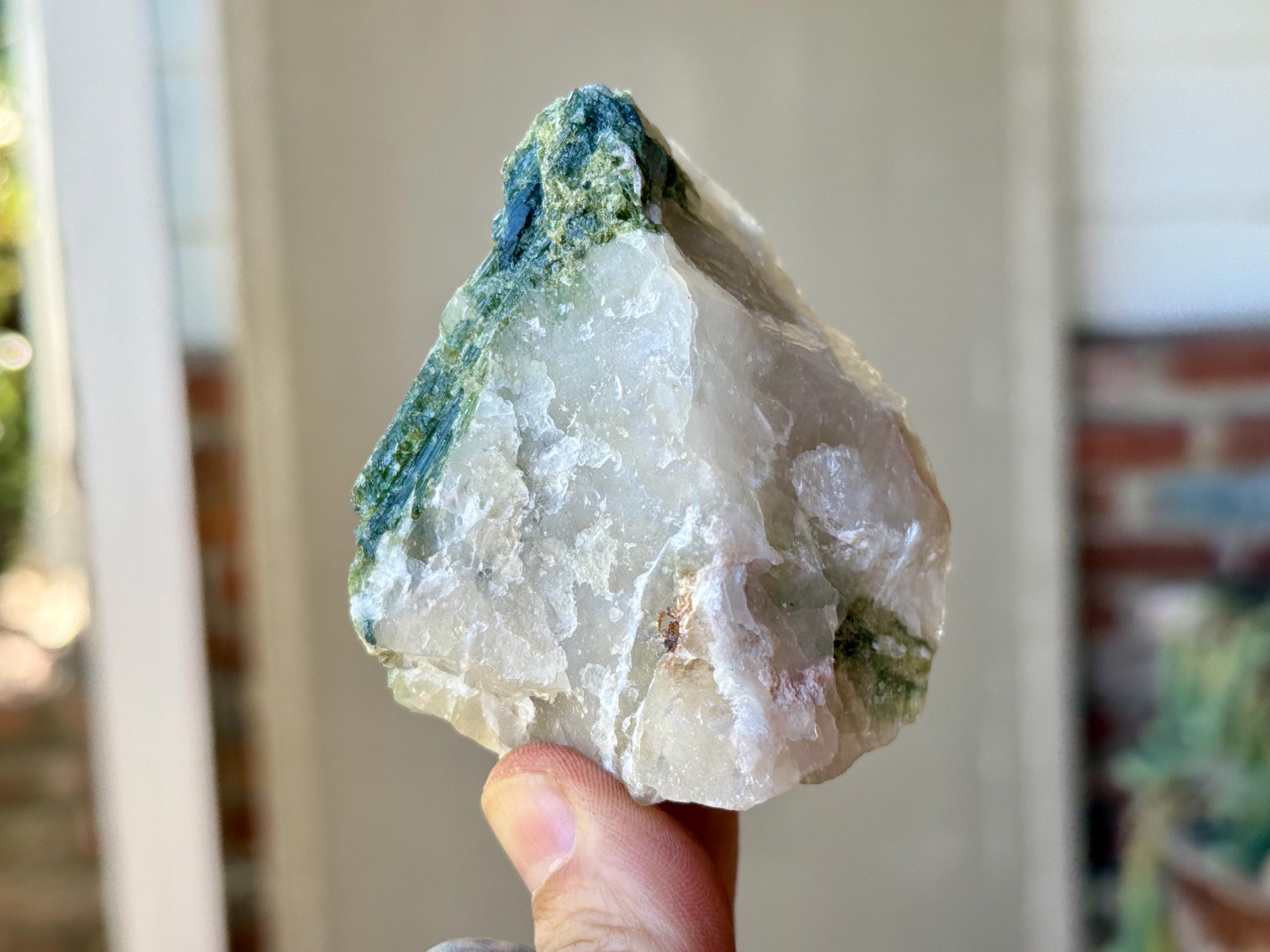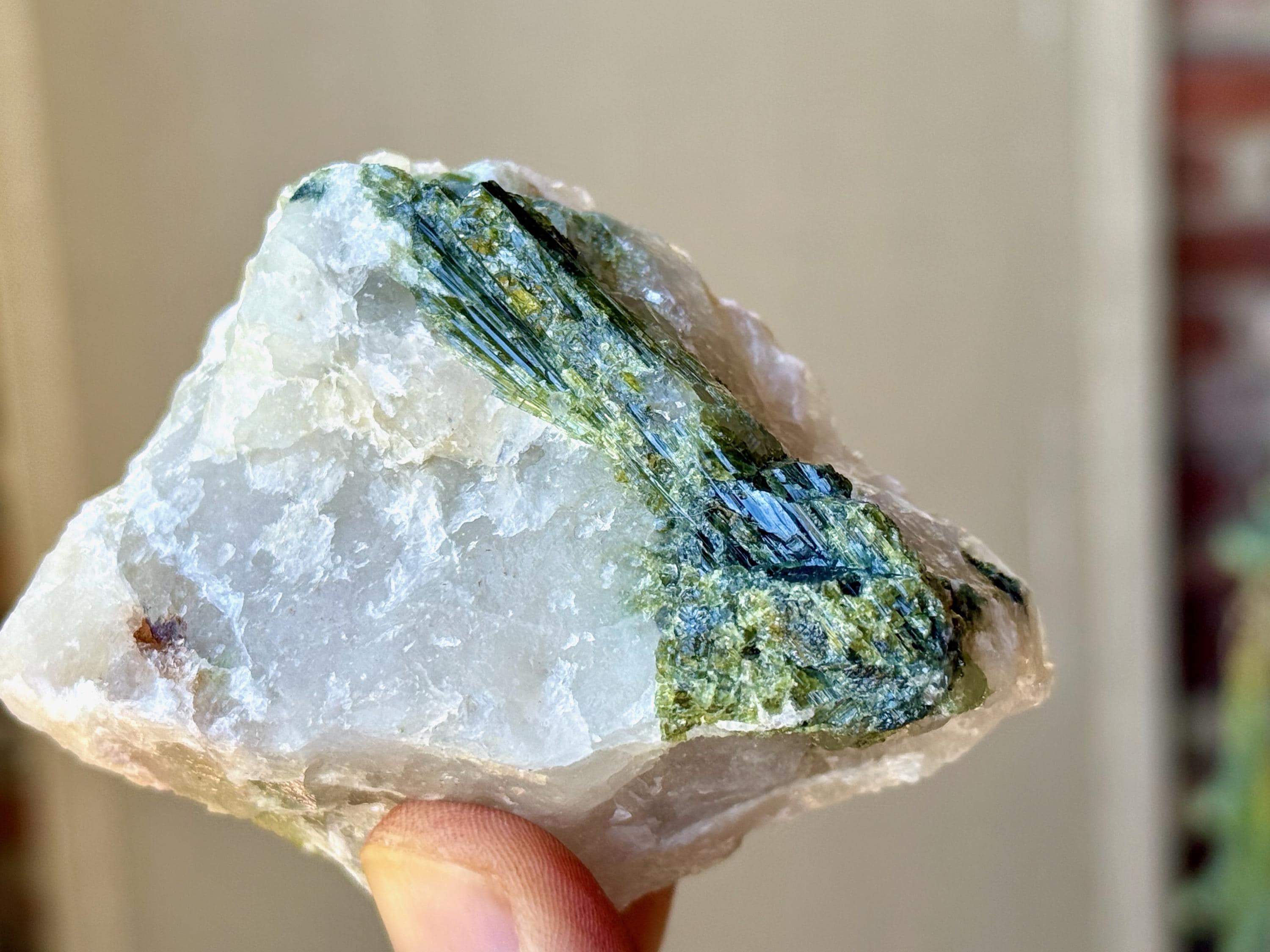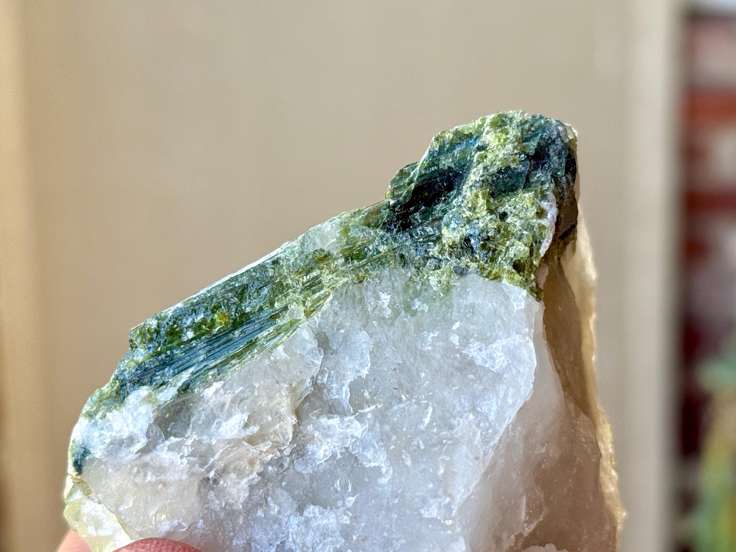 Green Tourmaline purifies and strengthens, allowing one to energetically carry greater amounts of Life Force (Prana Energy). As more energy is carried within the physical body, higher degrees of consciousness can be maintained. It is a wonderful protection stone, deal for sealing holes in the aura that leave one vulnerable to negativity.