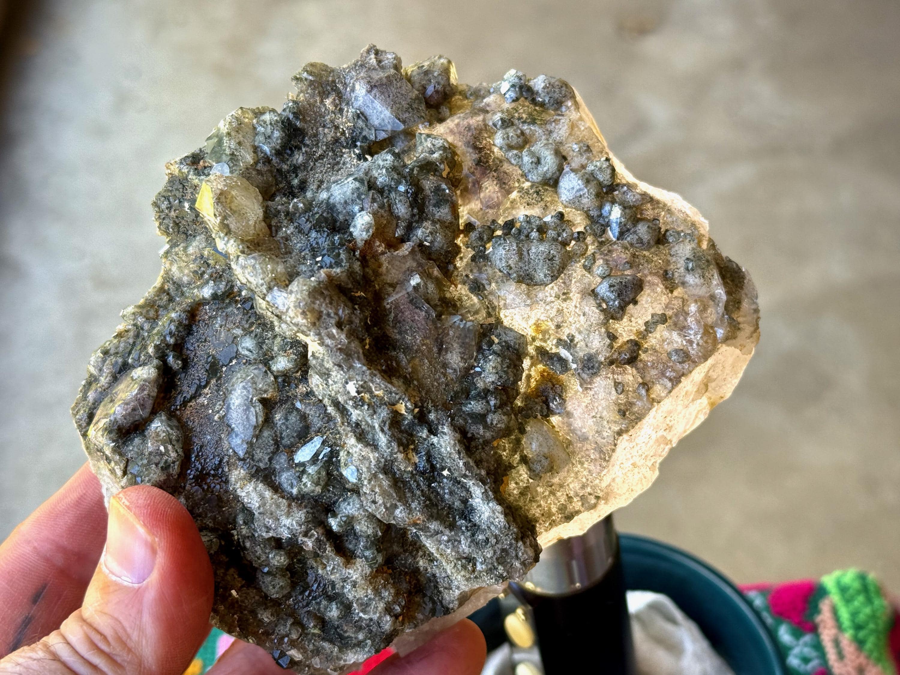 The overall formation is also a "plate" or "shield" with a broad and flat formation. Because of this, it sits perfectly for display on any flat surface, as pictured. Nice terminations all around. A really cool piece from this old find!