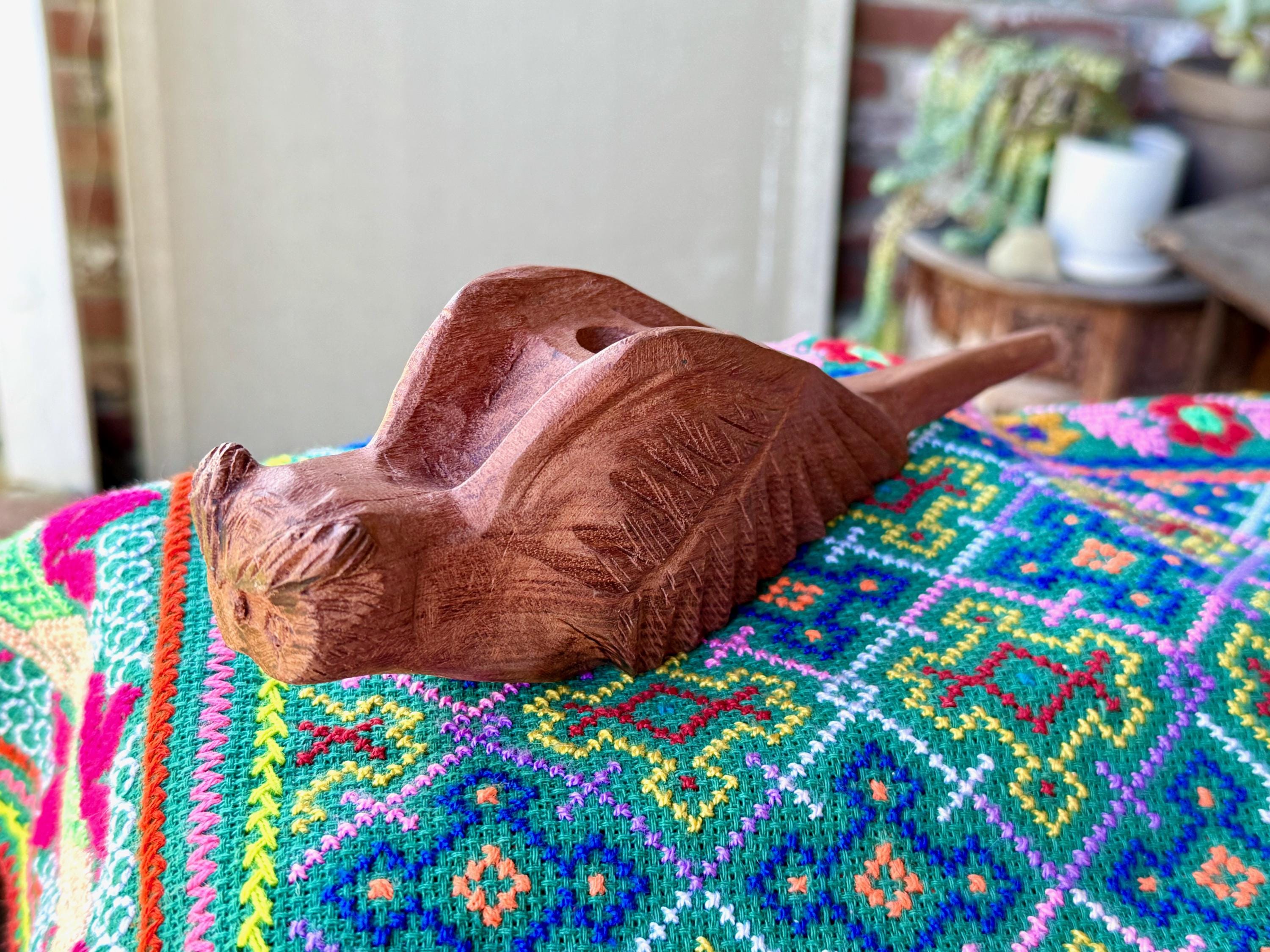 This traditional, hand-carved Owl Tobacco Pipe was made by Betson Macawashi, an artisan living and working in Pucallpa, in the Peruvian Amazon.