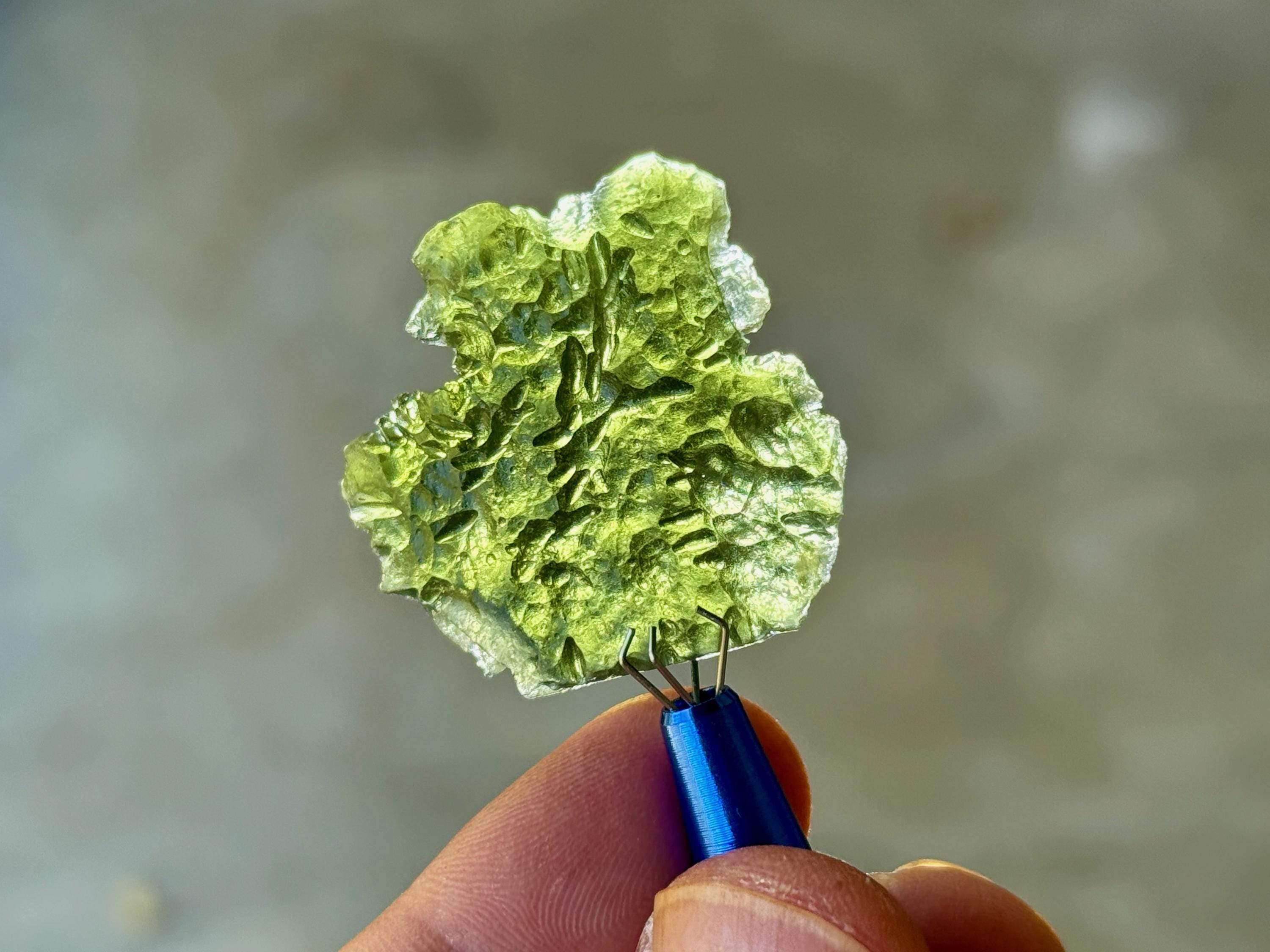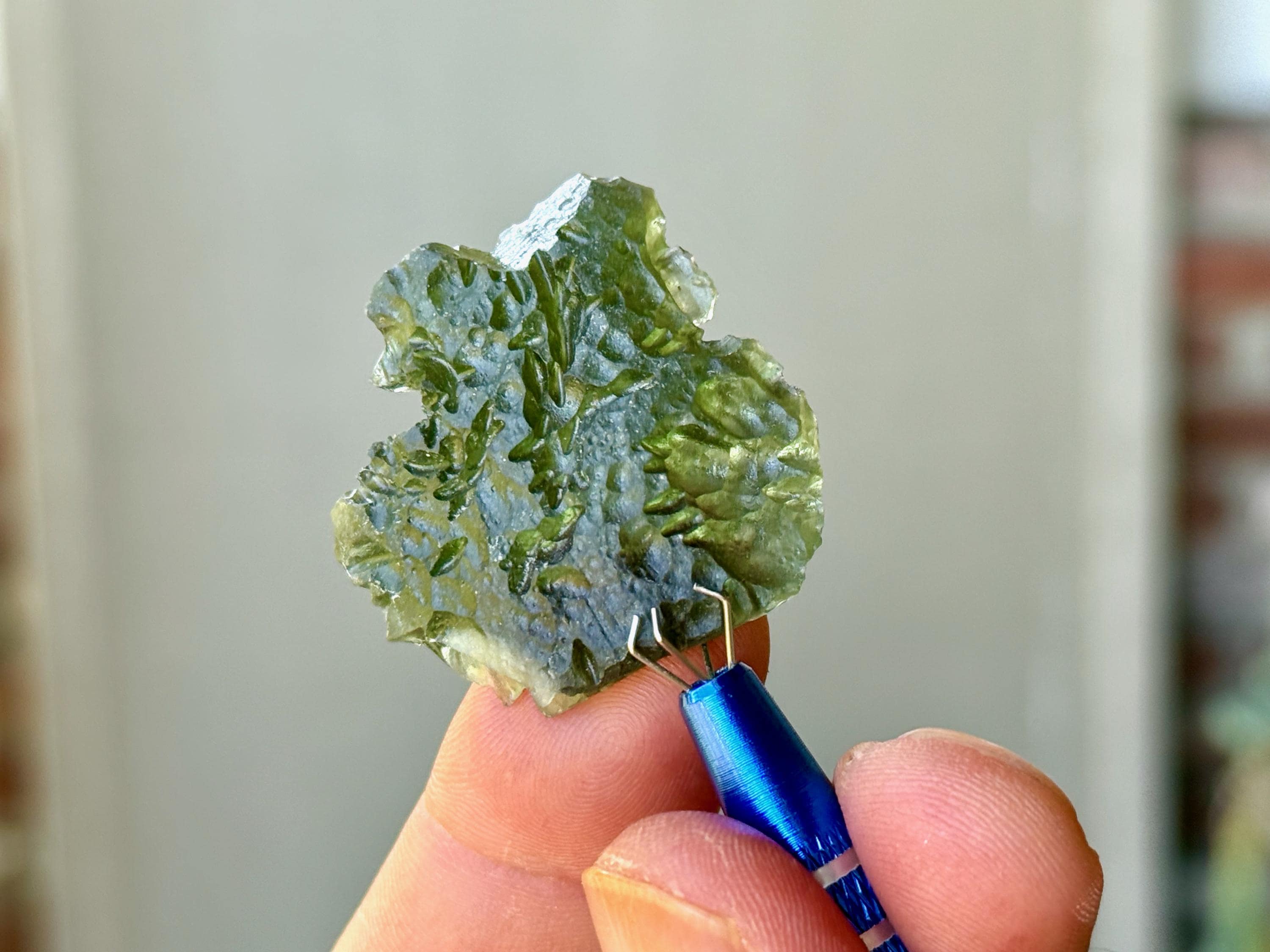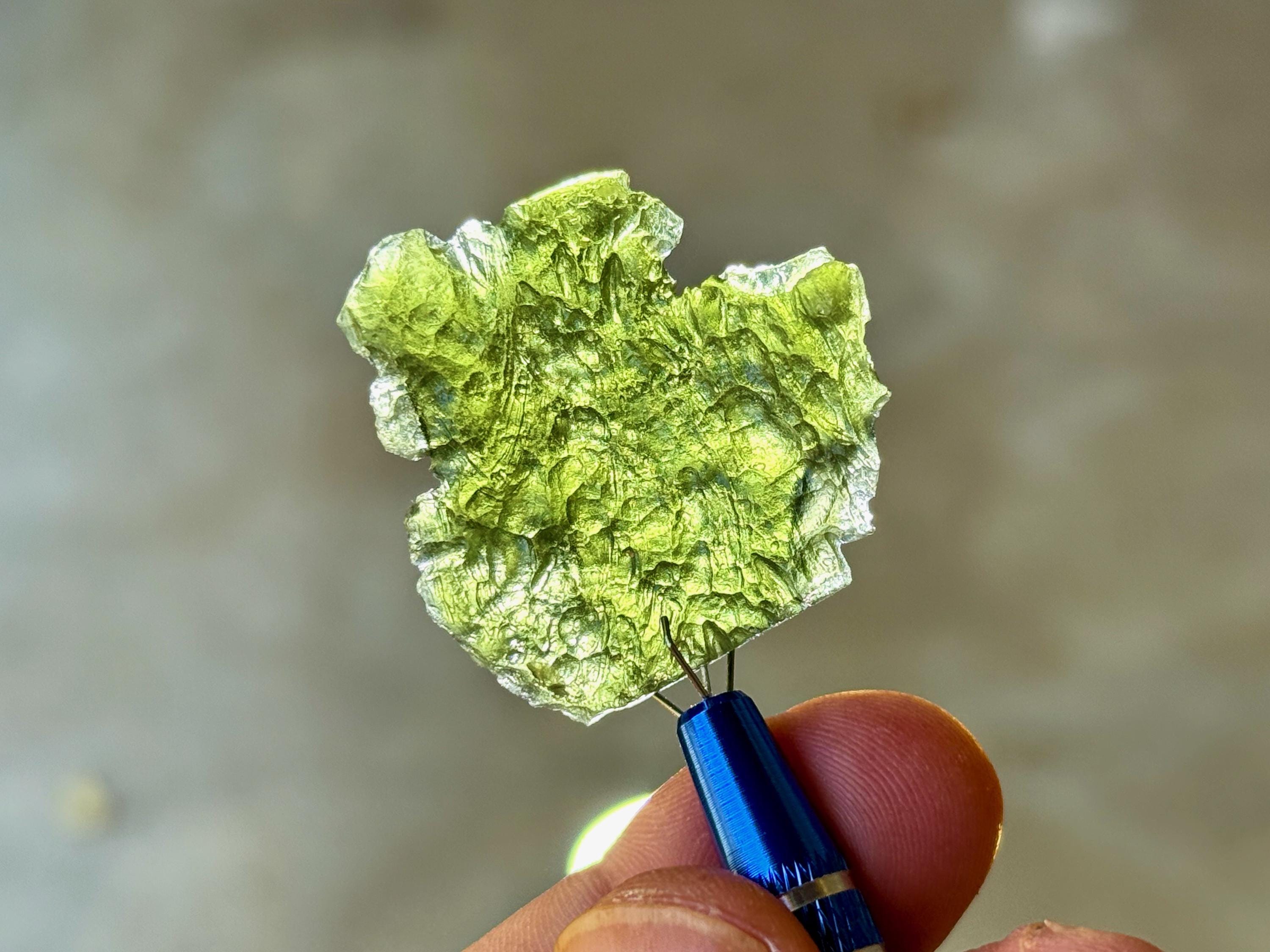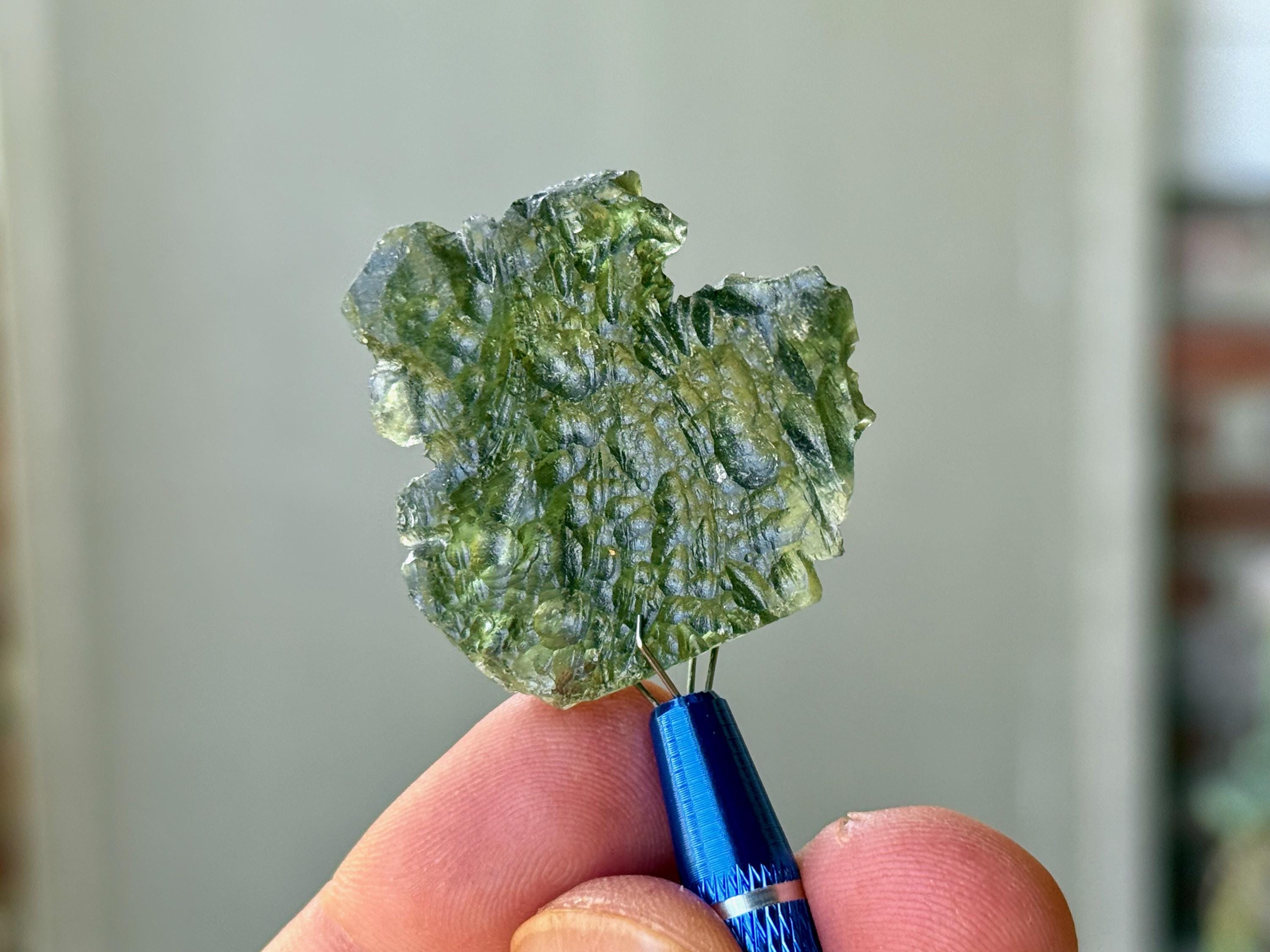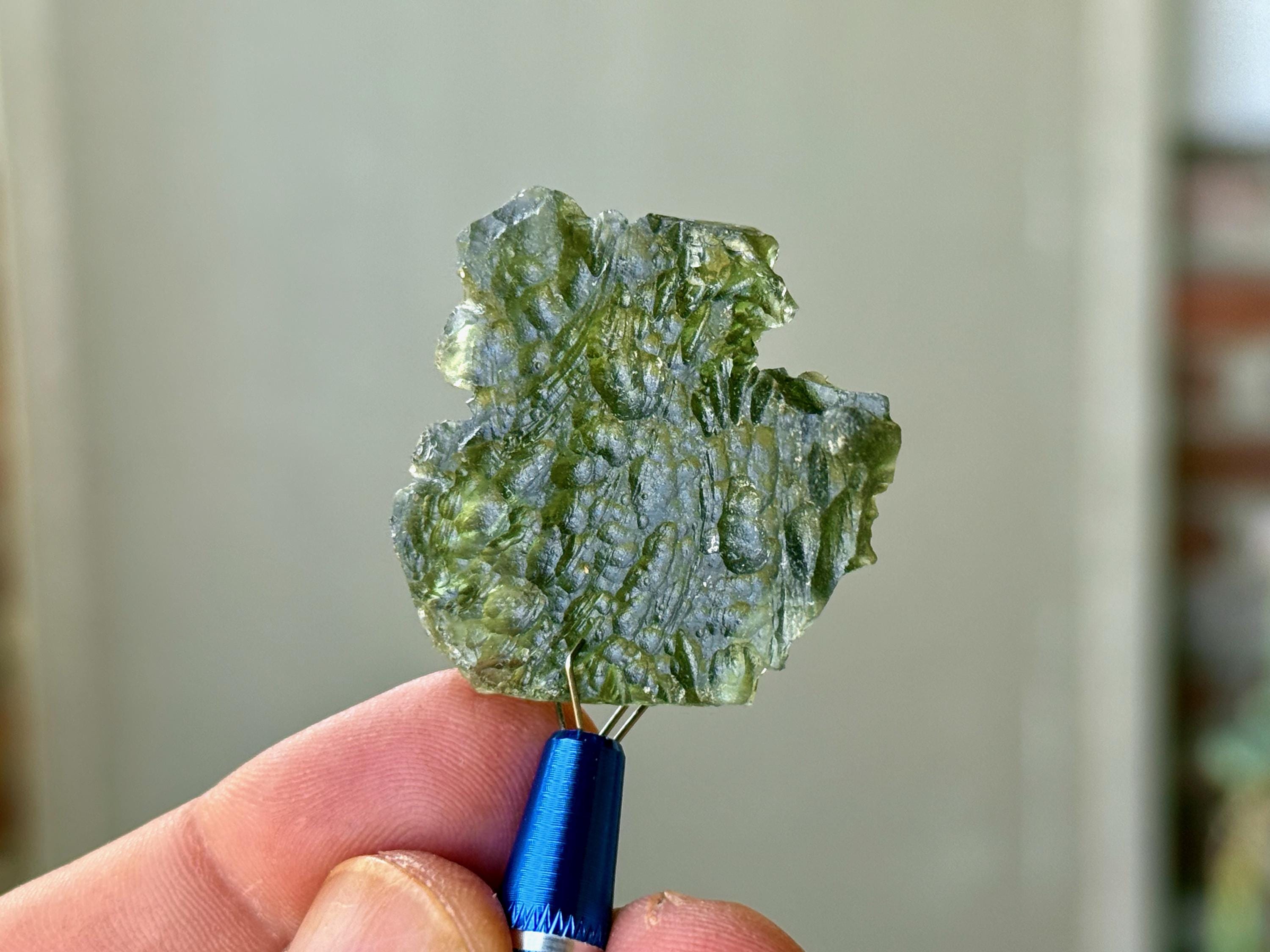 This exquisite Moldavite crystal comes from Chlum, Czech Republic. We hand-select our Moldavite directly from the Czech purveyors of this material so we can assure that it is authentic and high-quality.