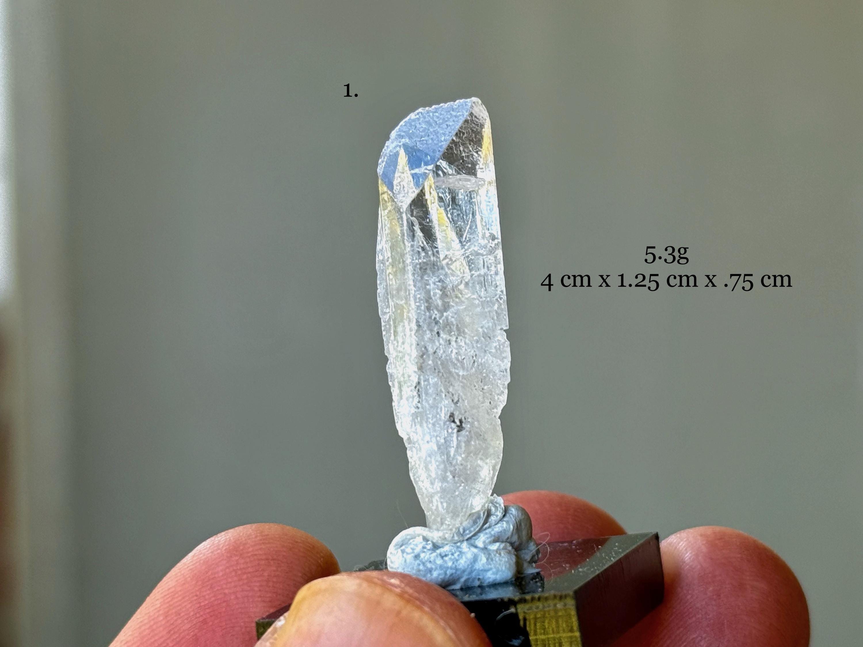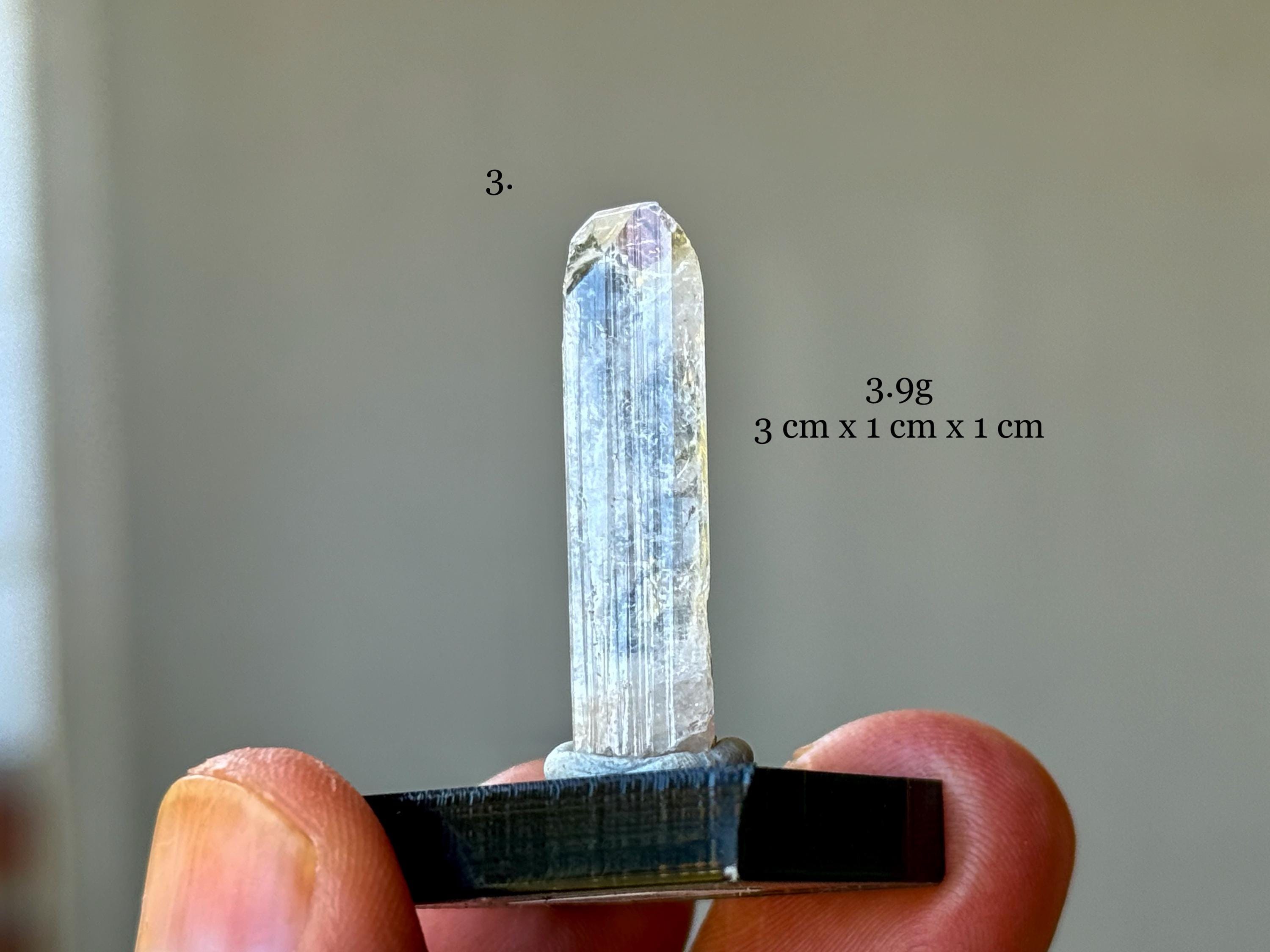 Each crystal ranges from 3-4 cm in length and between 3.9g - 5.3g in weight. Please see photos for exact measurements of each.