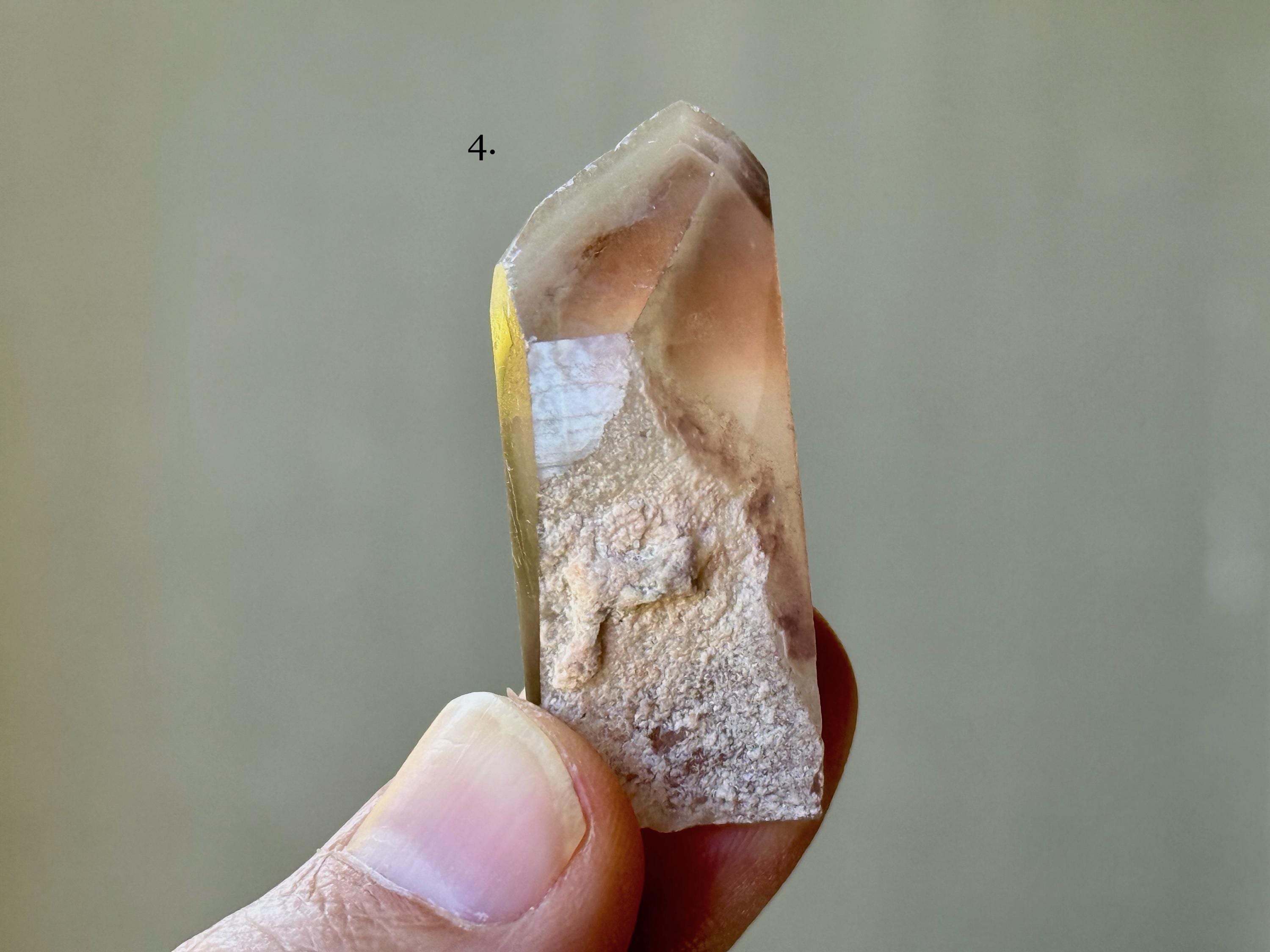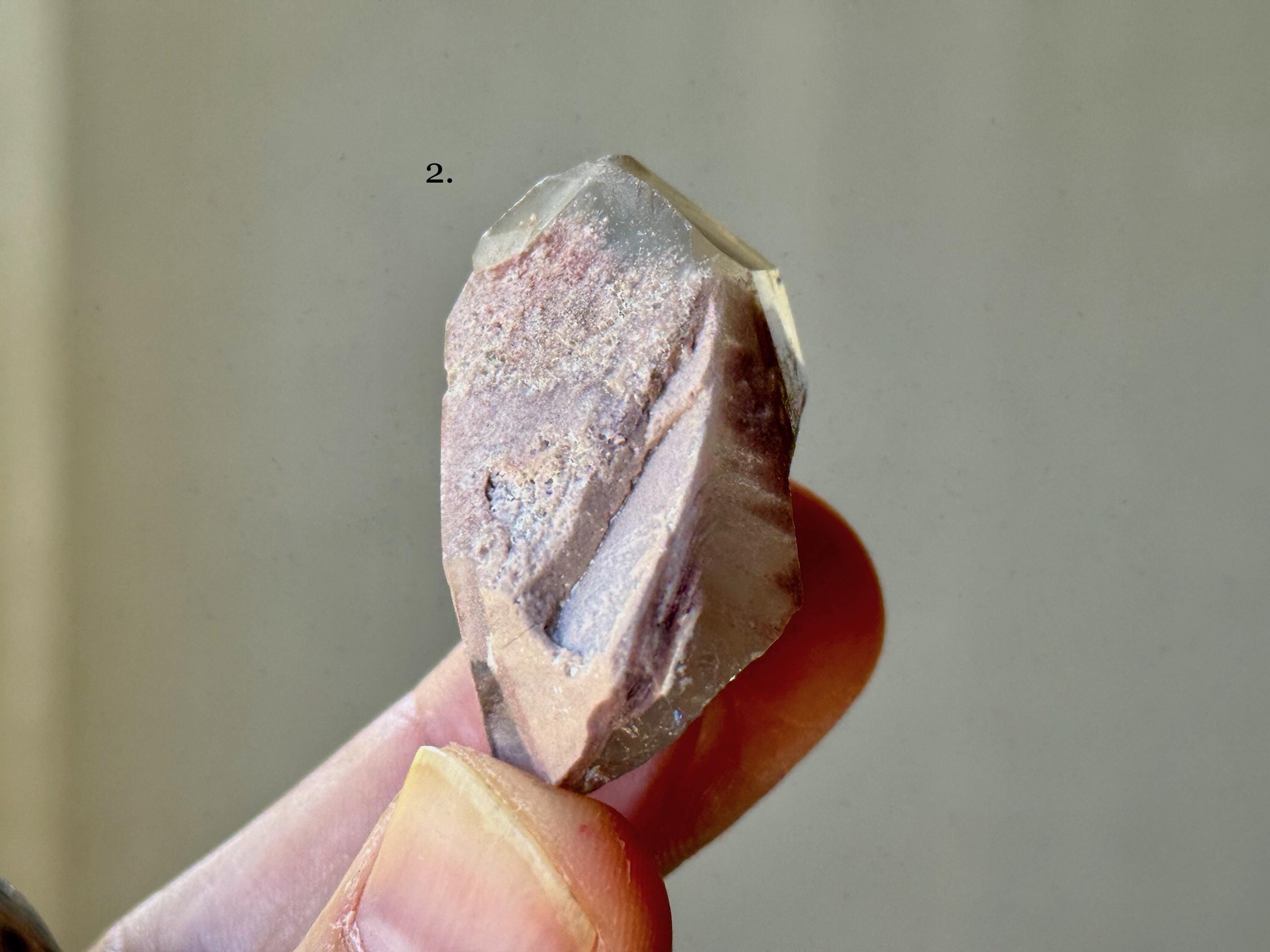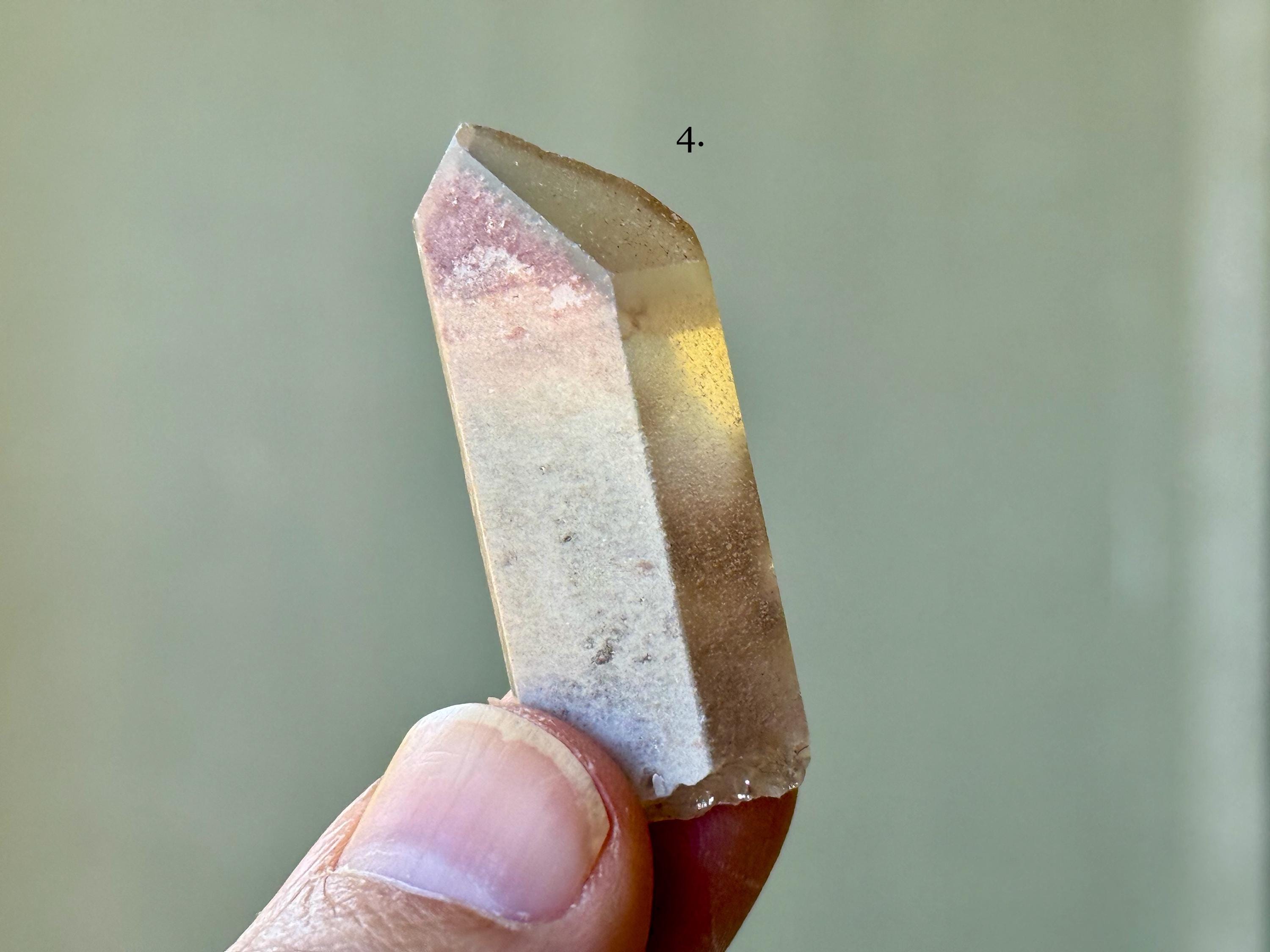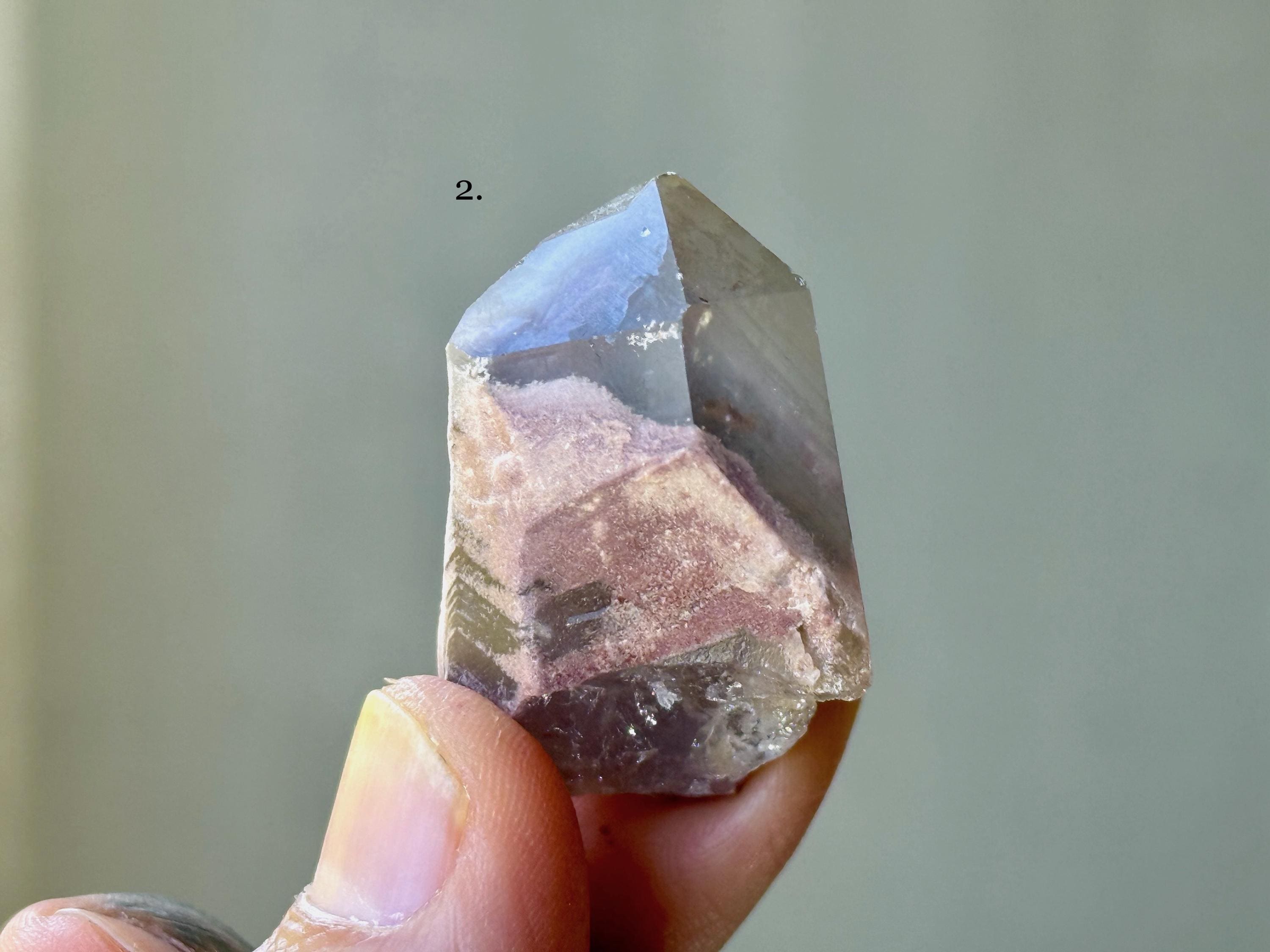 These natural Green Chlorite & Pink Lithium Phantom Quartz crystals come from a recent find in Bahia, Brazil. Each selection is numbered, simply select the one(s) you'd like from the dropdown.