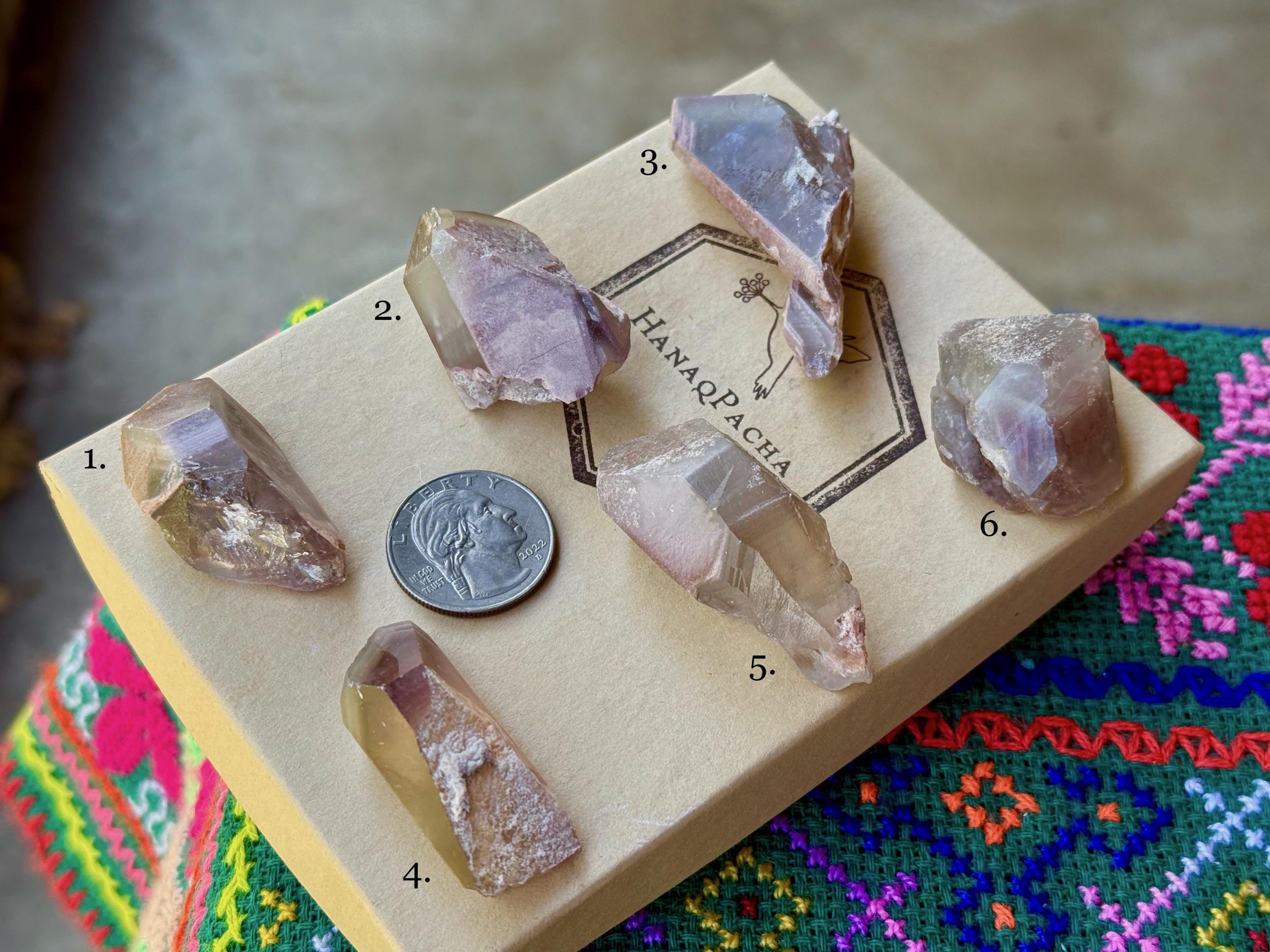Simply select the crystal(s) of your preference from the dropdown menu (#1 - 6). The crystals are numbered in Photos 1-2, and each photo in the dropdown correlates to the actual crystal purchased.