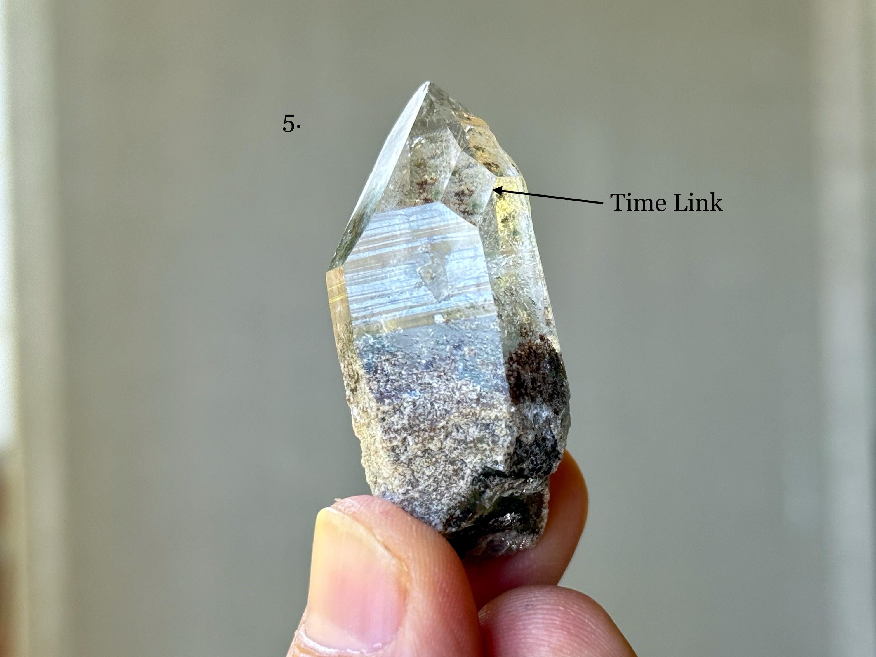 Each of these Lodolite Quartz crystals possesses water-clear clarity, as well as its own unique inner landscape of colorful phantom inclusions, which may include Green Chlorite, Kaolinite, Hematite or other minerals in the Lodolite family.