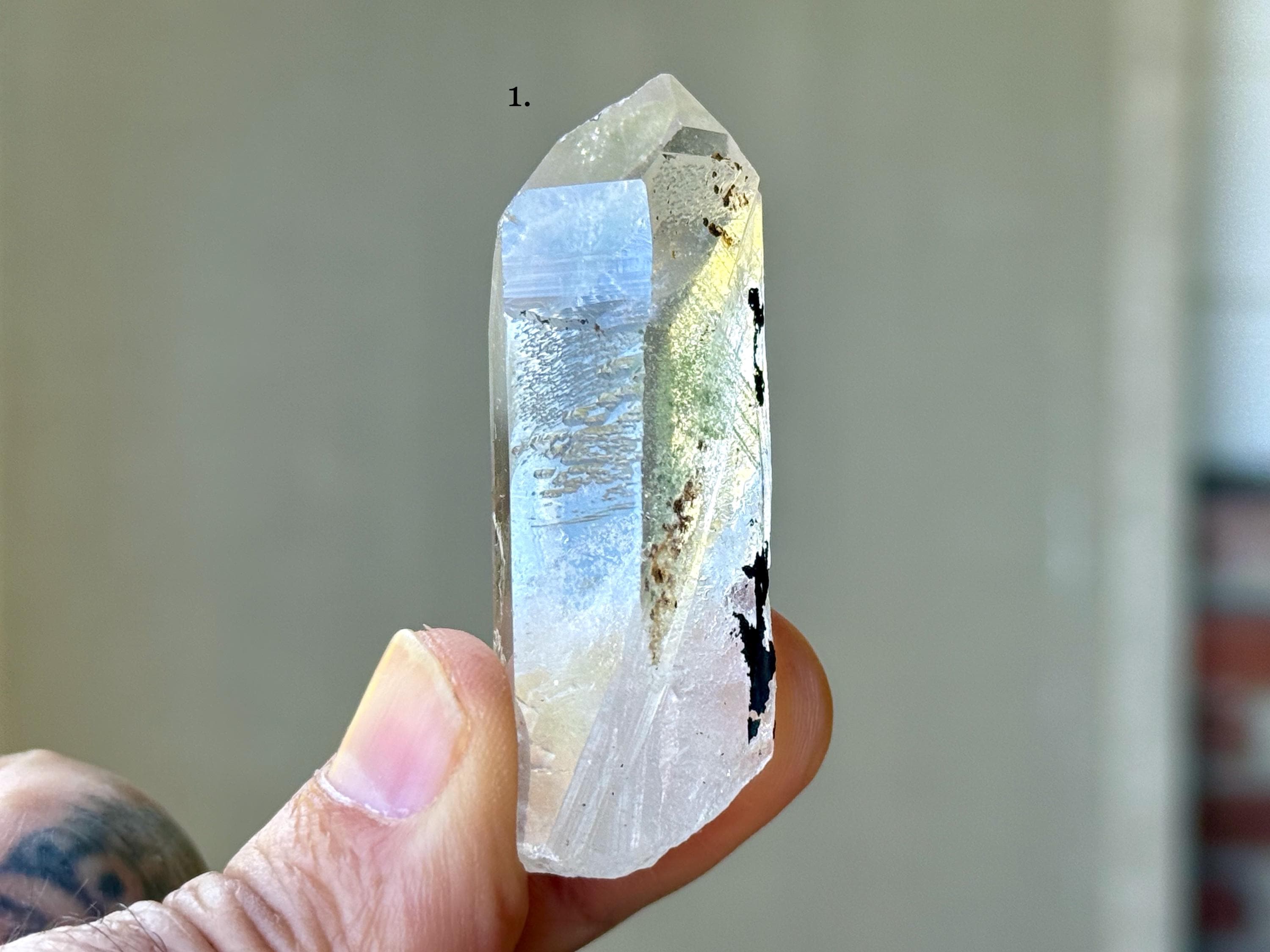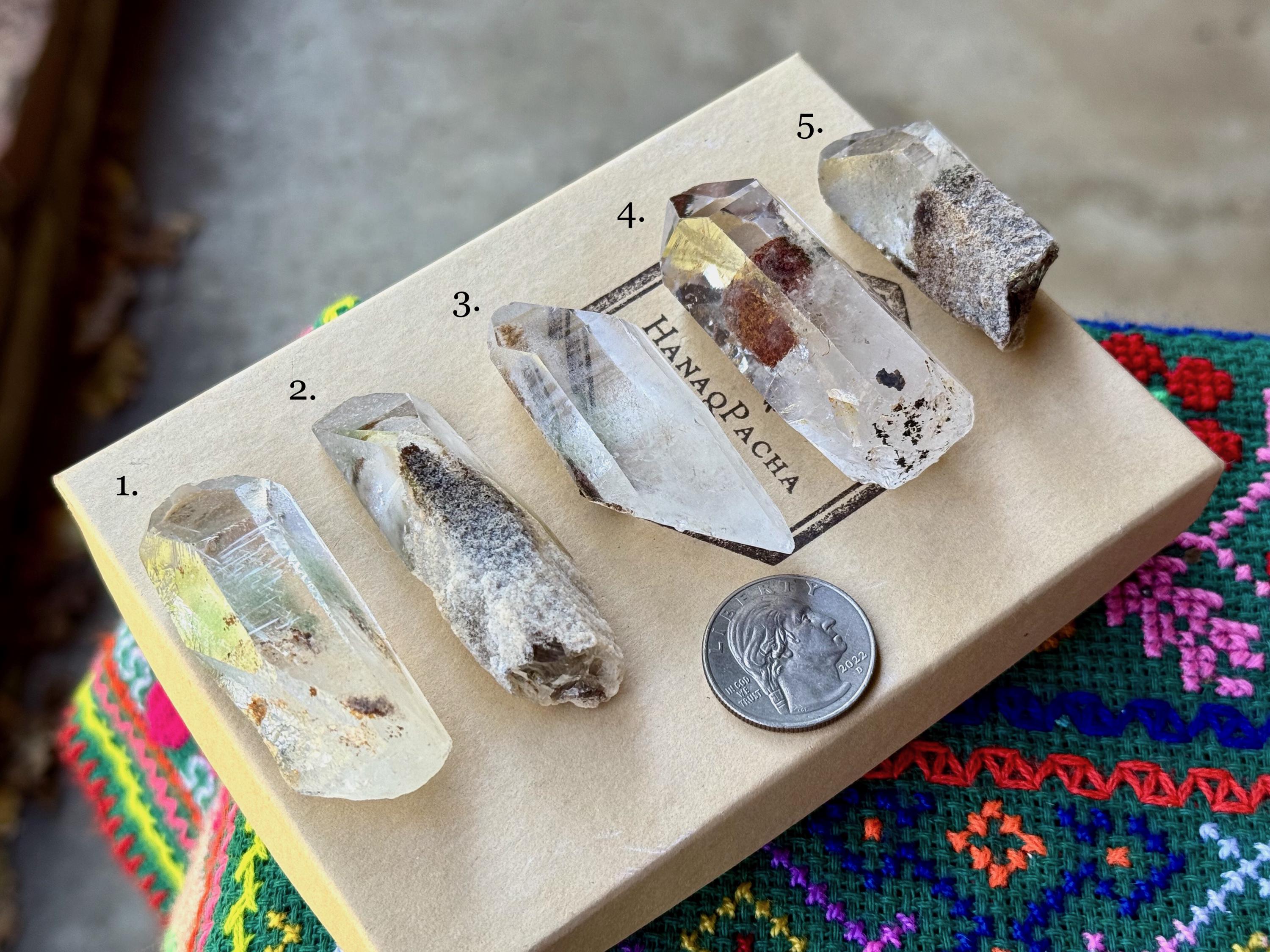 These beautiful Lodolite Quartz crystals come from a recent find in Corinto, Minas Gerais, Brazil. Each selection is numbered, simply select the one(s) you'd like from the dropdown.