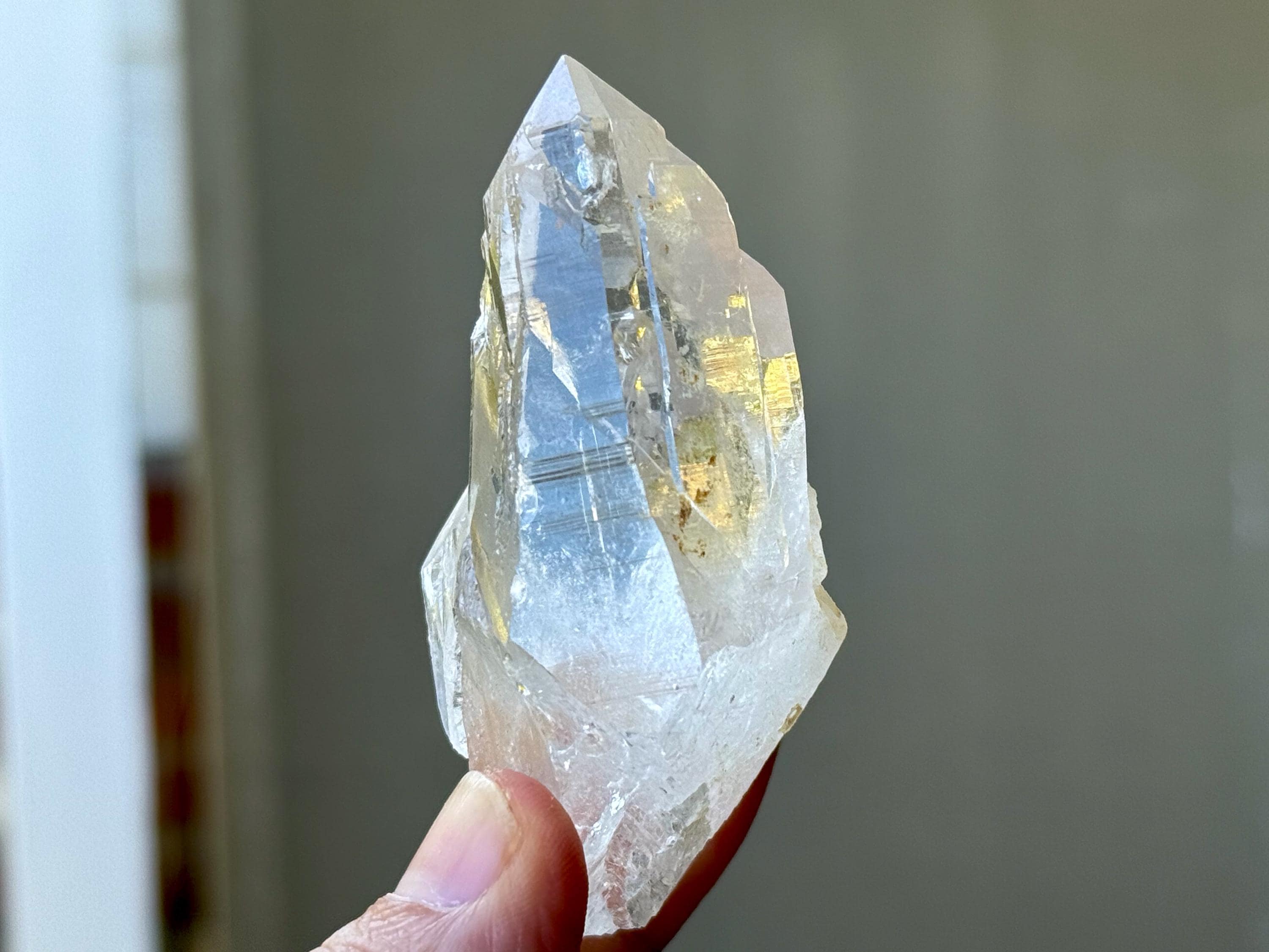 Absolute perfection! This is a stunning Cathedral Quartz crystal with water-clear clarity and magnificent luster. We're most impressed with the formation of this piece, as it's really the quintessential type of cathedral formation we always look for in these crystals, with its multiple "towers."