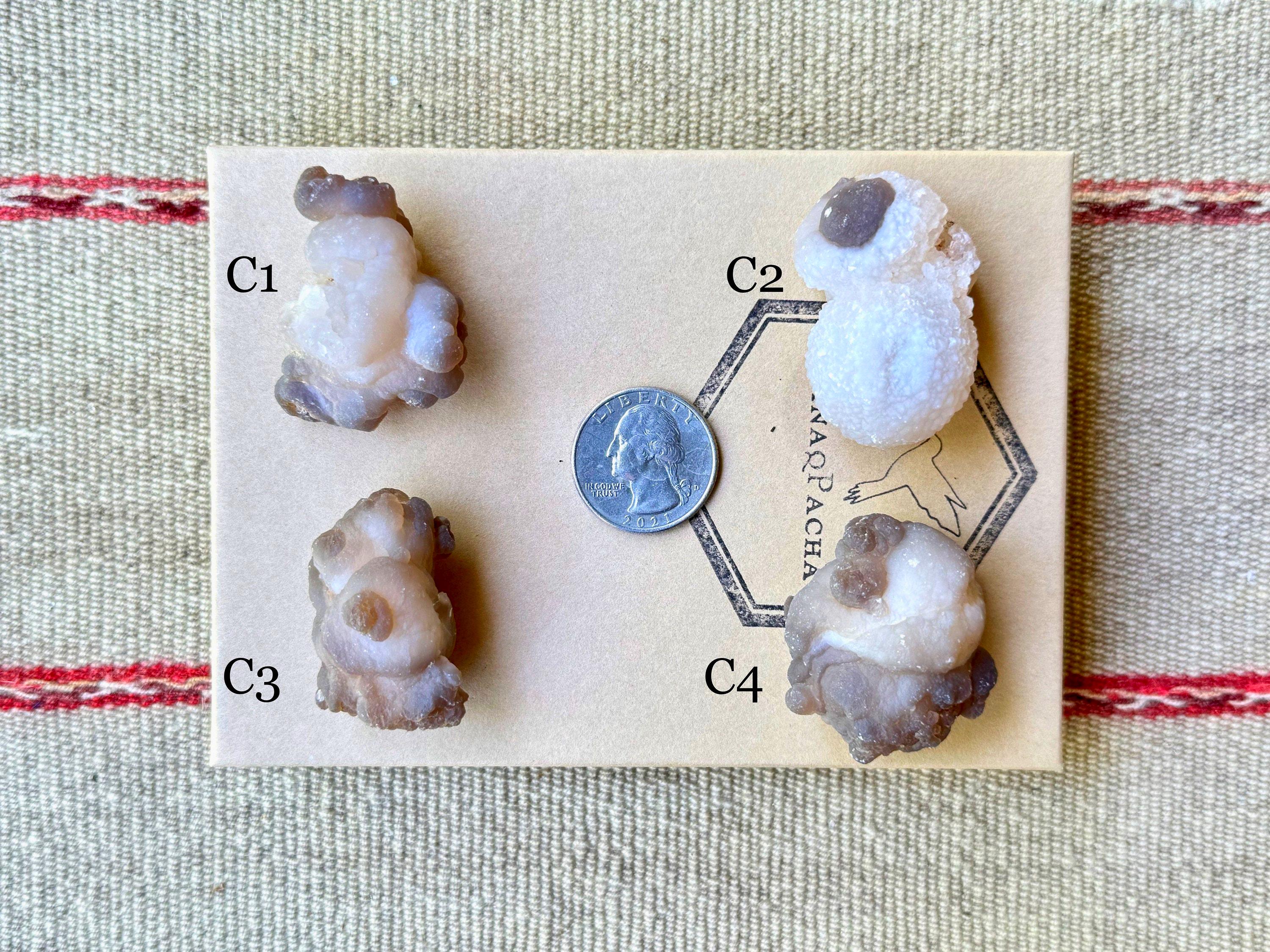 These unusual Chalcedony crystals come from Morocco. Each selection is numbered, simply select the one(s) you'd like from the dropdown.