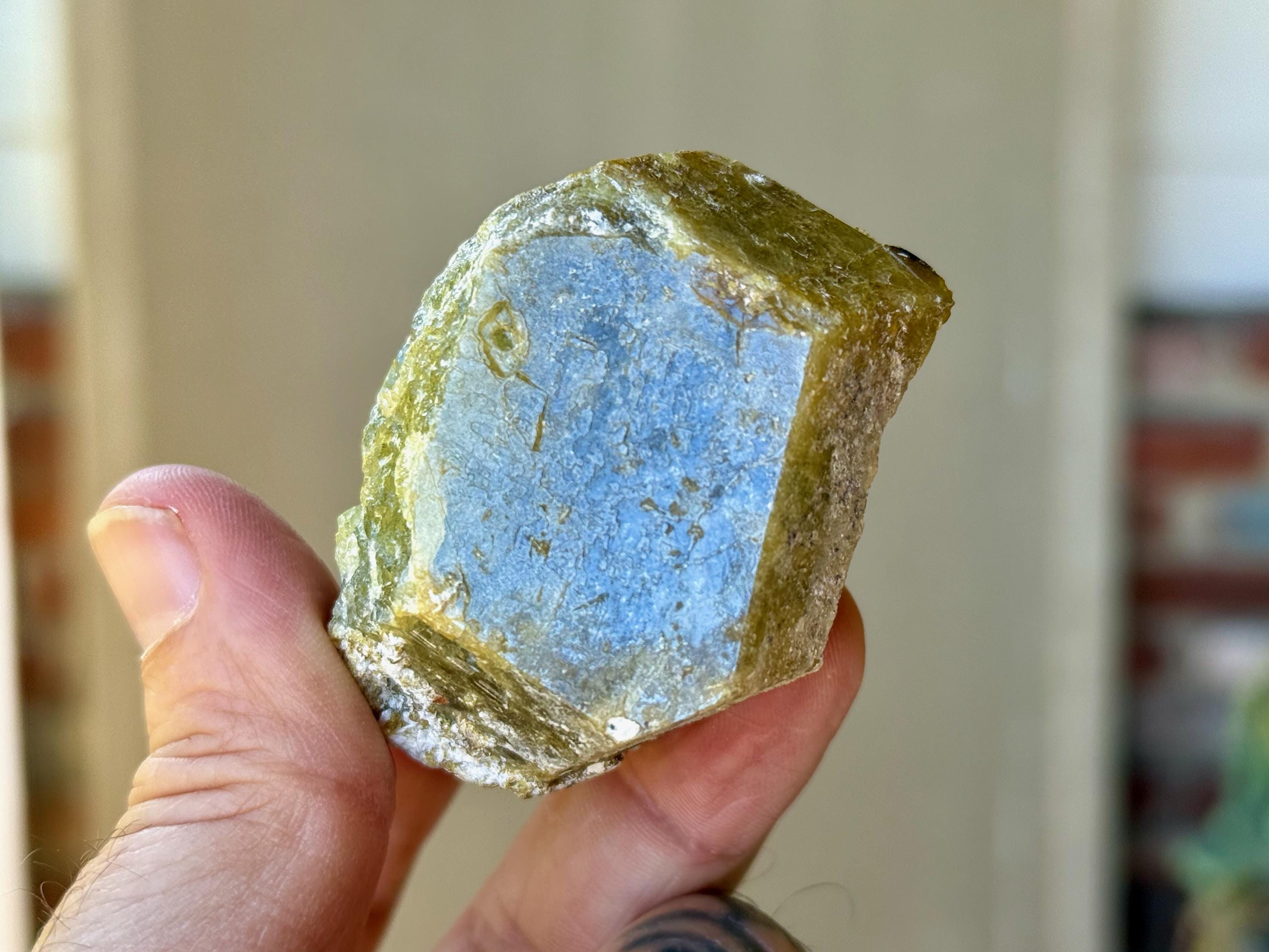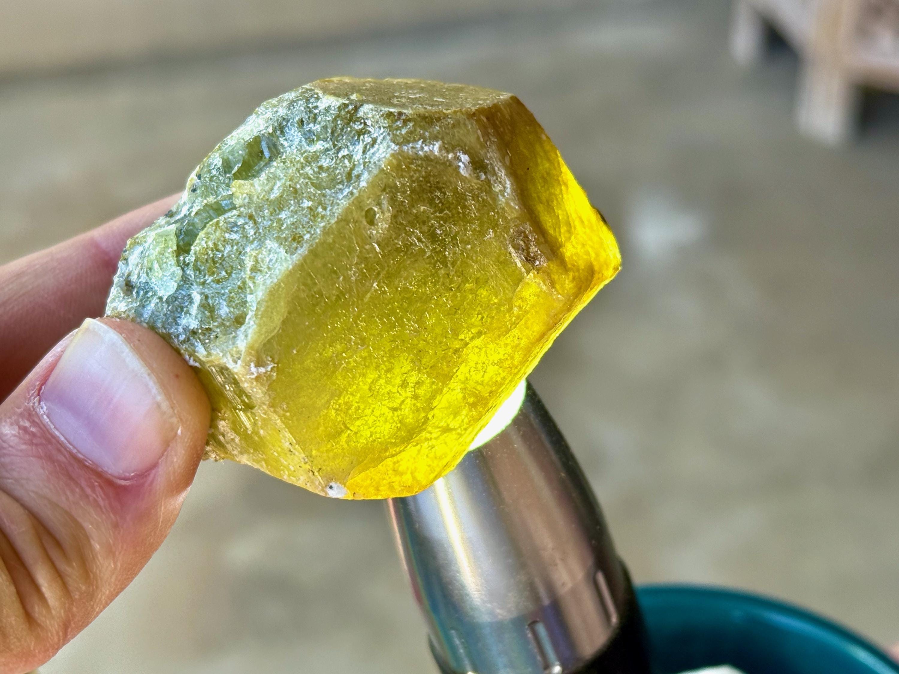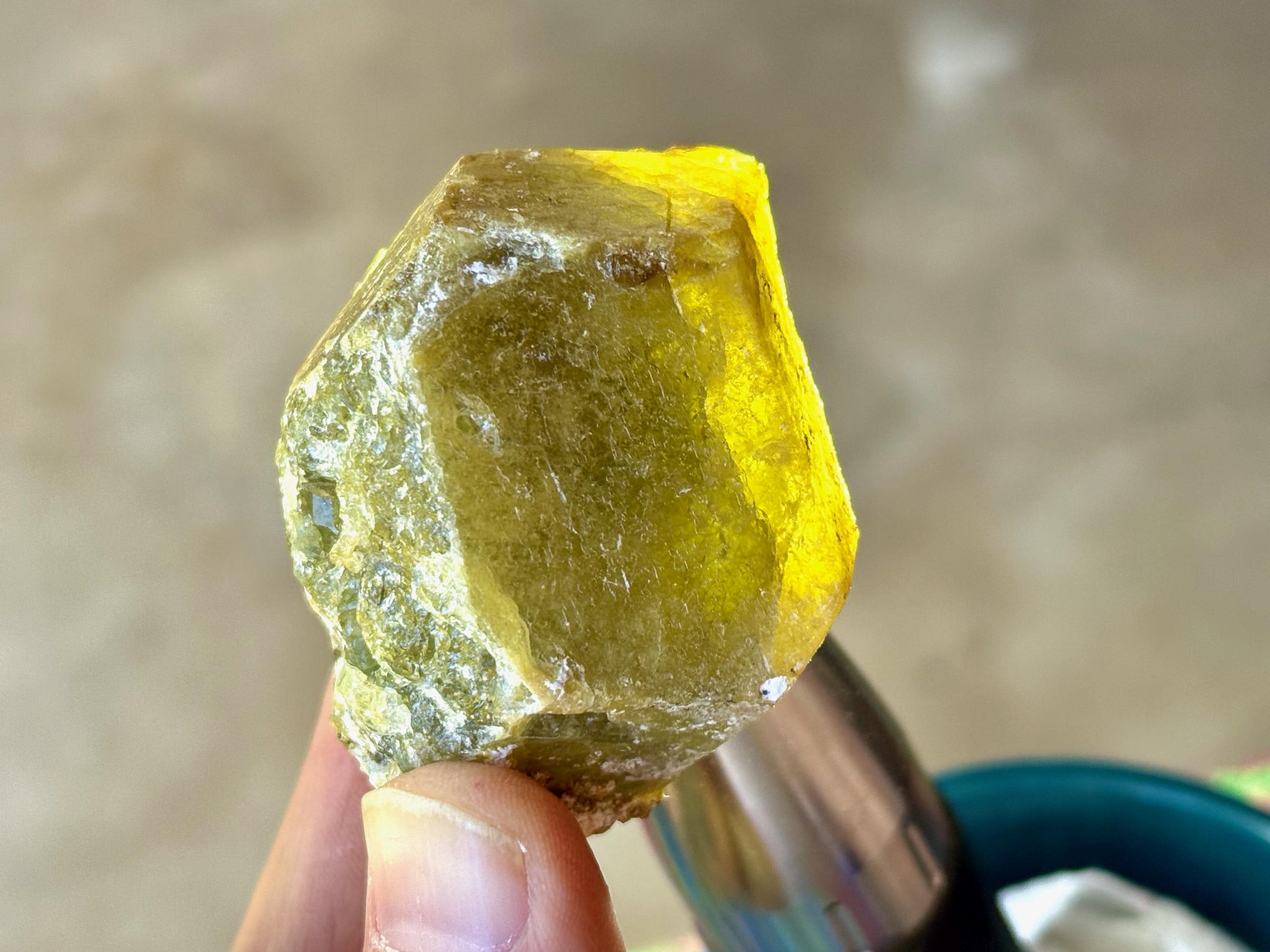 One of the larger pieces from this collection, this lustrous Green Garnet has a gorgeous depth of color with mossy drab greens and mild browns. Despite how thick it is, it will pass light nicely in some areas when backlit (Photos 3-5).