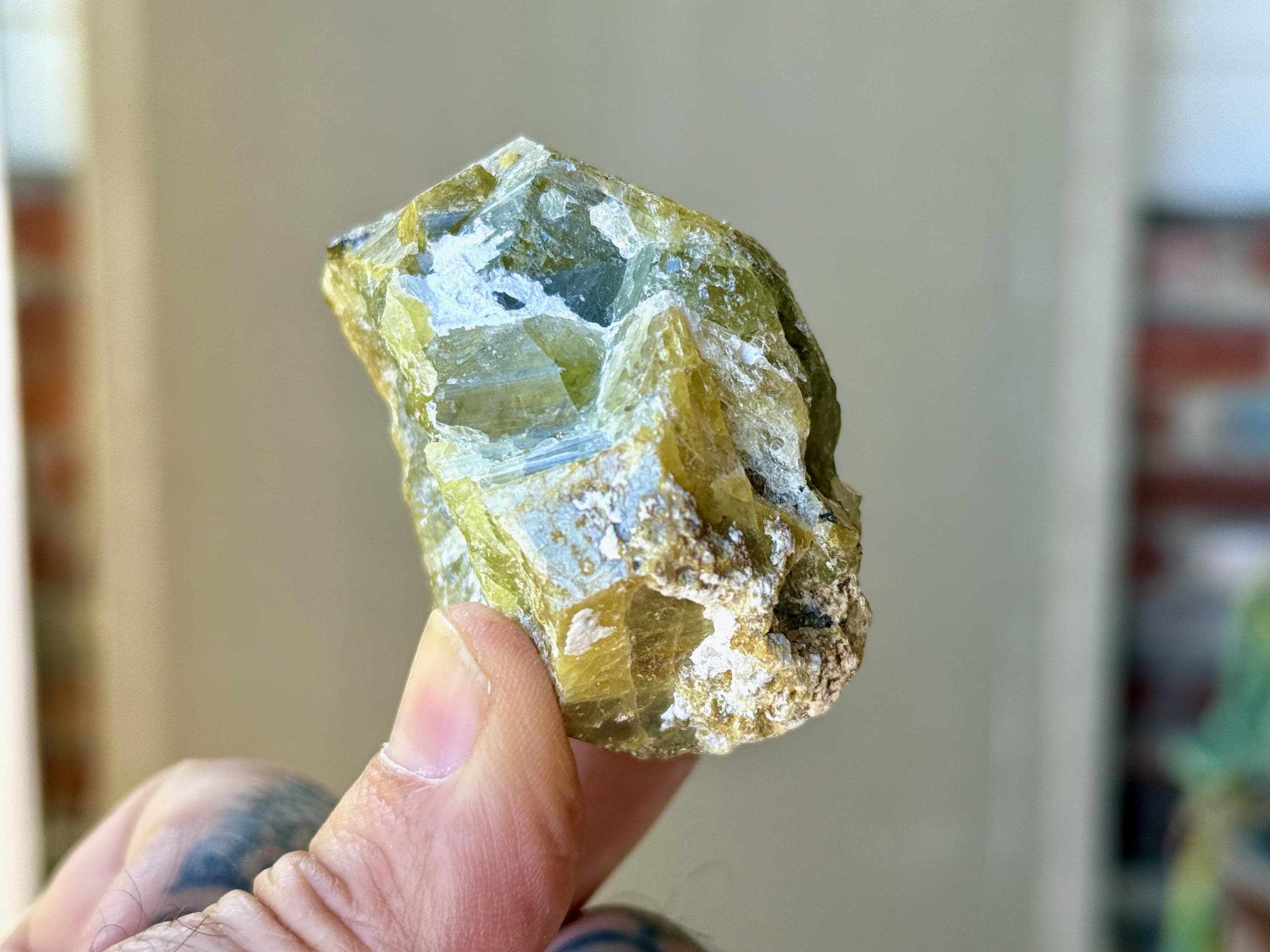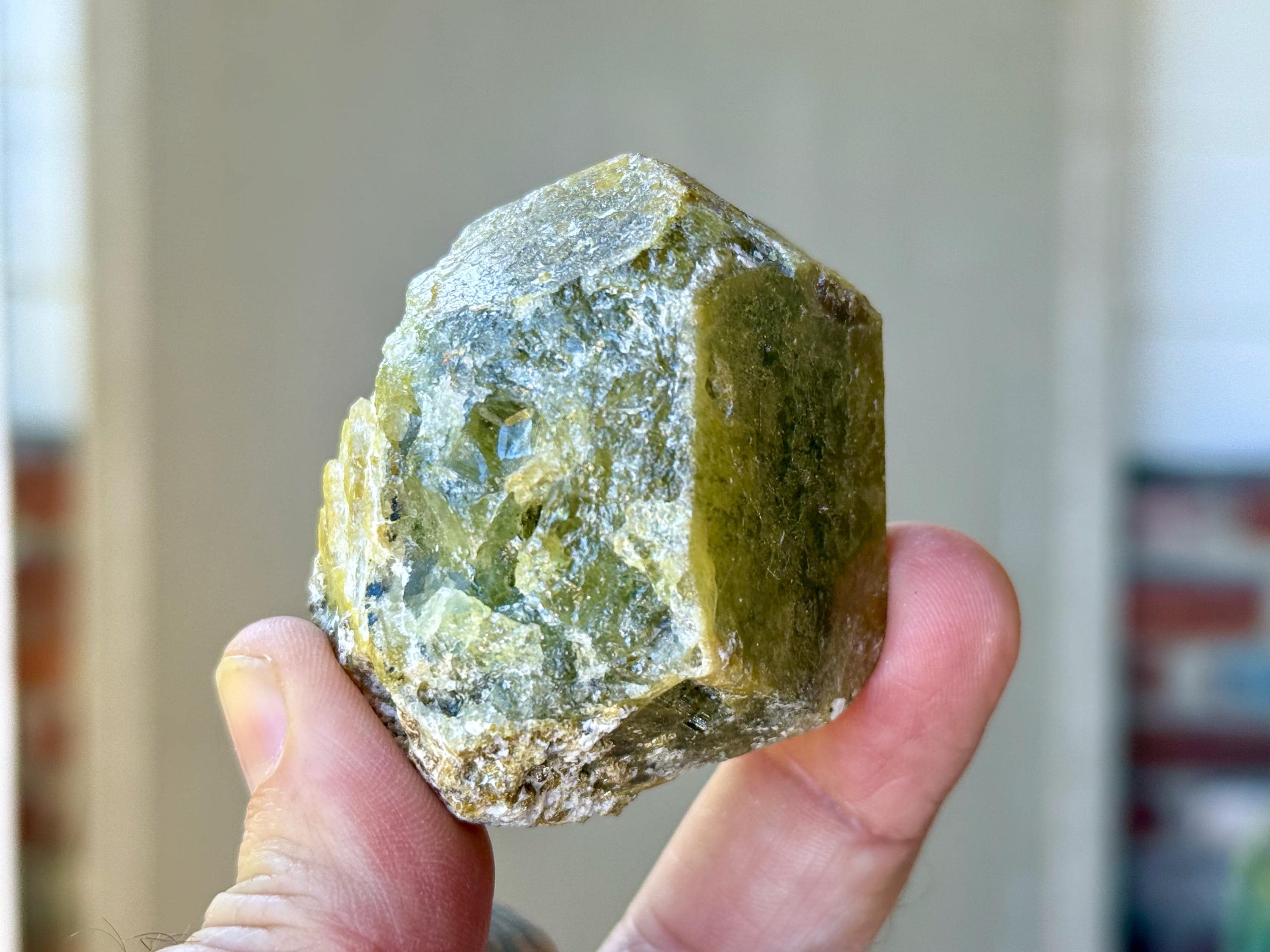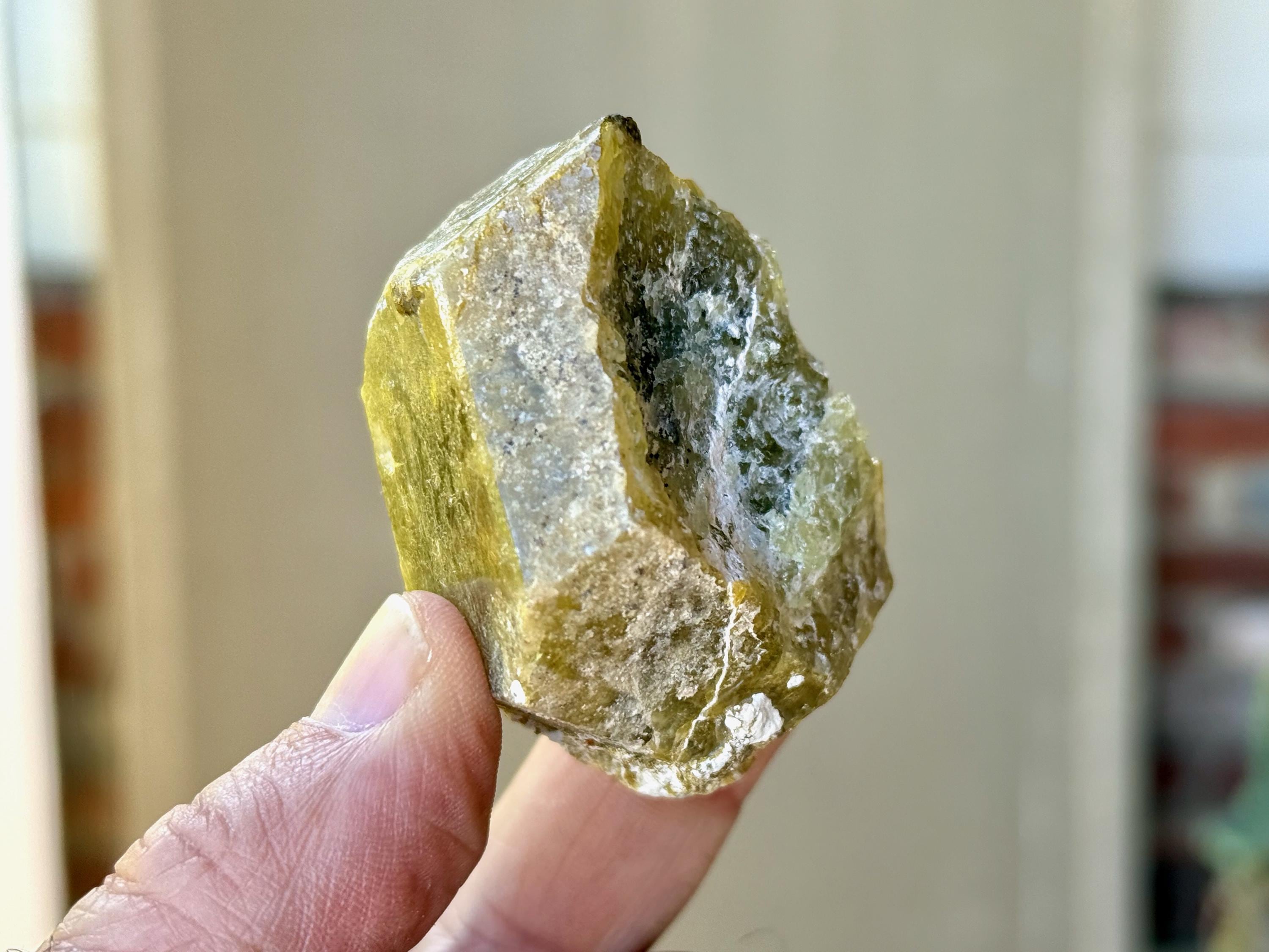 One of the larger pieces from this collection, this lustrous Green Garnet has a gorgeous depth of color with mossy drab greens and mild browns. Despite how thick it is, it will pass light nicely in some areas when backlit (Photos 3-5).