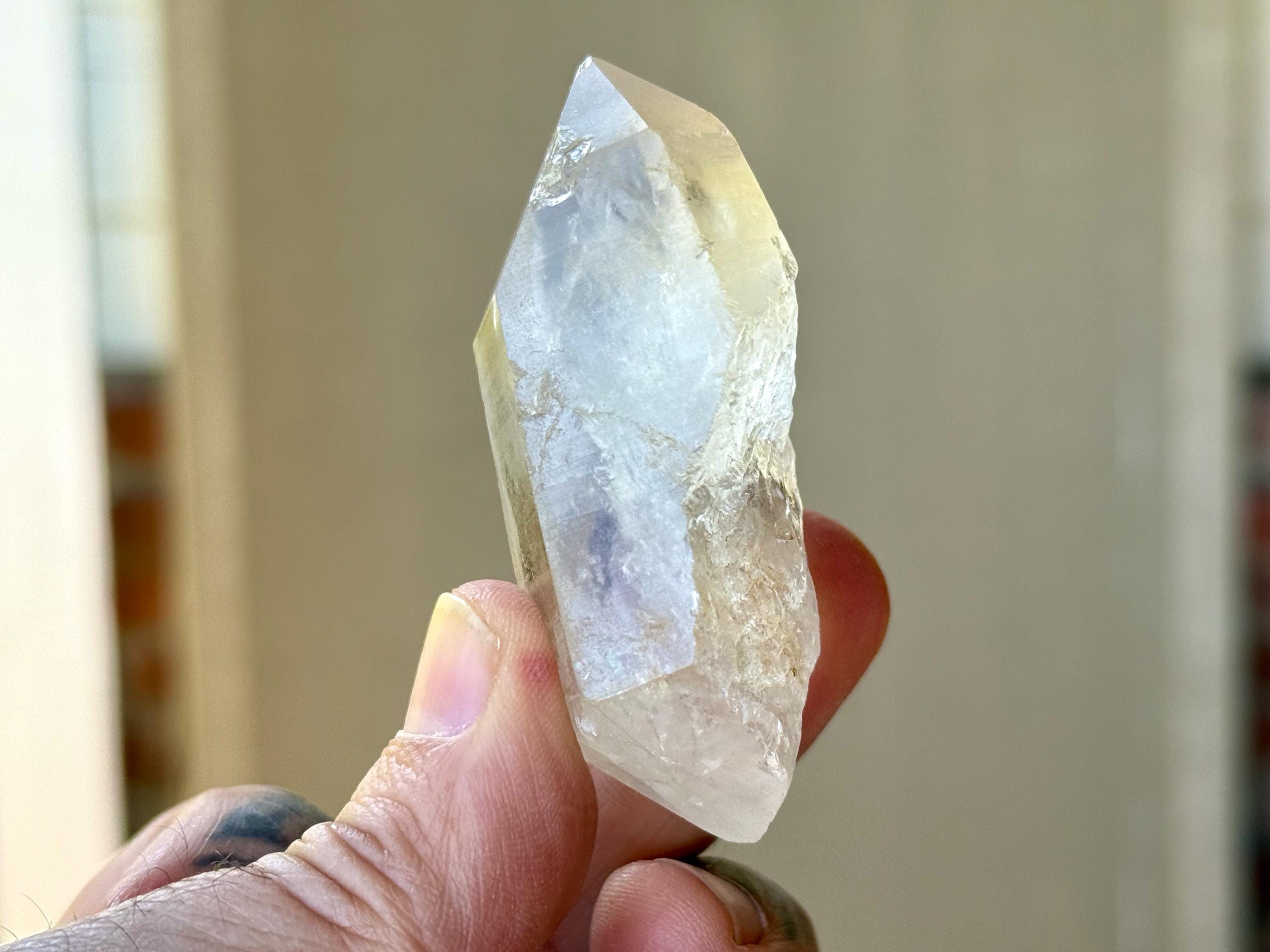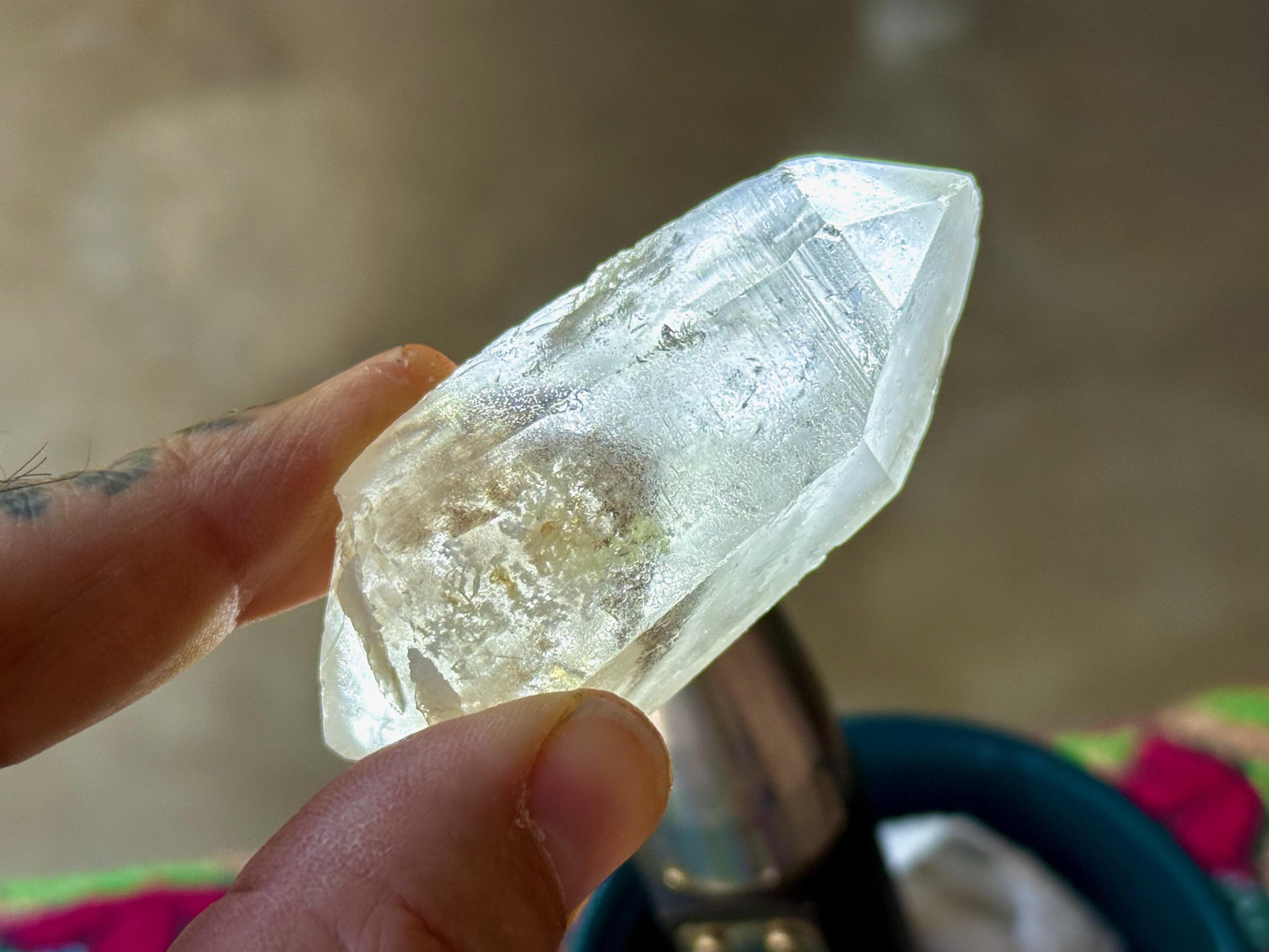 Lemurian Quartz resonates with all chakras, but primarily the Crown Chakra. It has one of the highest vibrations of any crystal and is a beautiful companion for meditation and to realign energies in the body. It can assist in clearing blockages in one's energy field and/or chakras, dispelling heavy energies from the body. If there is stagnant energy in the body, it can help to increase Prana (life force) energy to get things moving properly again. Meditating with Lemurian Crystals can allow us to connect with higher-dimensional spirit guides and connect to Divine realms, as well as to decode the information they contain within.