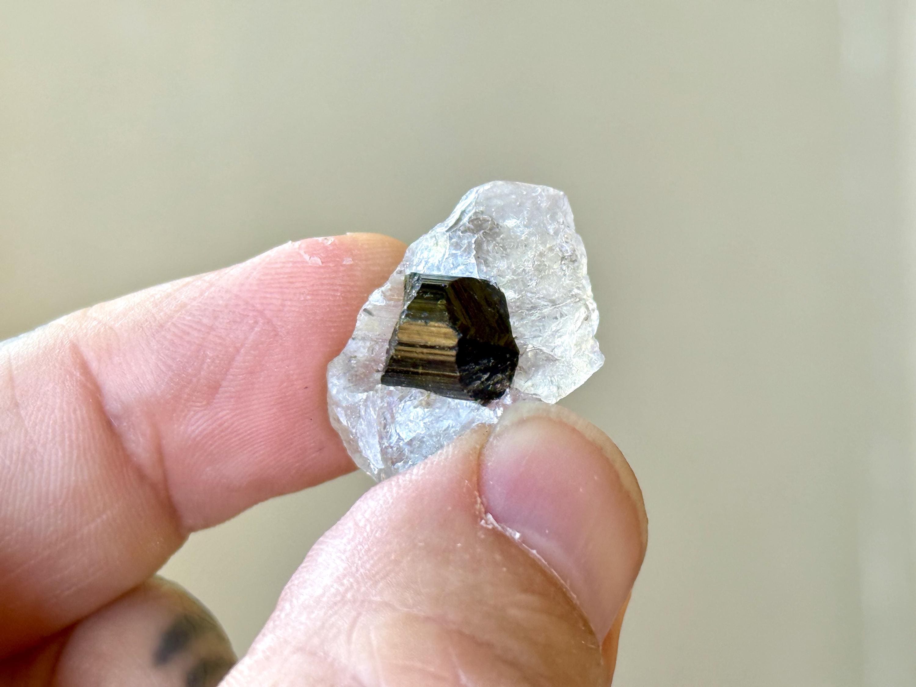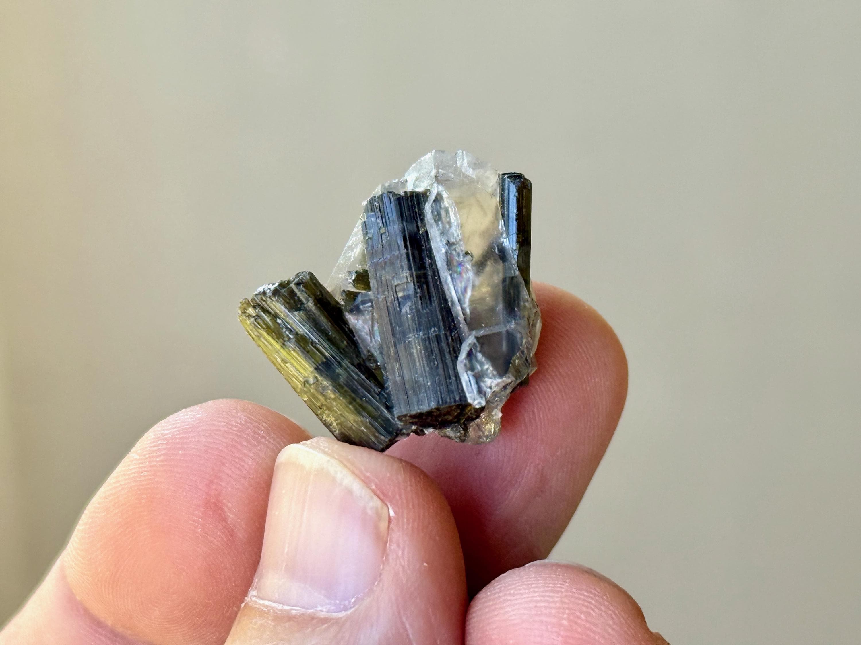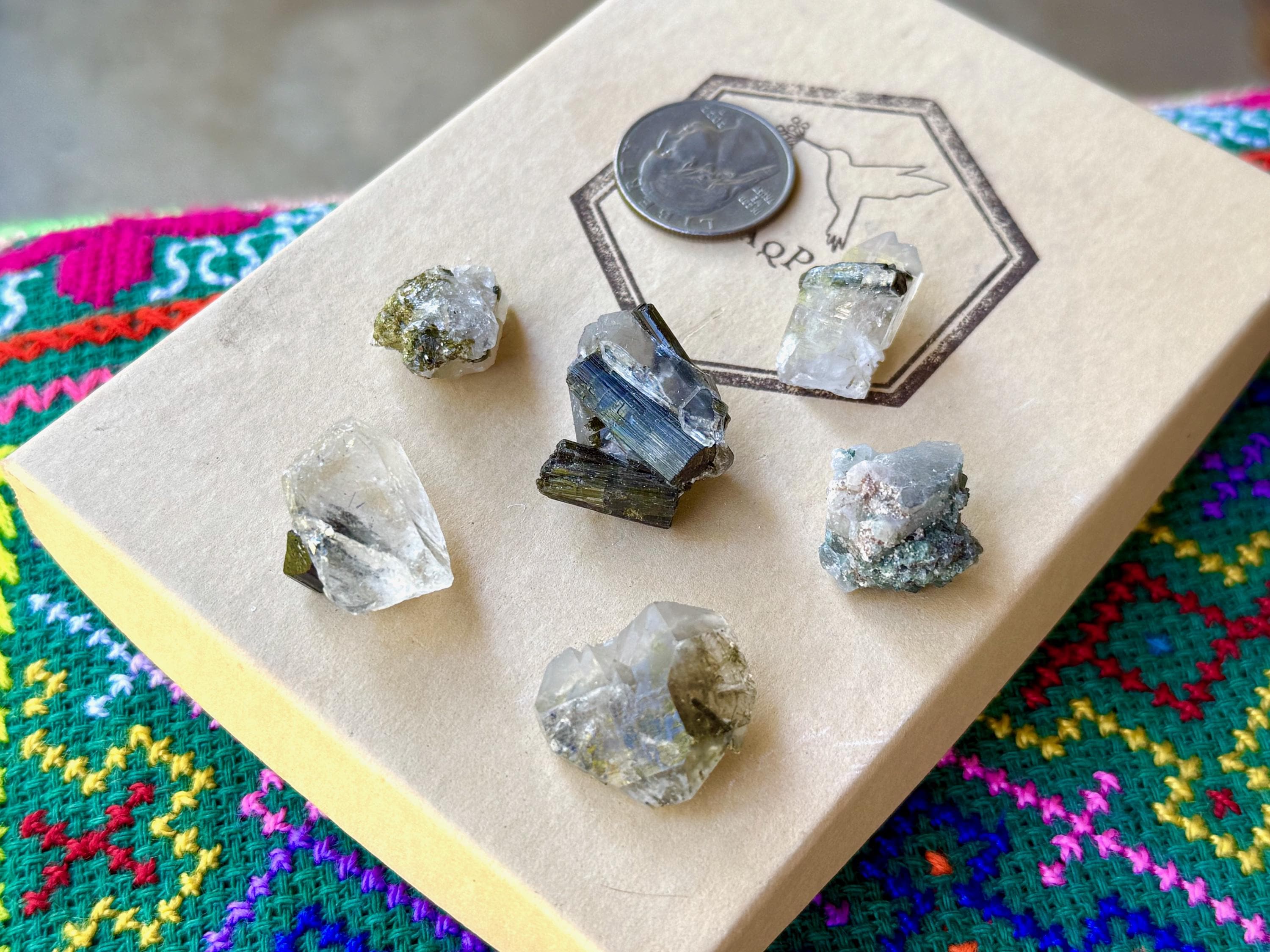 So beautiful! This is one of the only times we'll be listing crystals from this small find in a lot, as these are some of the last of the smaller pieces we have! This is a great collection of crystals, all of which have some kind of Tourmaline inclusion, and some are quite gemmy! When backlit, as pictured, some of these will pass light beautifully.