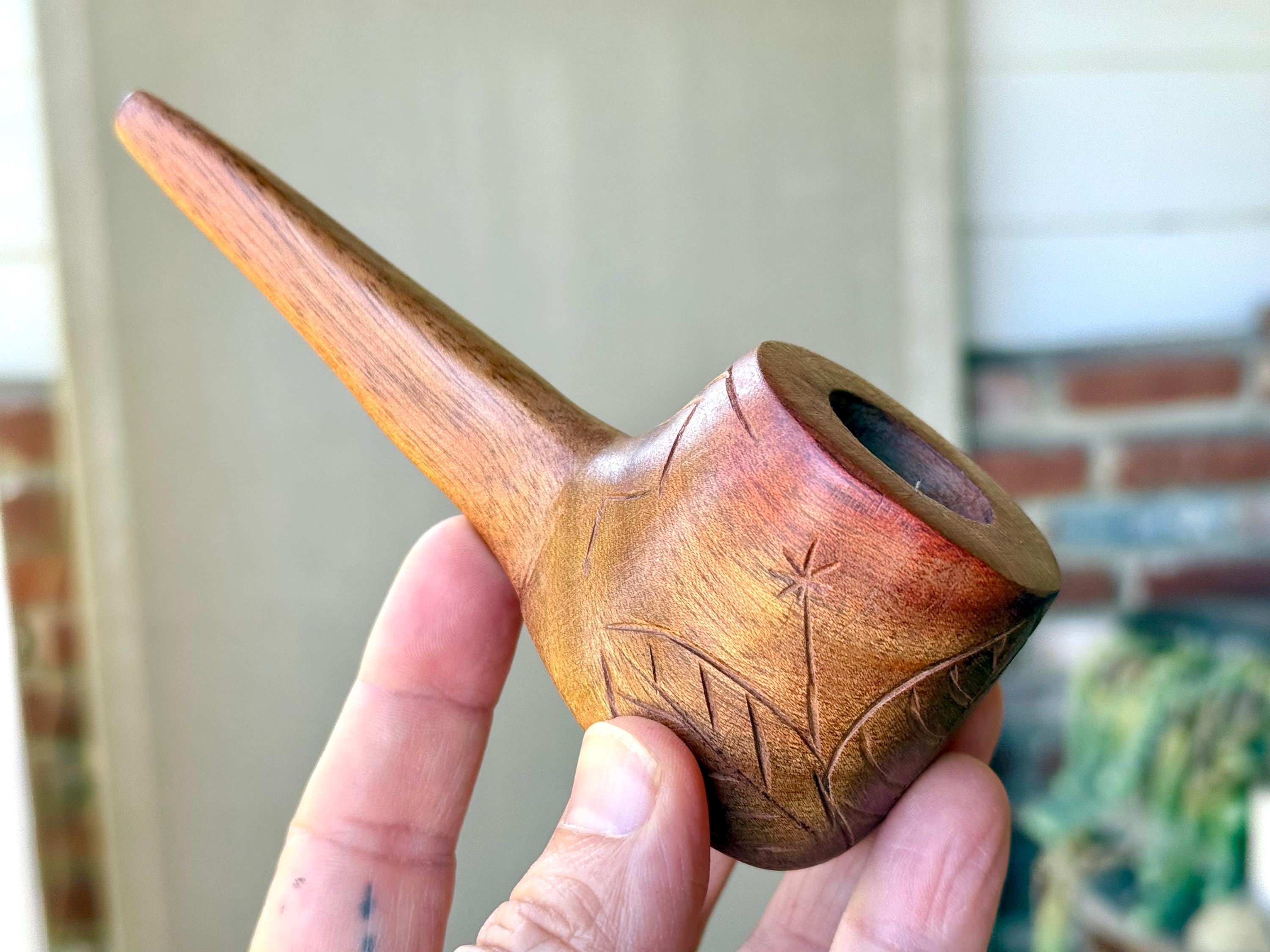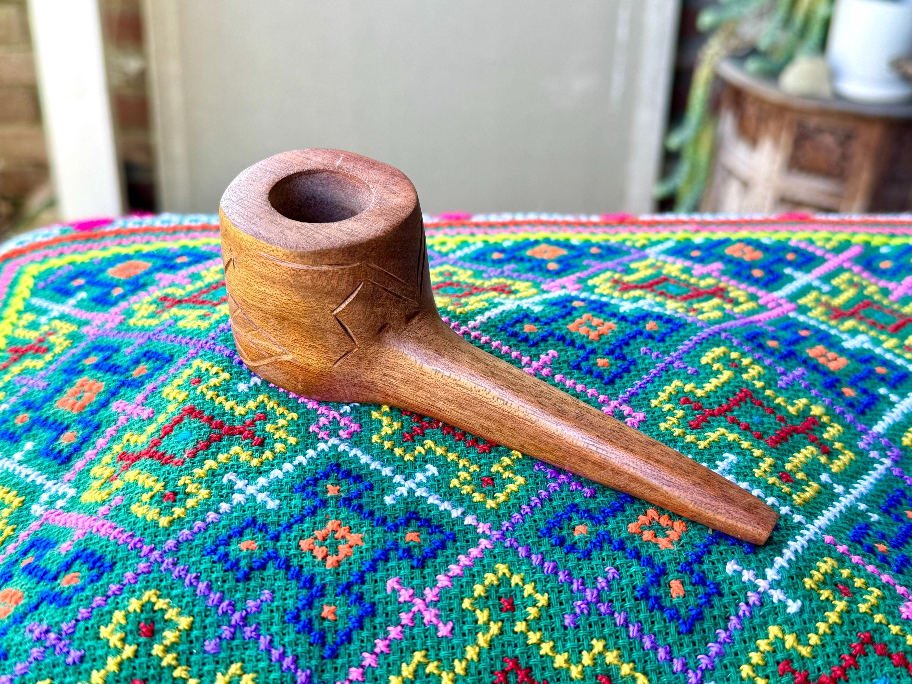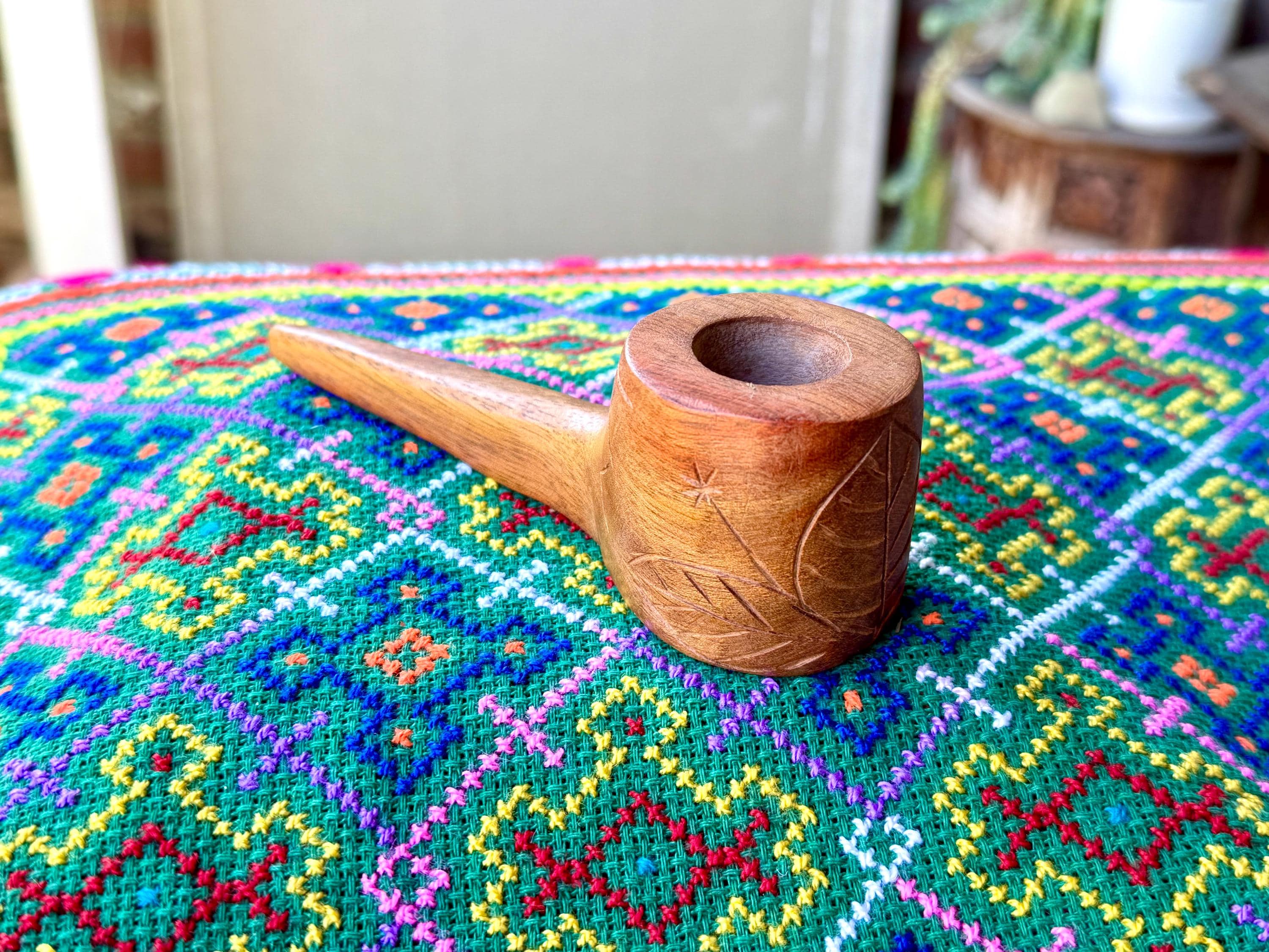 This exquisite, traditional hand-carved pipe for tobacco or mapacho was made by Betson Macawashi, an artisan living and working in Pucallpa, in the Peruvian Amazon.