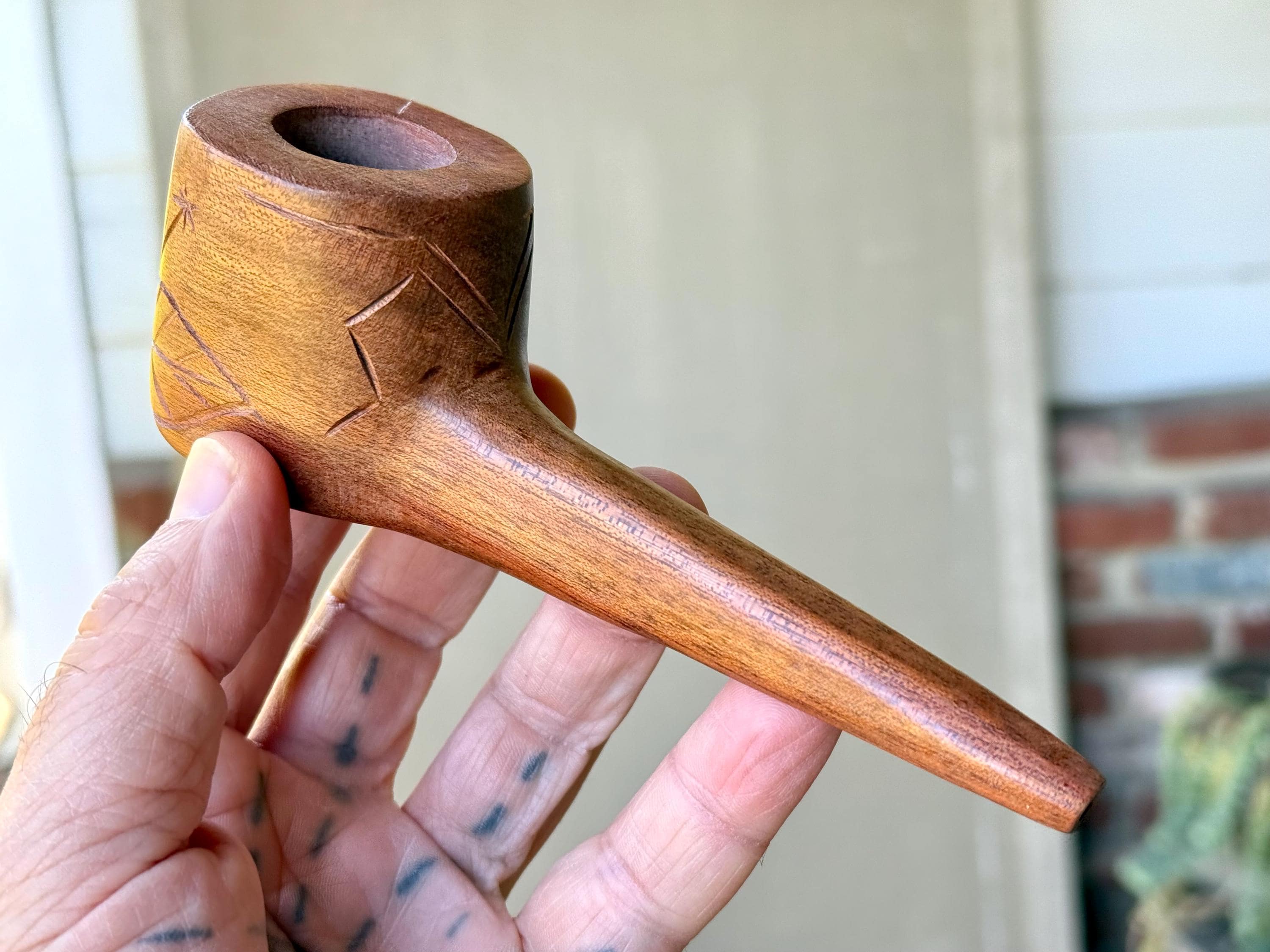 Our favorite style of ceremonial pipe. These basic traditional designs are ideal for use in ceremony, as we can use them with one hand, leaving the other hand free to shake a chakapa, rattle or conduct hands-on healing work.