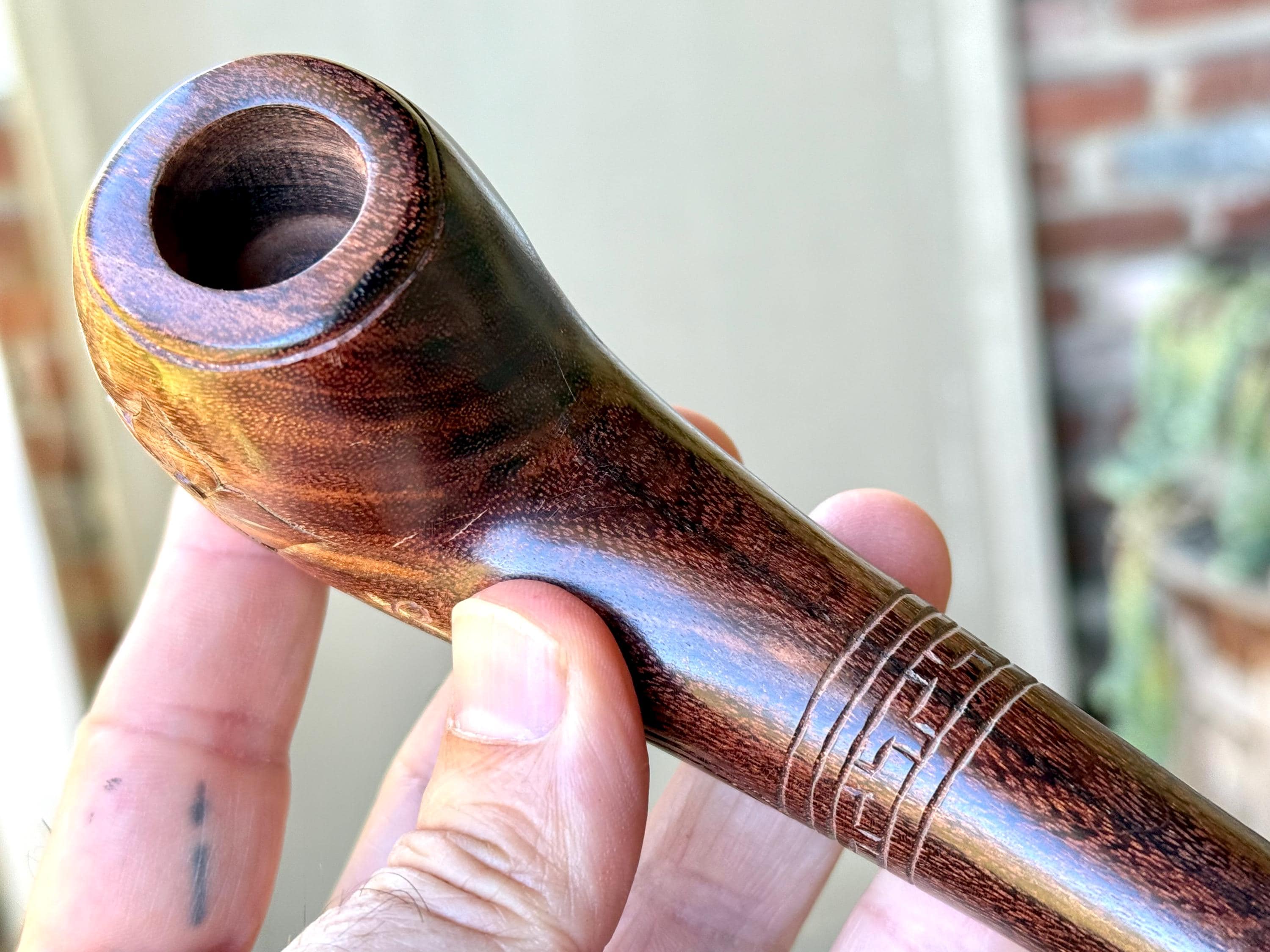 This pipe is handcrafted from dark Tamarind Wood, which is very strong and dense. It is all natural! An outstanding tool for ceremony or energetic healing work.