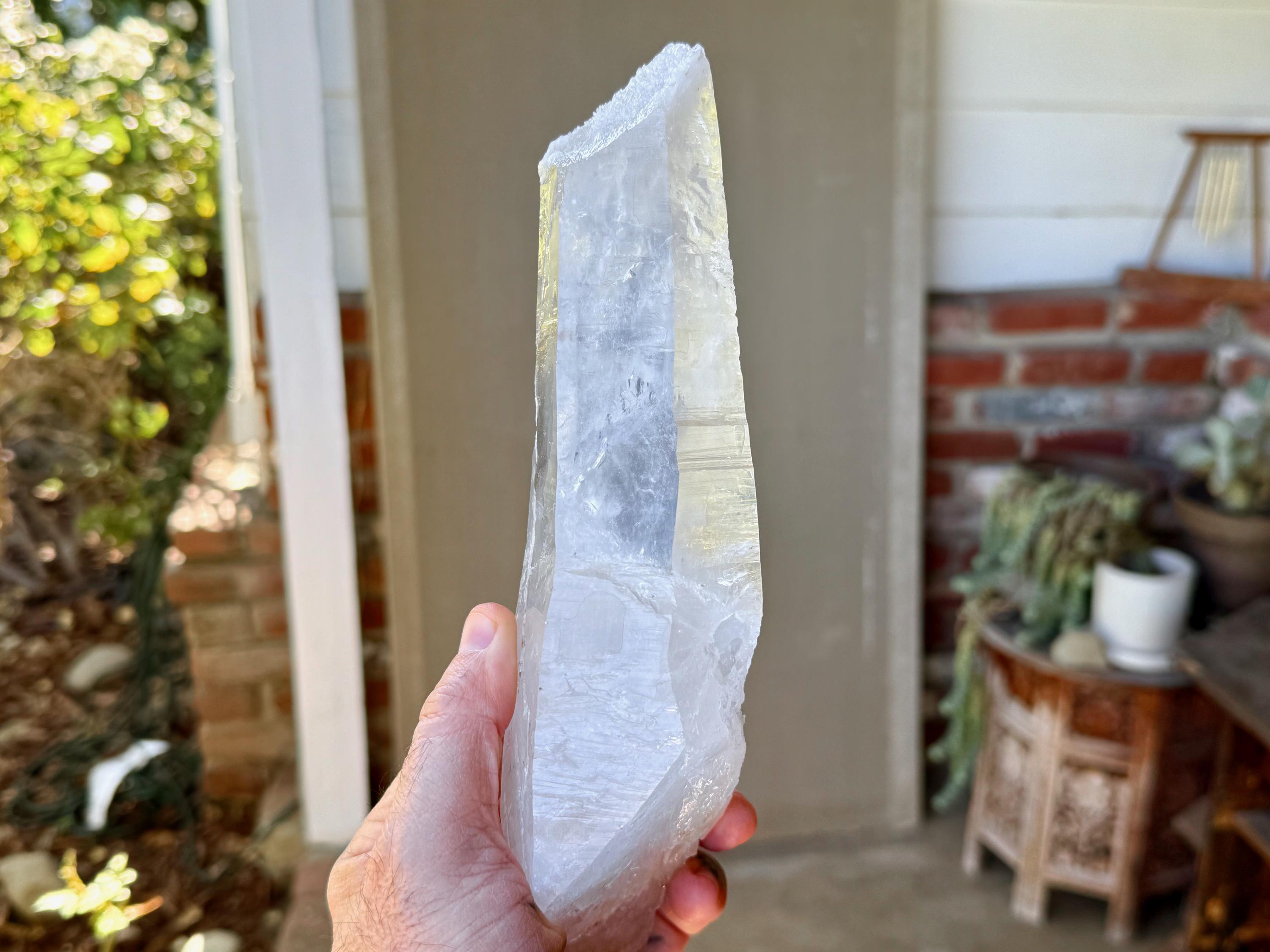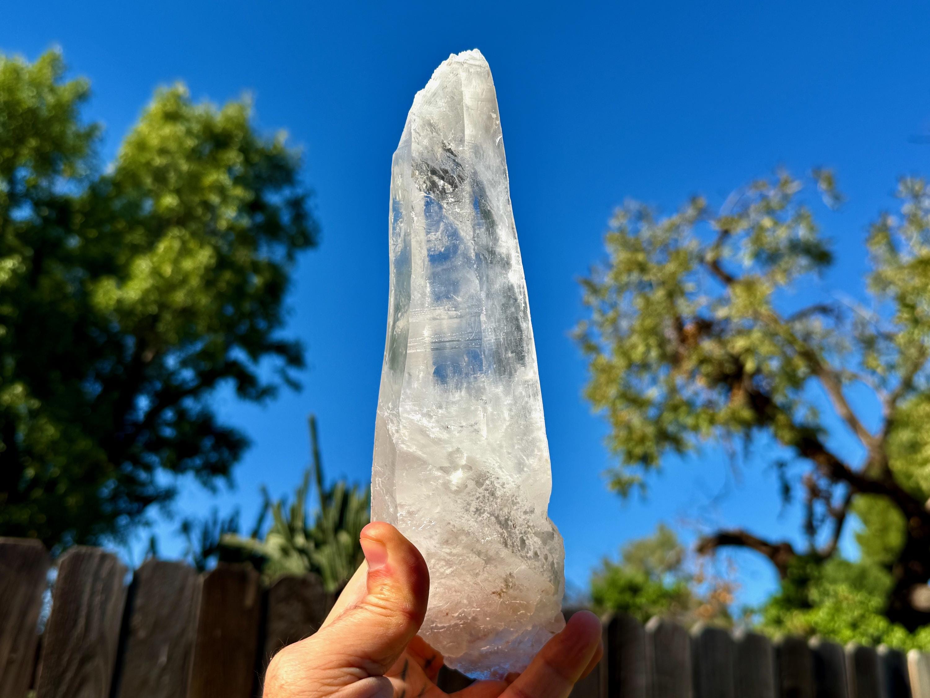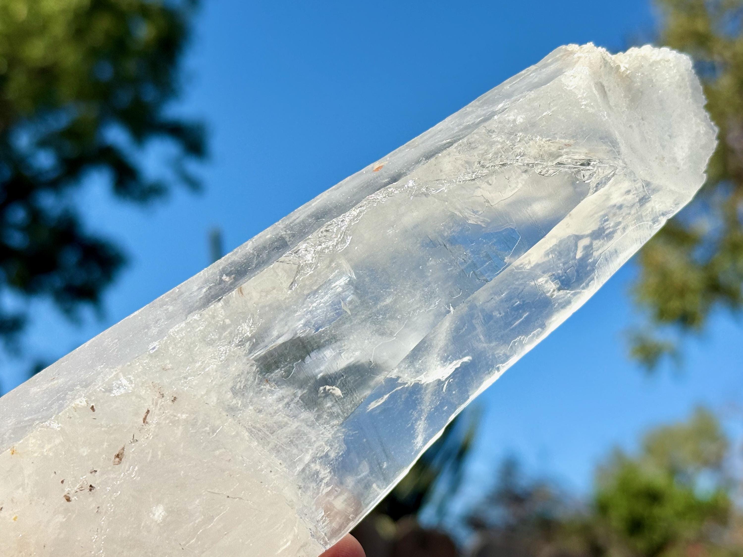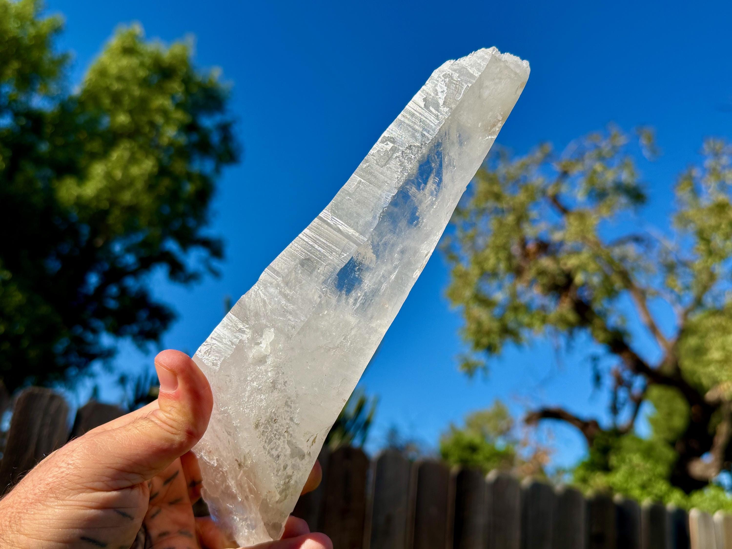 One of the finest, and largest, Lightning Strike crystals we currently have to offer! This Laser Quartz crystal exhibits marvelous clarity, superb luster and the elongated and slightly tapered formation that we love to see in these crystals. This crystal also features some Lemurian striations on its right side, making this a bit of a Laser/Lemurian hybrid.