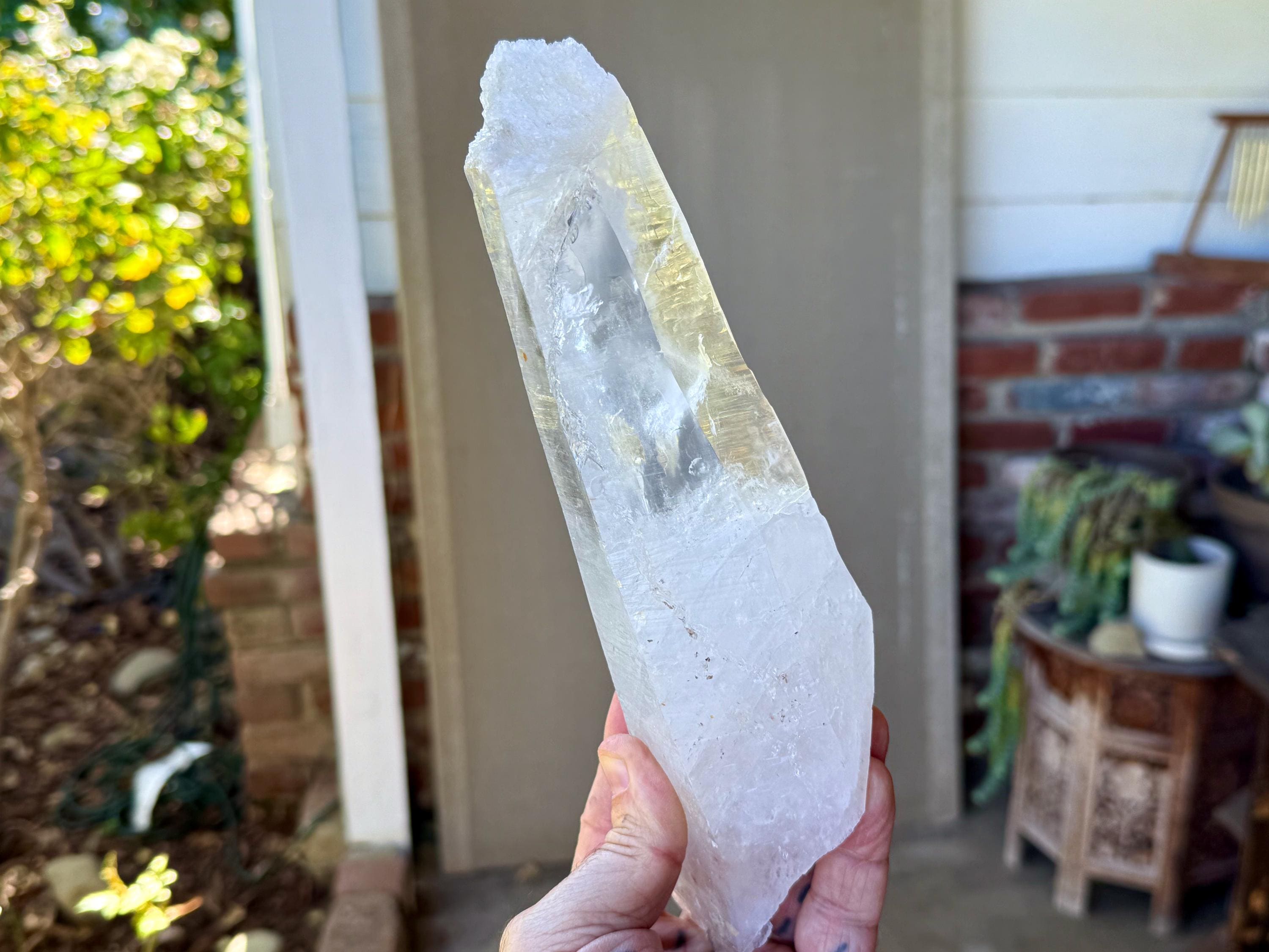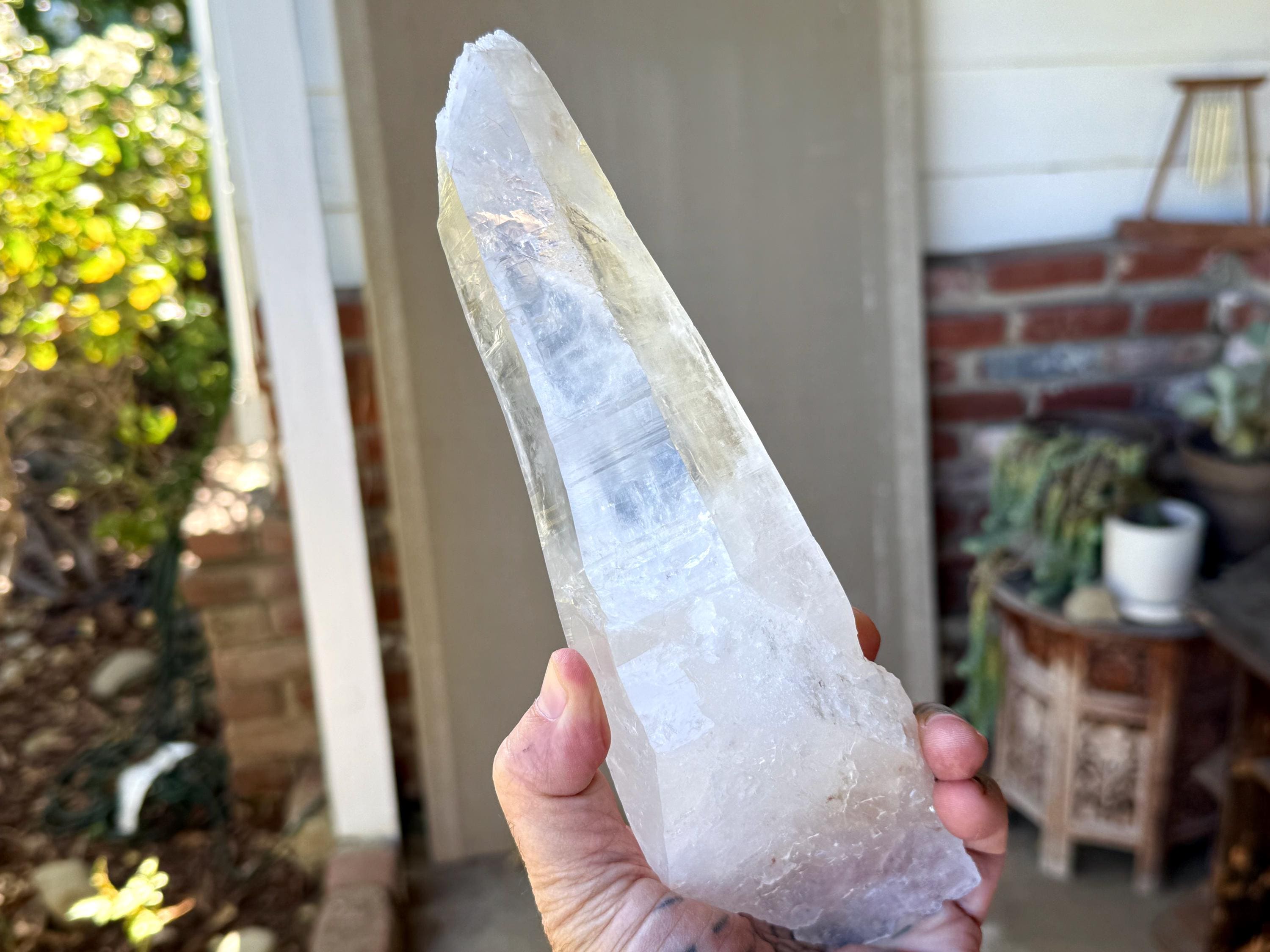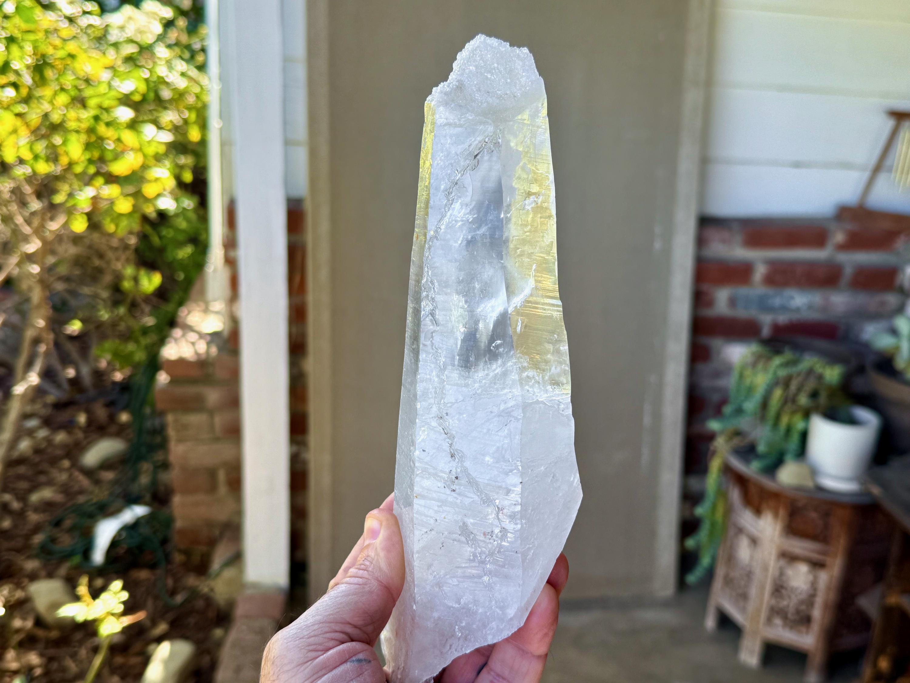 One of the finest, and largest, Lightning Strike crystals we currently have to offer! This Laser Quartz crystal exhibits marvelous clarity, superb luster and the elongated and slightly tapered formation that we love to see in these crystals. This crystal also features some Lemurian striations on its right side, making this a bit of a Laser/Lemurian hybrid.