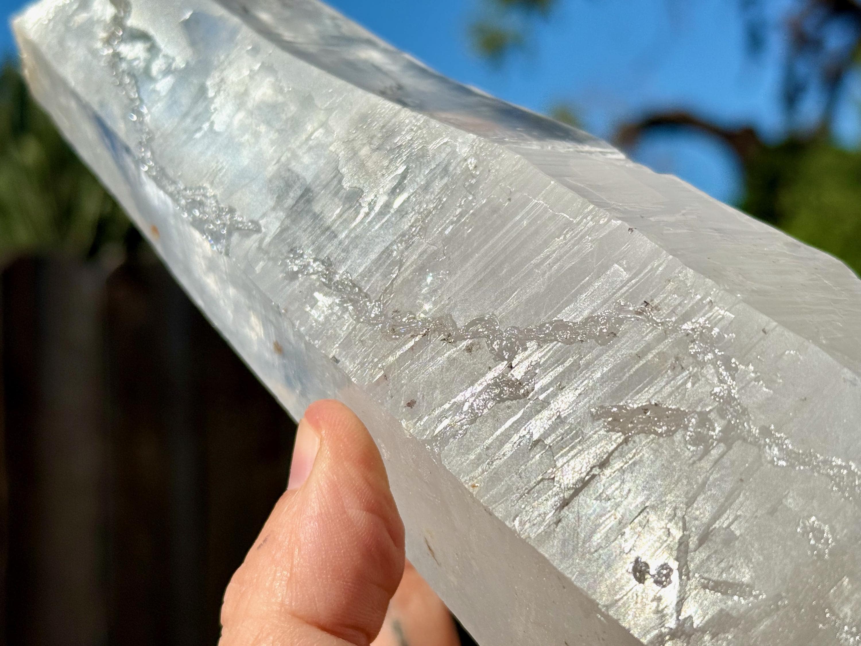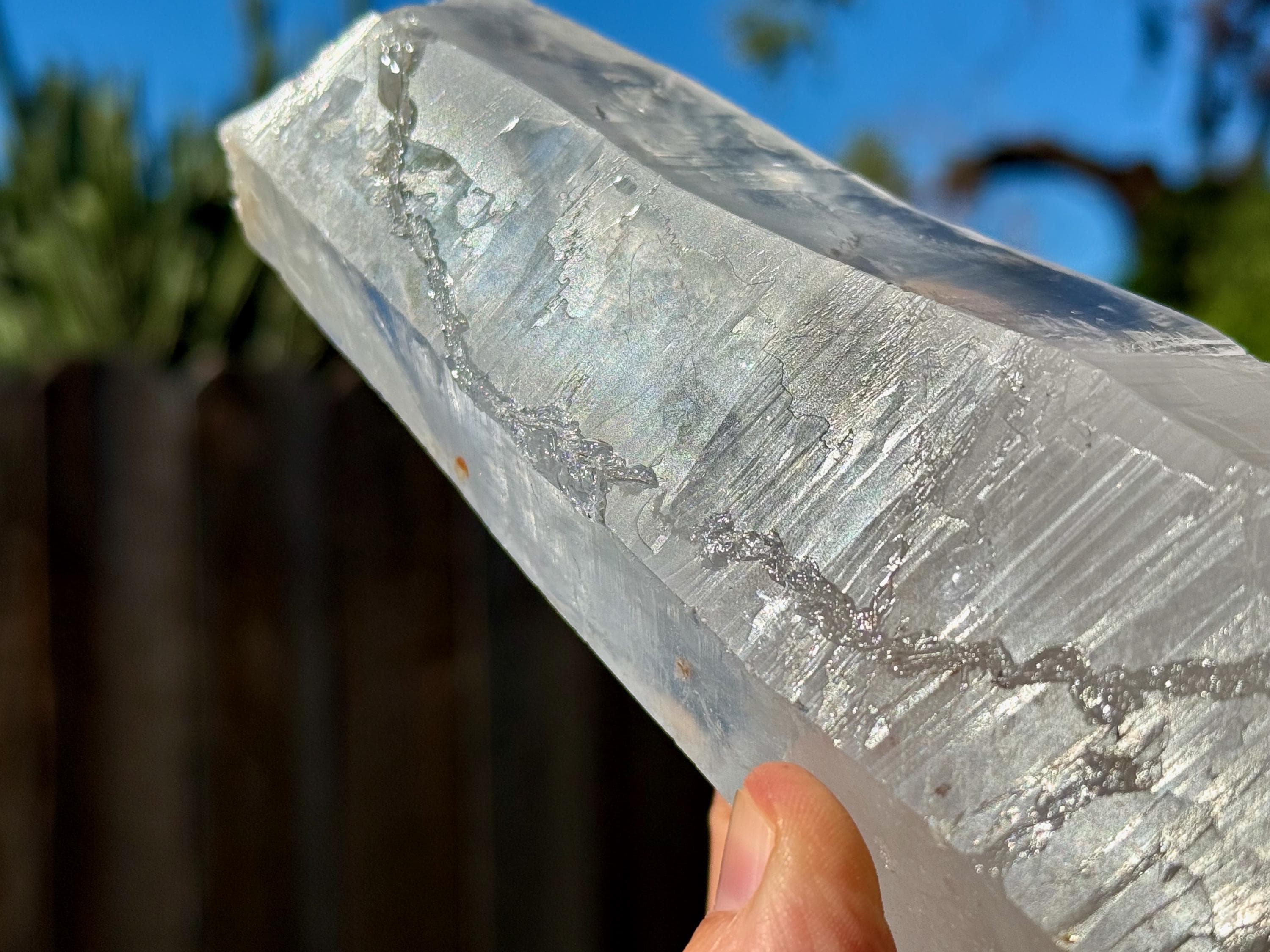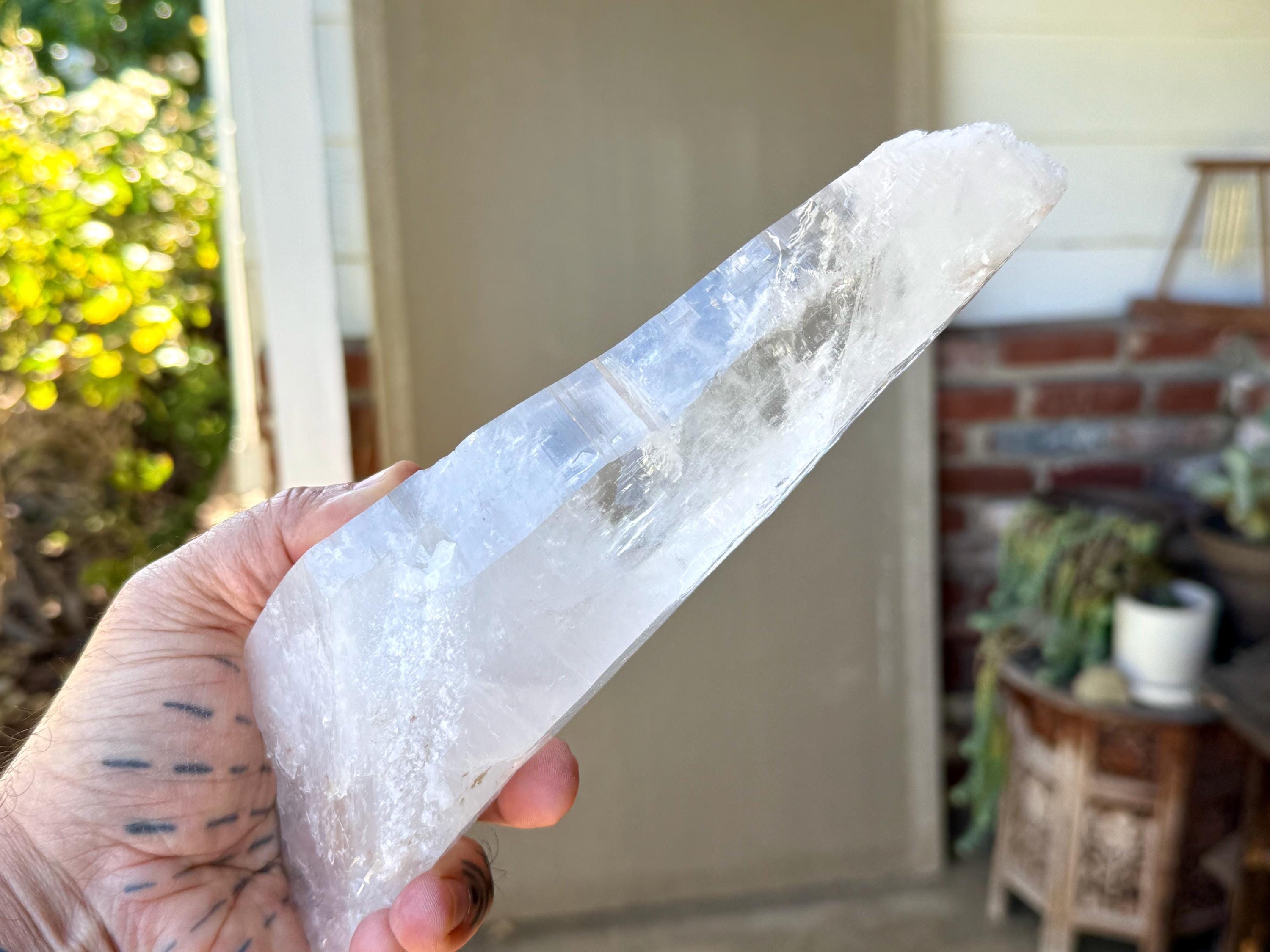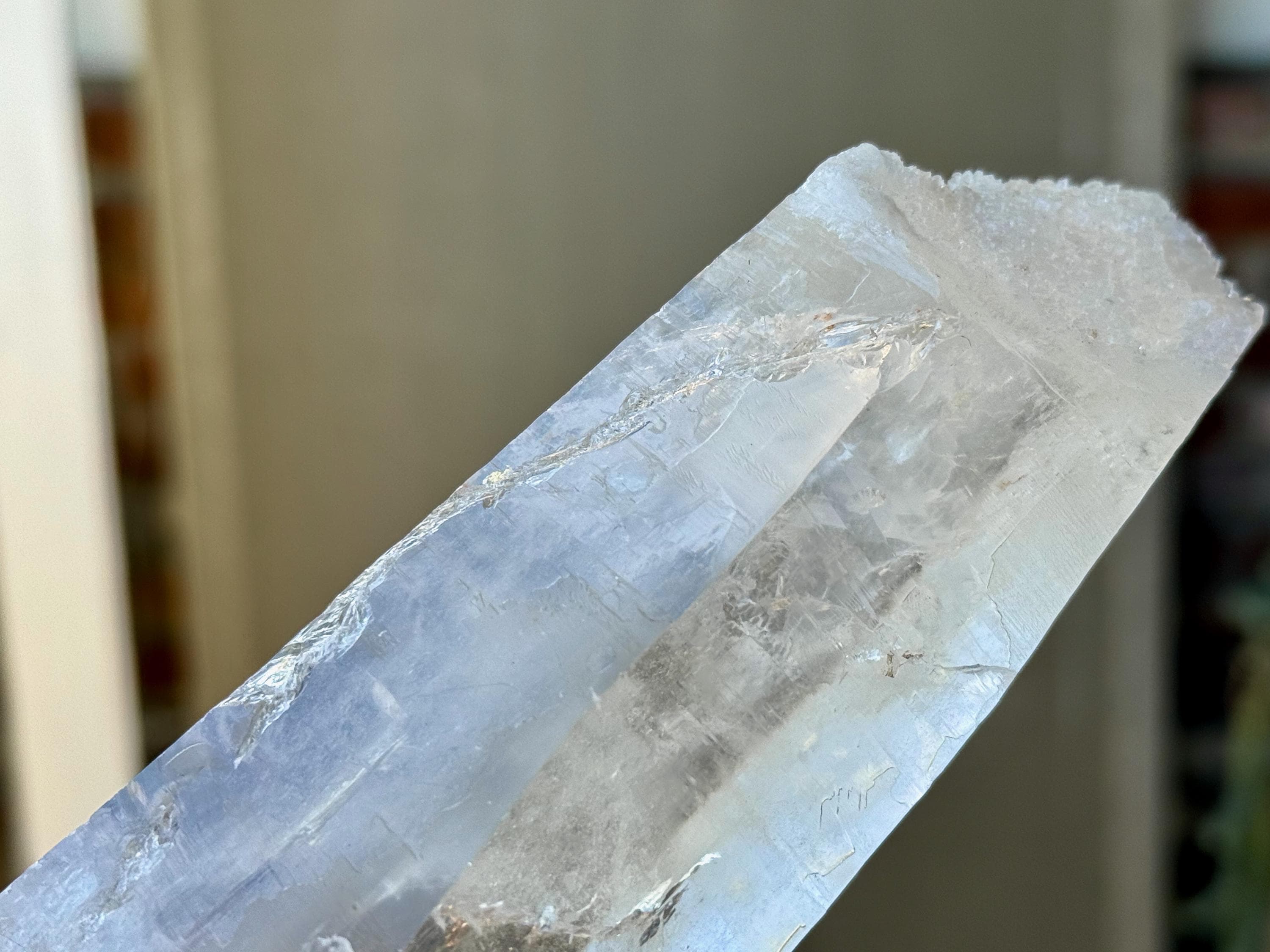 One of the finest, and largest, Lightning Strike crystals we currently have to offer! This Laser Quartz crystal exhibits marvelous clarity, superb luster and the elongated and slightly tapered formation that we love to see in these crystals. This crystal also features some Lemurian striations on its right side, making this a bit of a Laser/Lemurian hybrid.