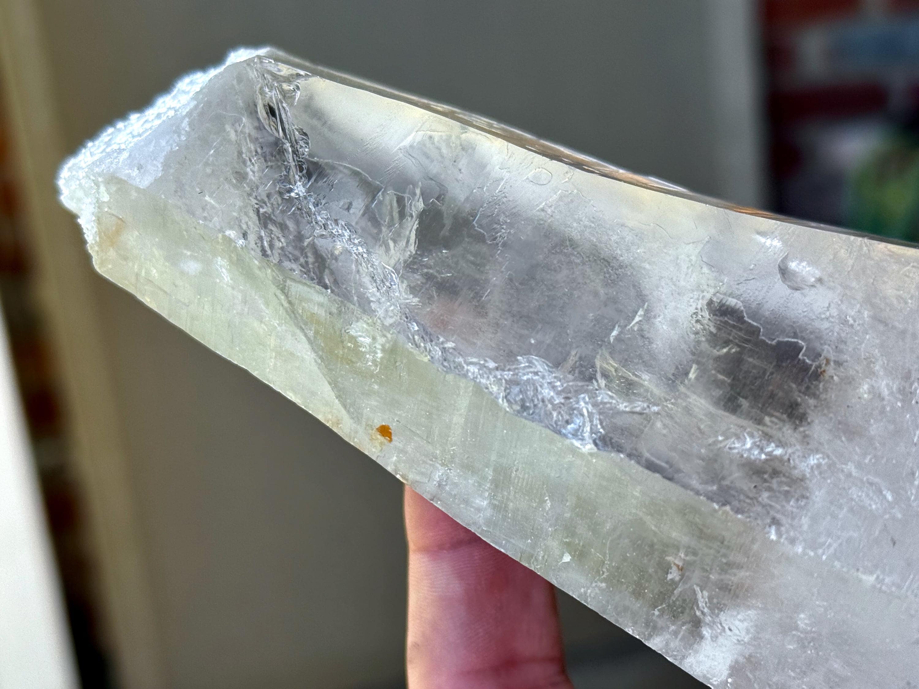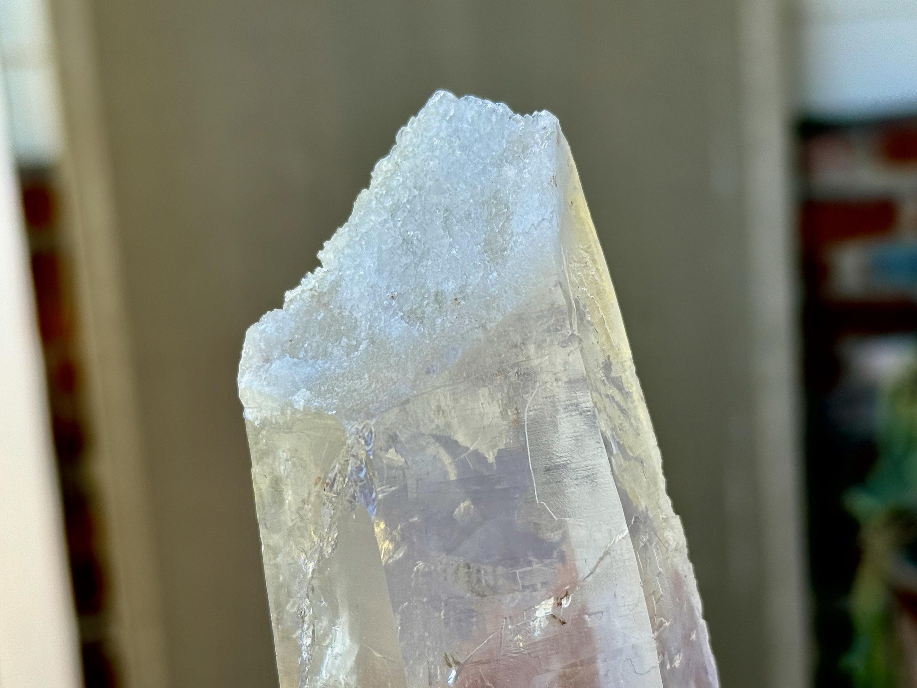 In this piece, the strength of the strike blew the top portion clear off! However, when we look closely, we can see that this top portion has self-healed (Photo 12), indicating that this strike happened millions of years ago! We were delighted to find that the base is also self-healed, effectively making this a Double Terminated (healed) crystal (Photo 13).