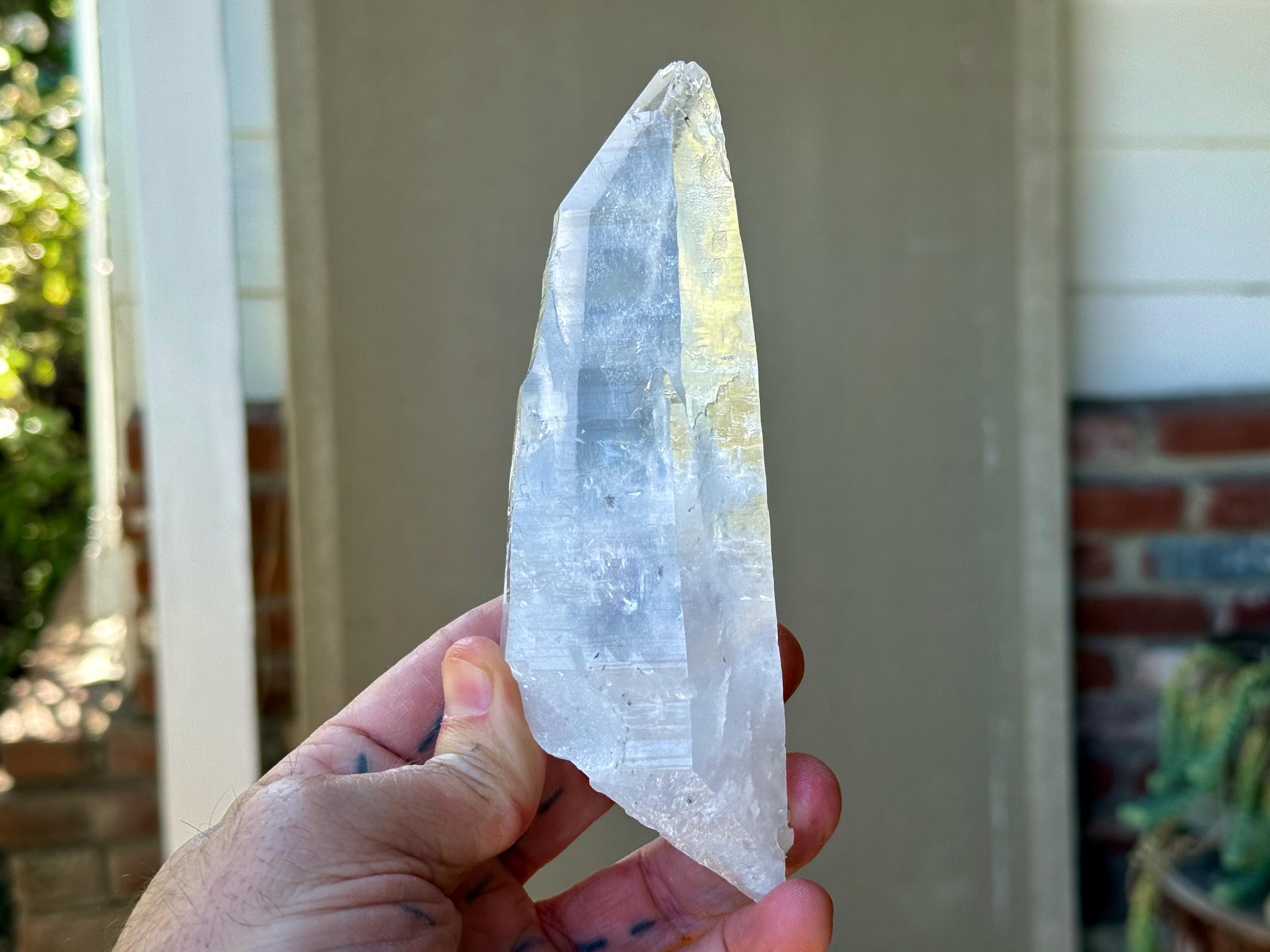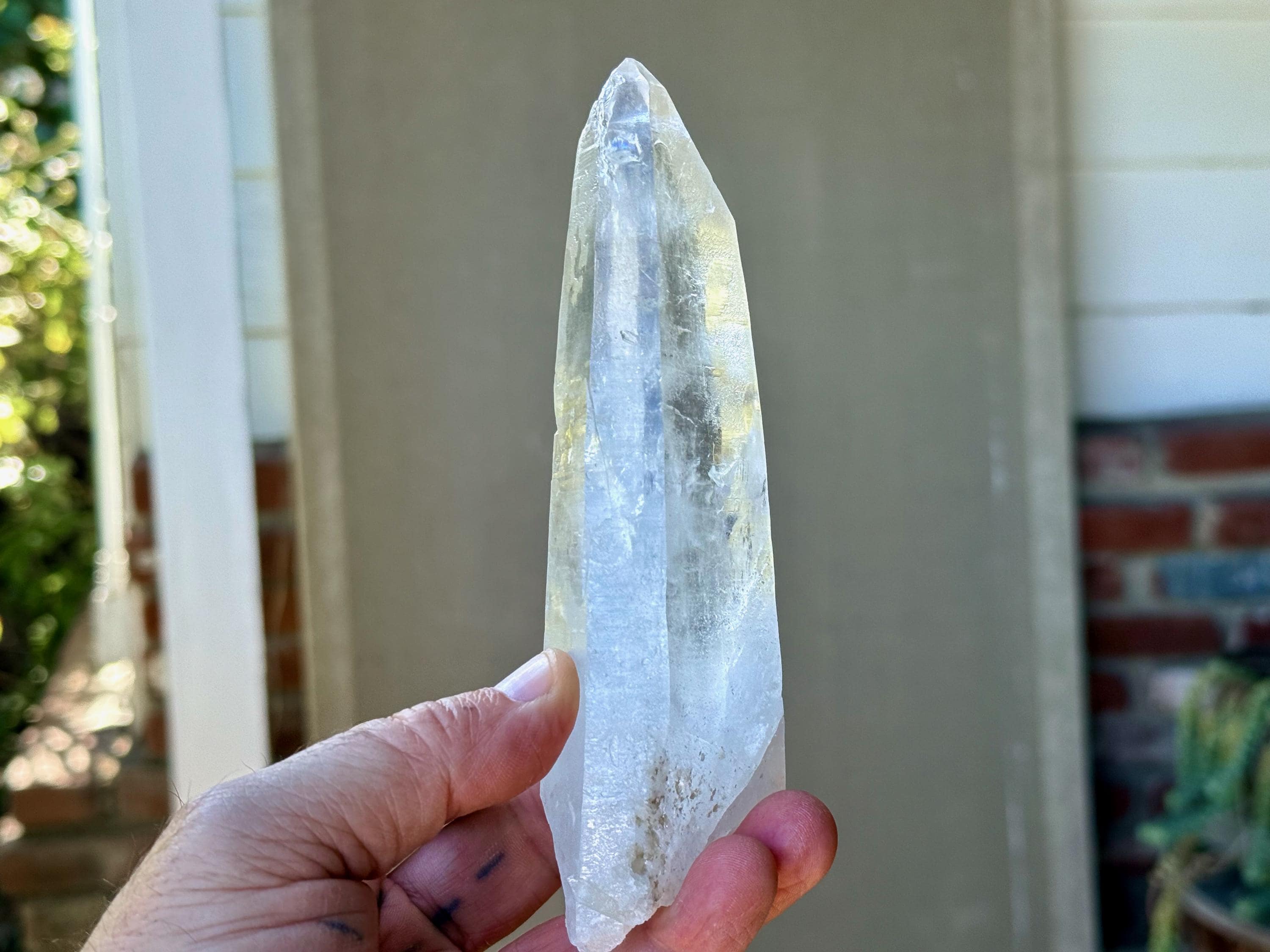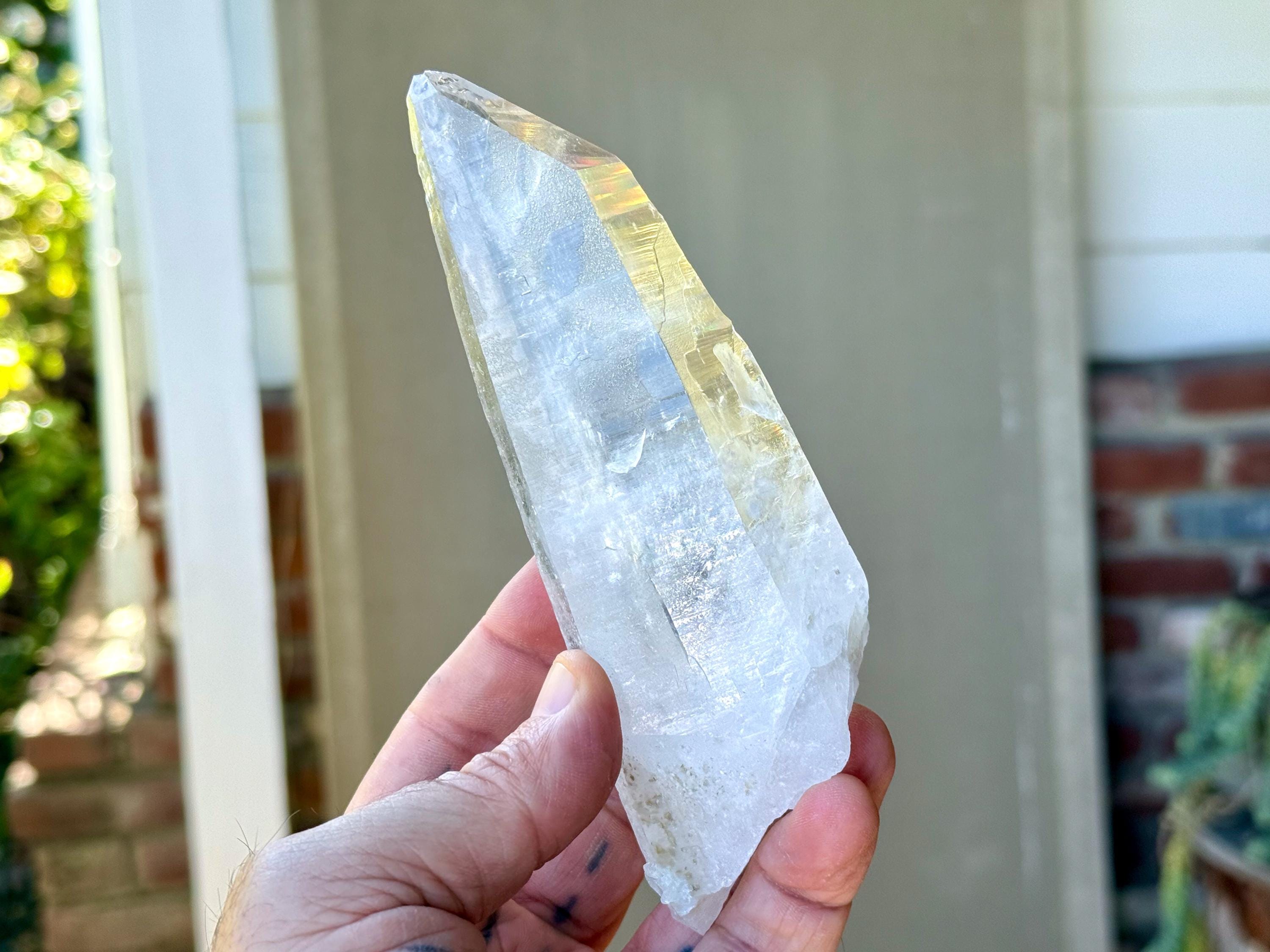 This crystal bears distinctive marks that indicate the quartz was struck by lightning while still underground in the Earth. These crystals have a palpable "electric" energy (personally, my heart races when I handle them) and are prized by healers for their unique qualities, as they have an enhanced ability to receive, amplify and transmit "prana" or "chi" energy, also known as our Universal Life Force.