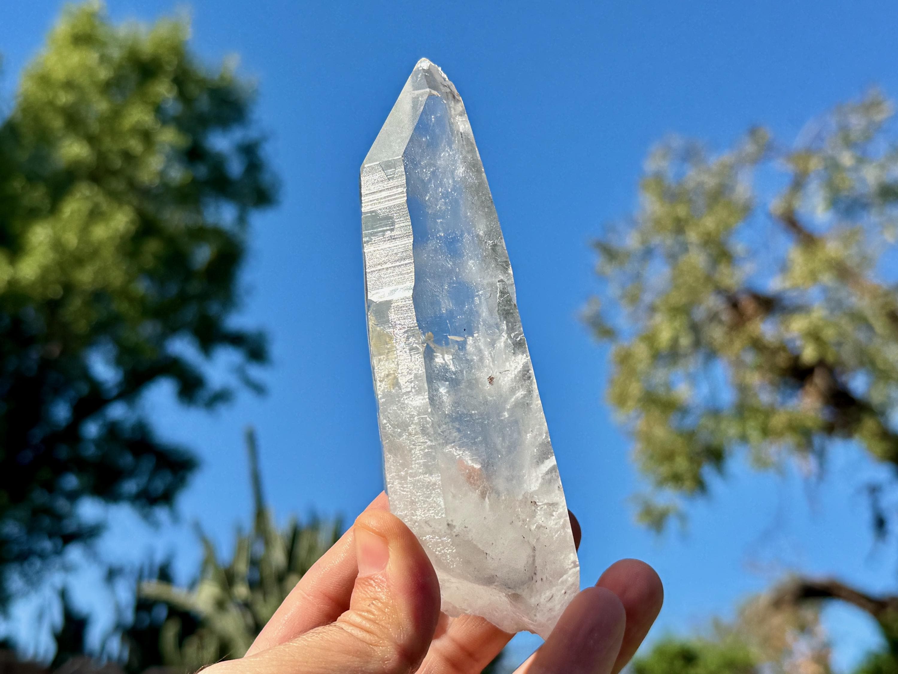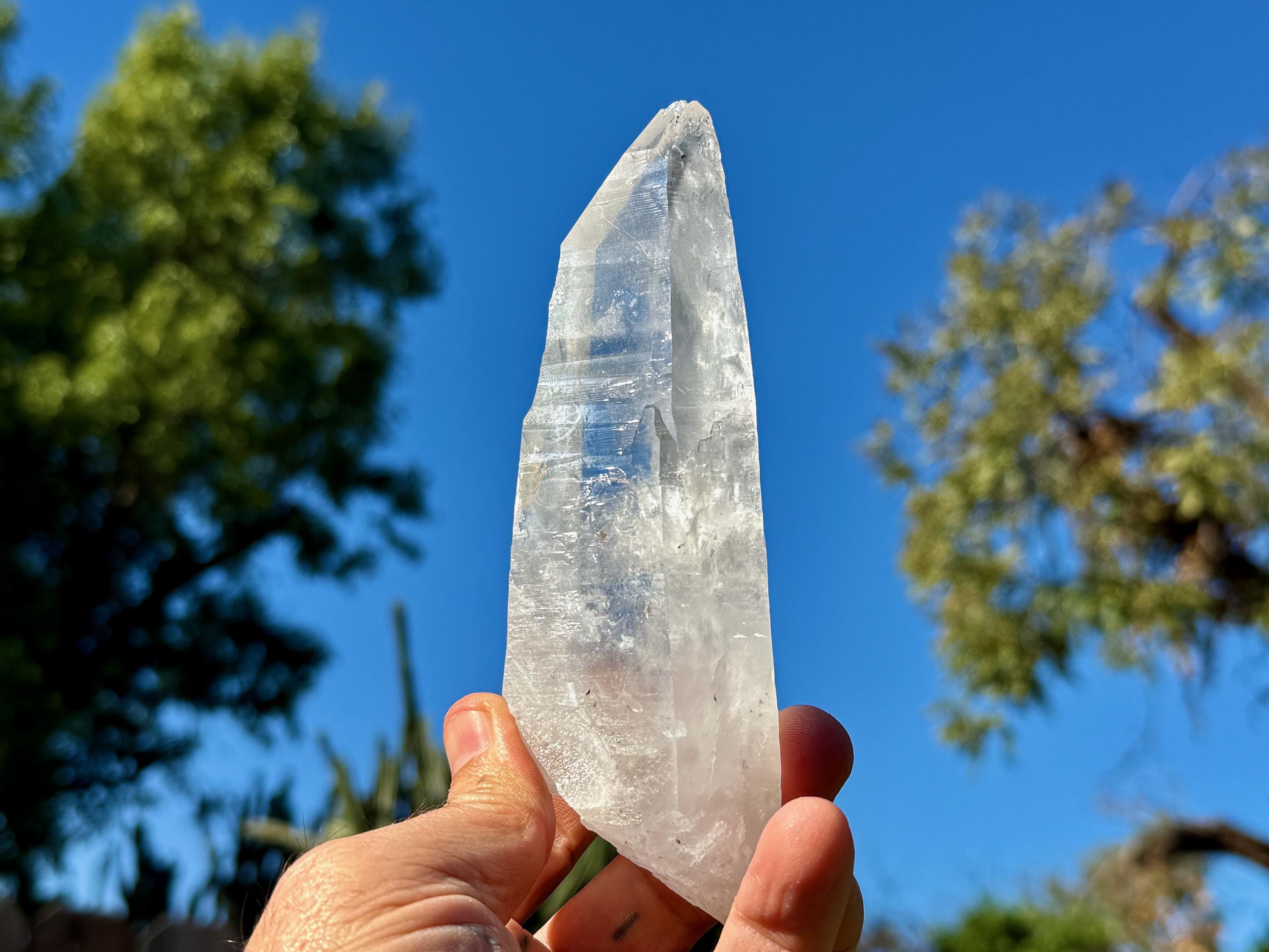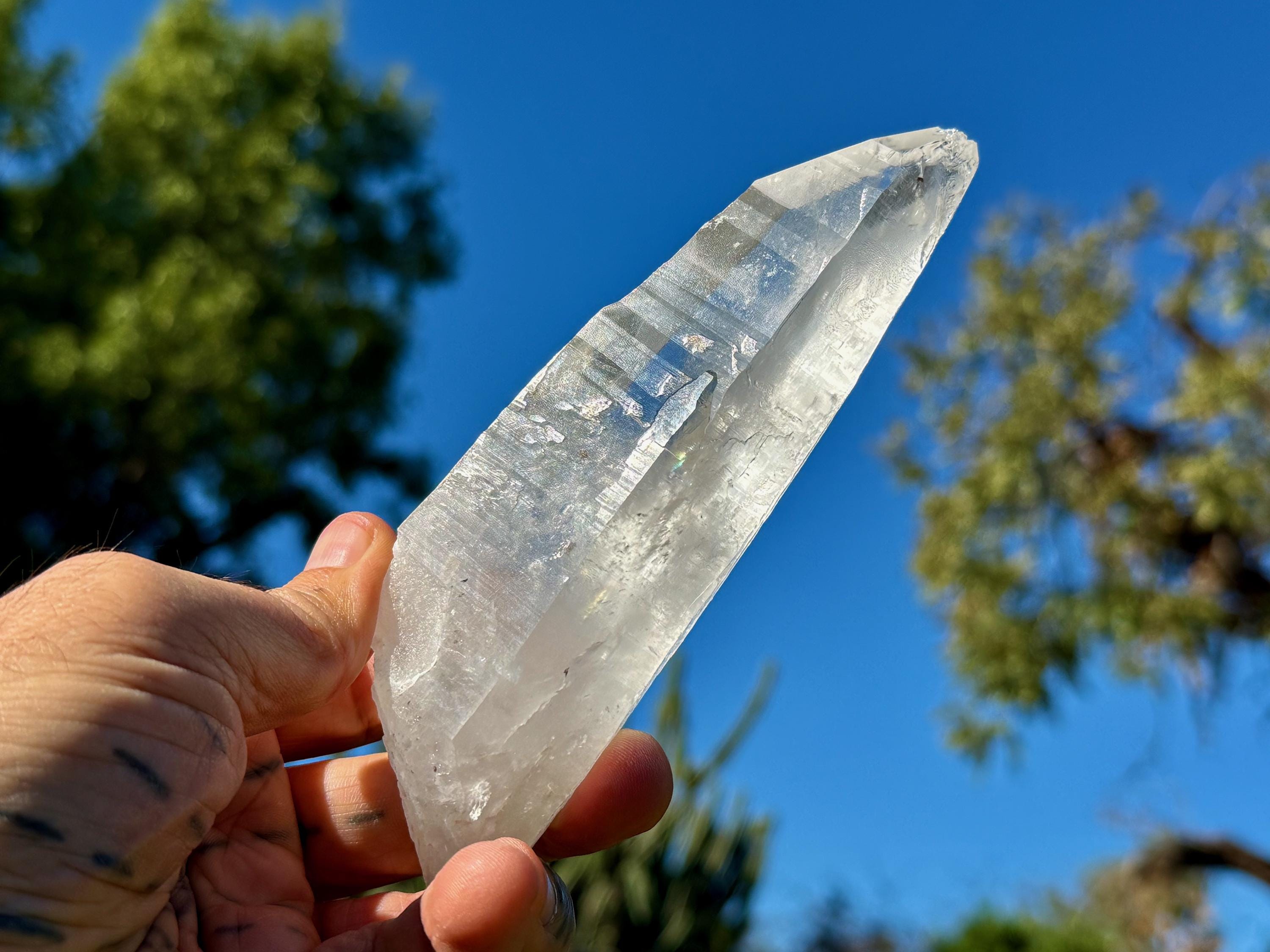 Exquisite beauty to this Lightning Strike Laser Quartz crystal with superb clarity, brilliant luster and an elongated formation. This crystal also features Lemurian striations on its sides, making this a bit of a Laser/Lemurian hybrid.