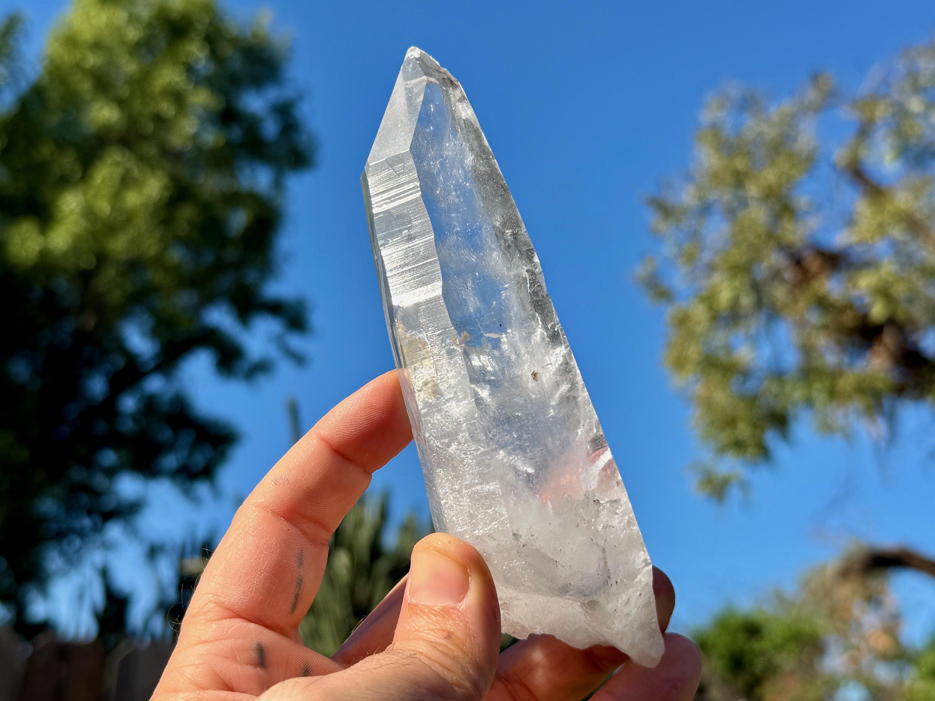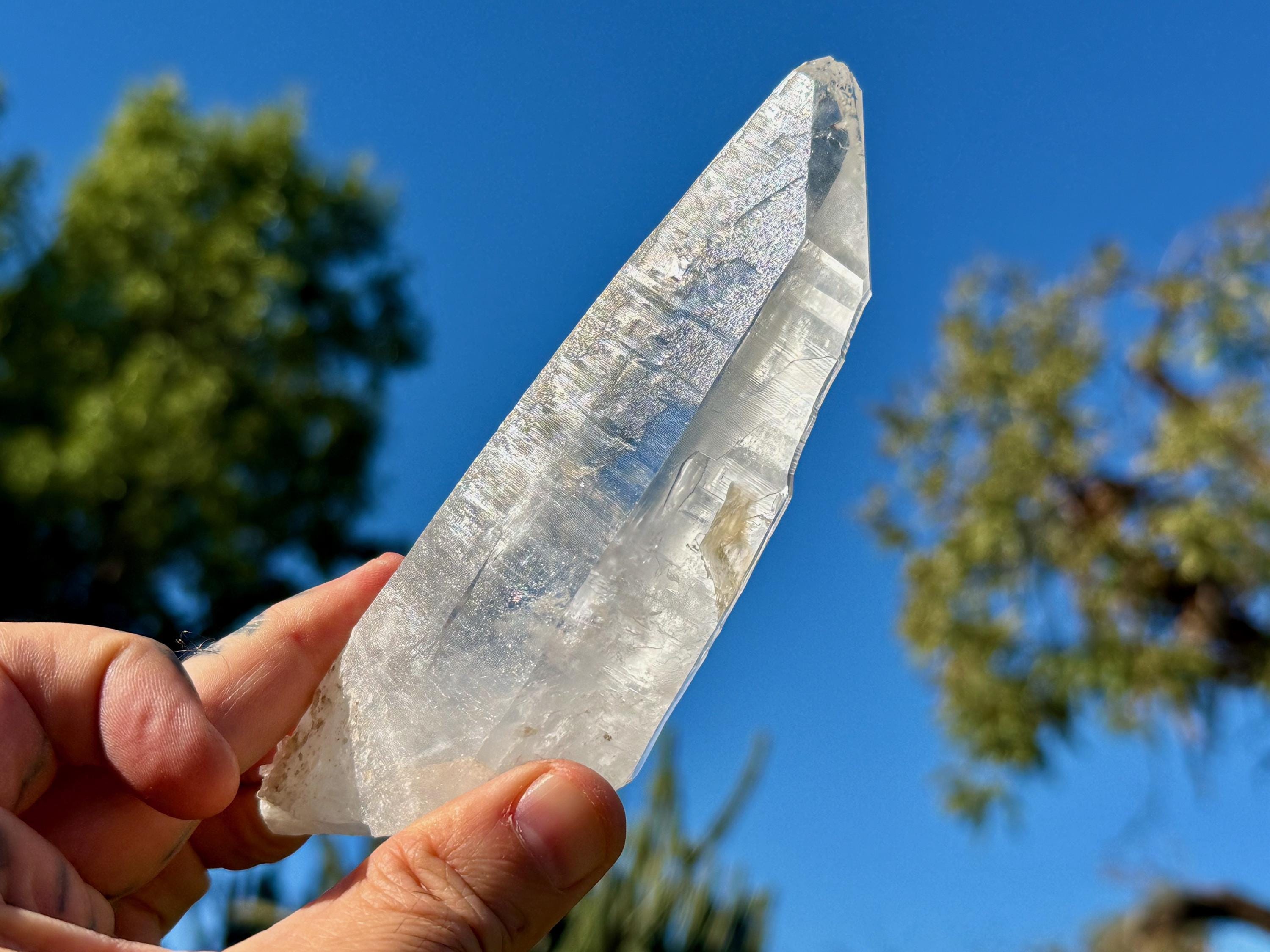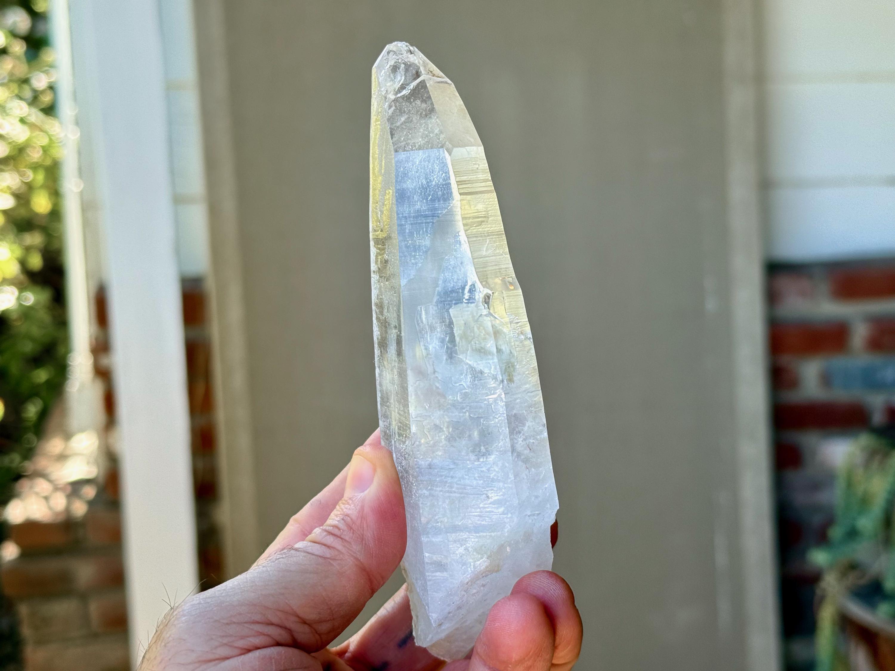 Exquisite beauty to this Lightning Strike Laser Quartz crystal with superb clarity, brilliant luster and an elongated formation. This crystal also features Lemurian striations on its sides, making this a bit of a Laser/Lemurian hybrid.