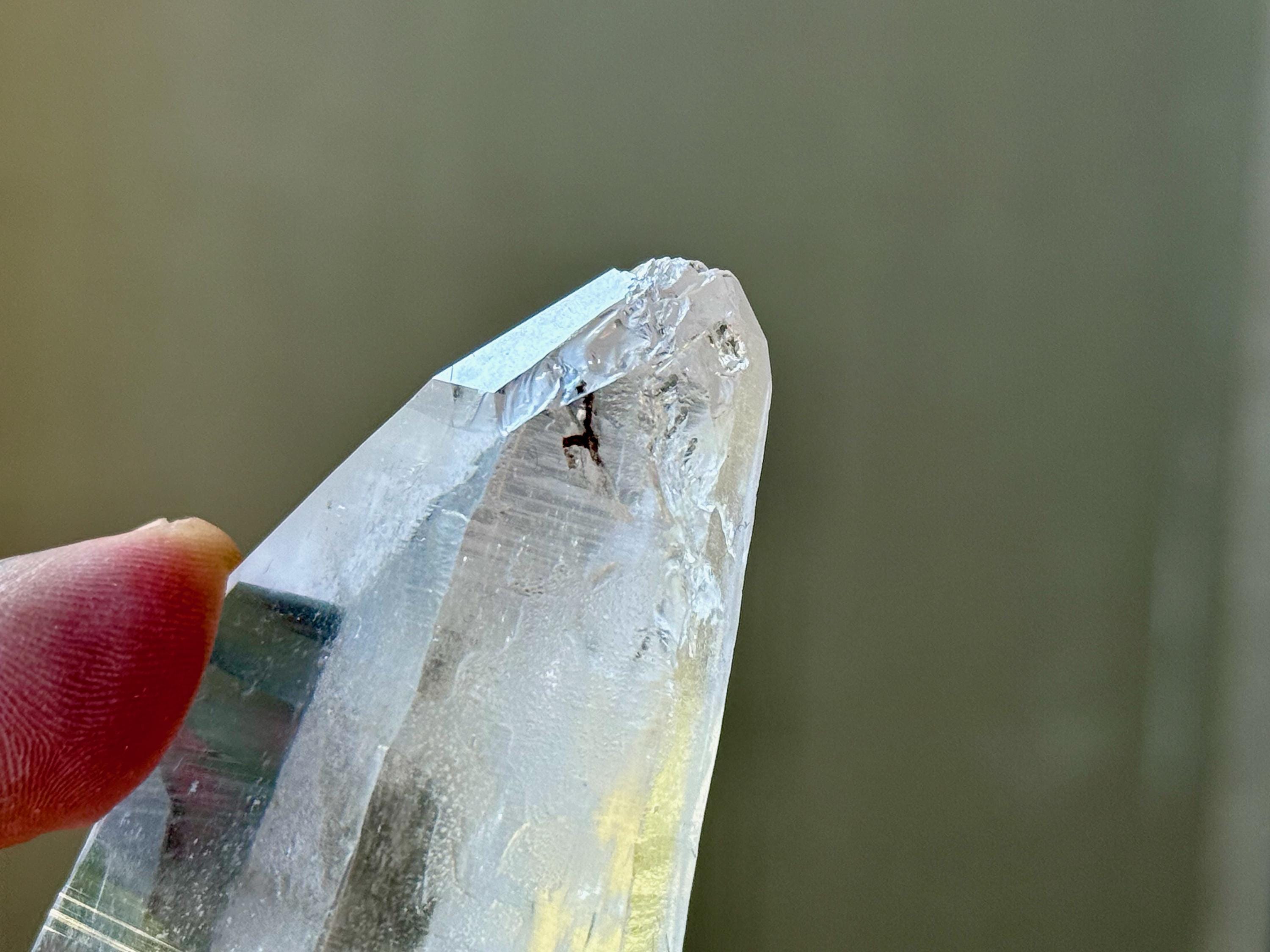 Despite the strength of the strike, this crystal managed to stay entirely intact with an excellent termination. Outstanding quality to this one.