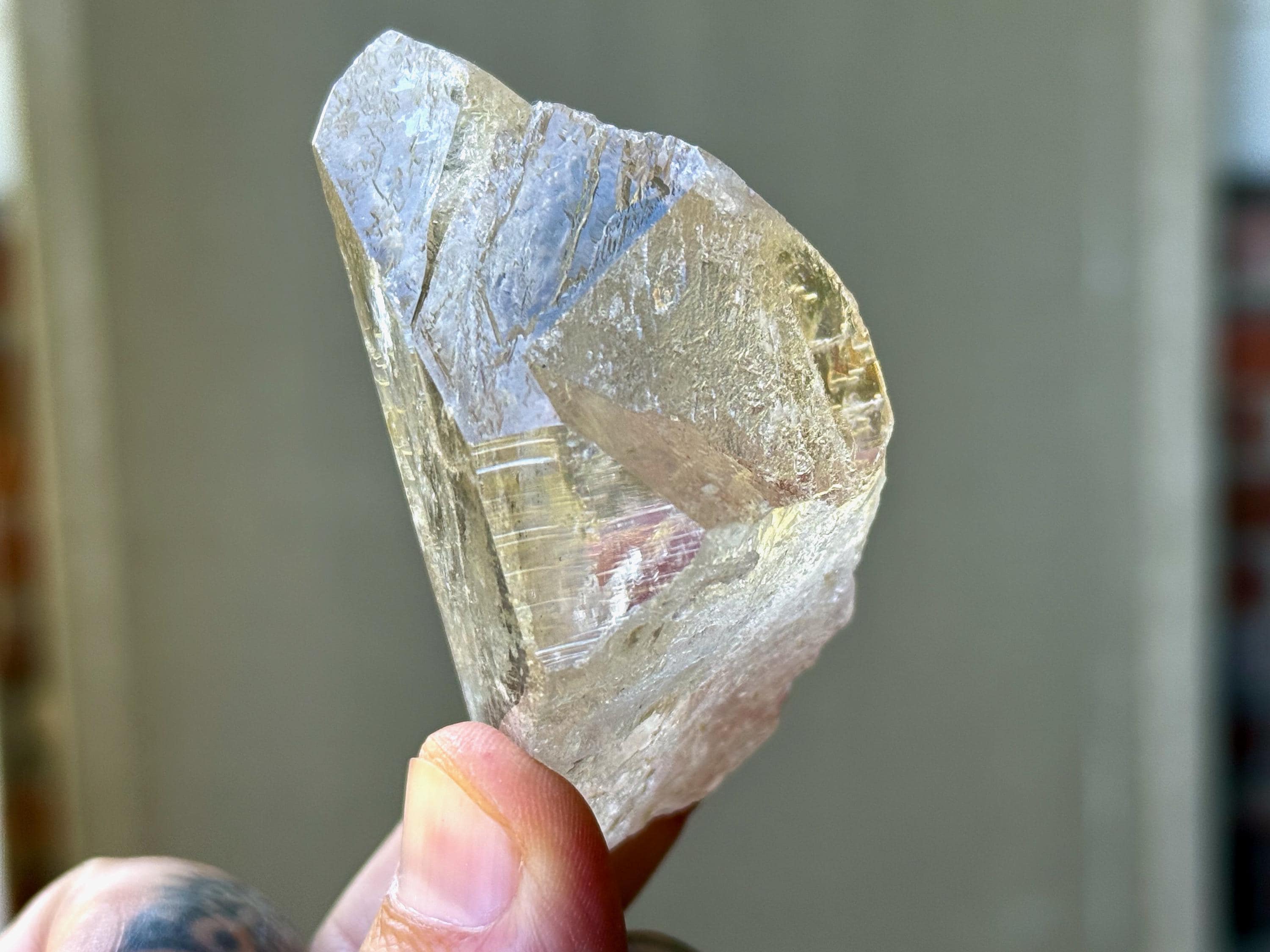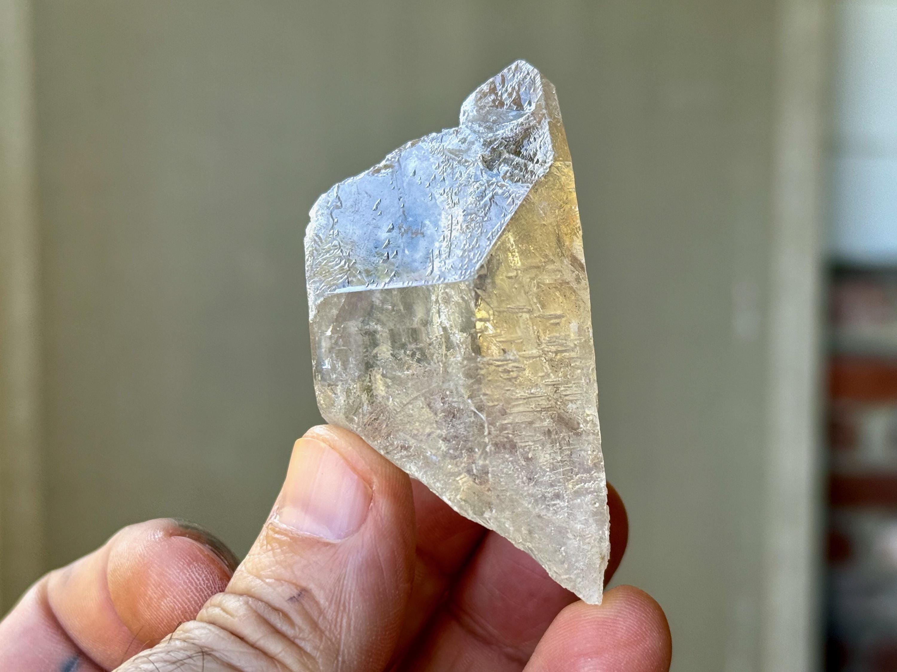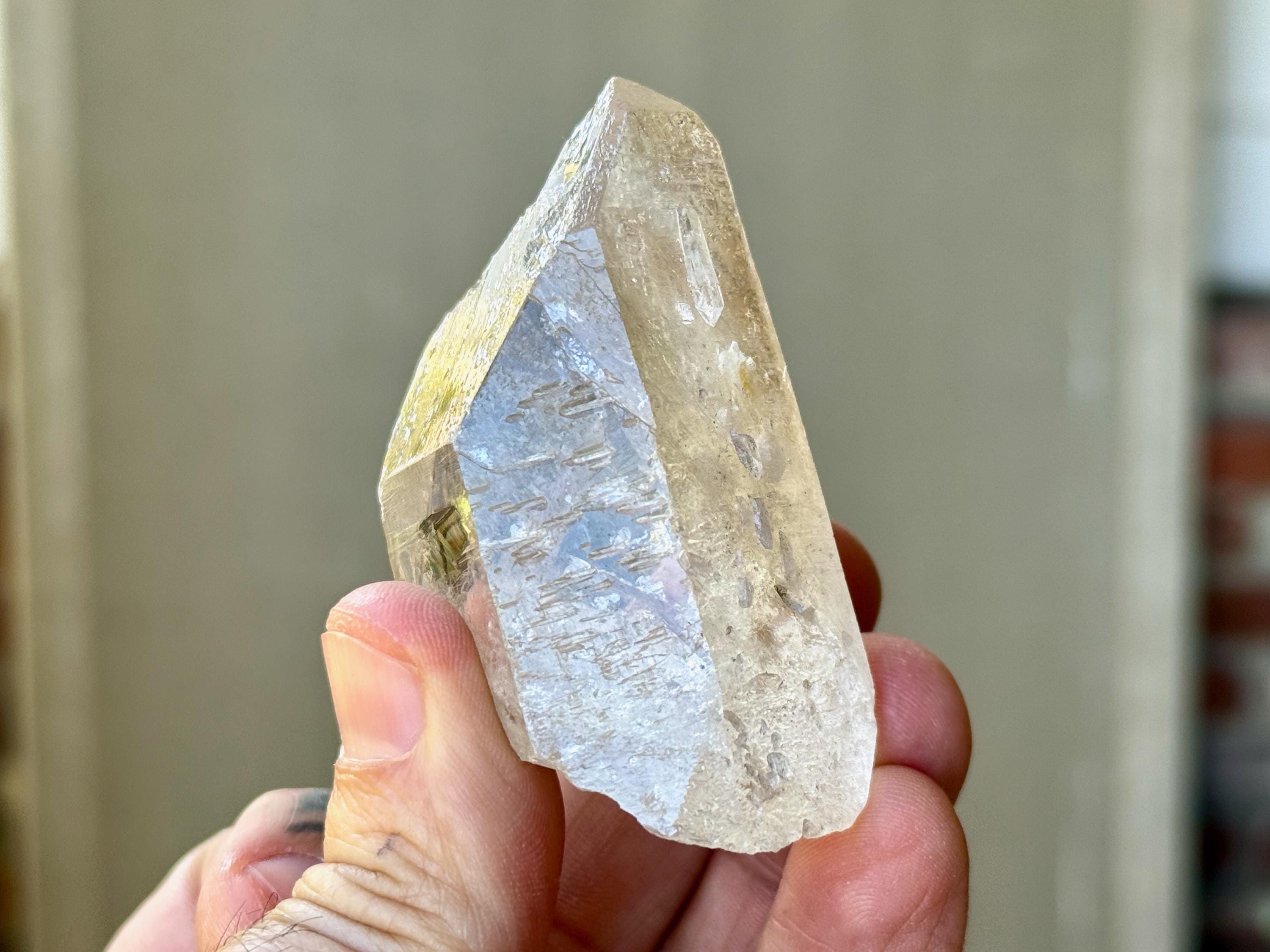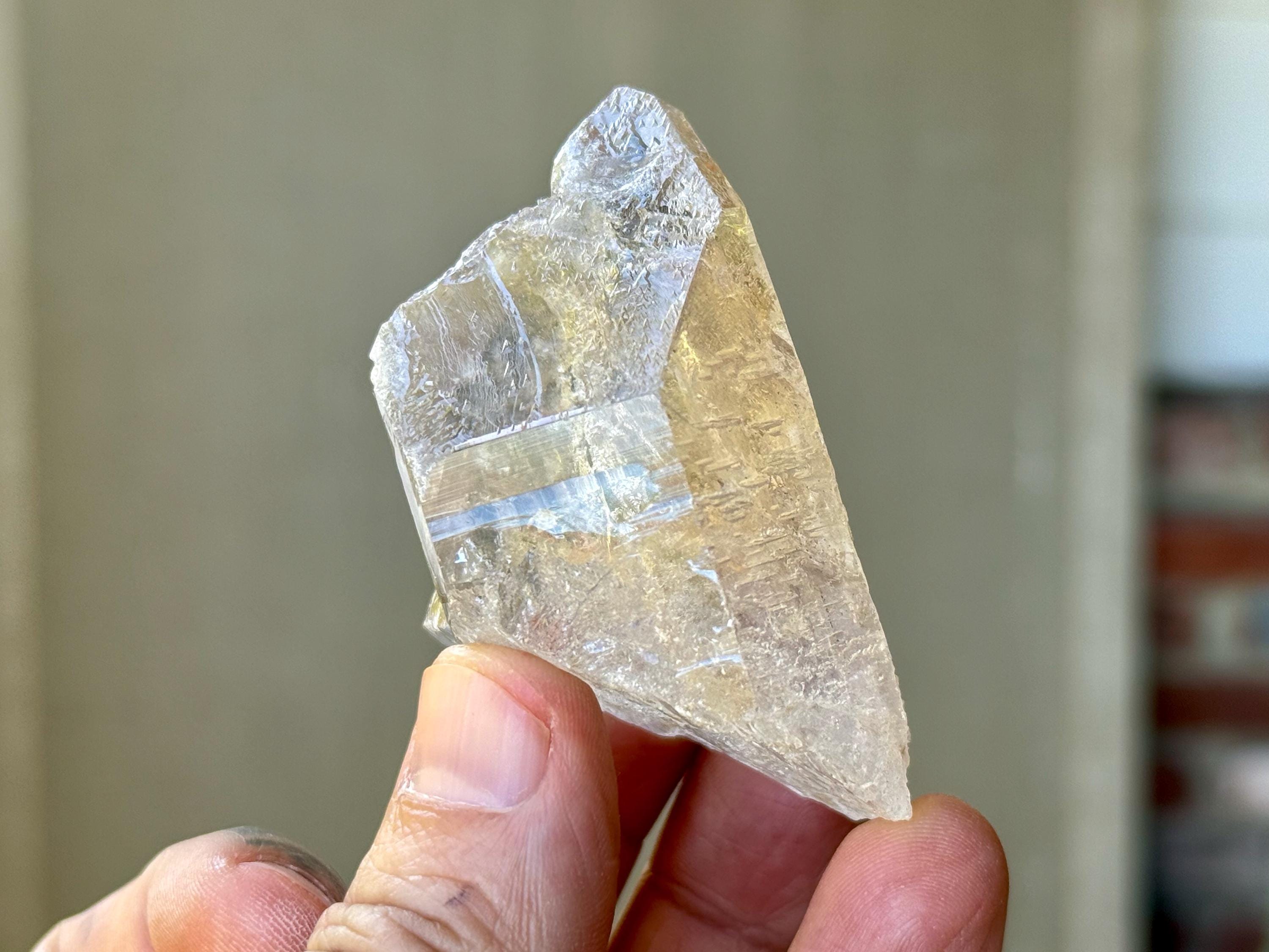 *Please note this crystal is mostly clear and colorless and that the yellow seen in the photos is due to the natural sunlight reflecting off the crystal itself.