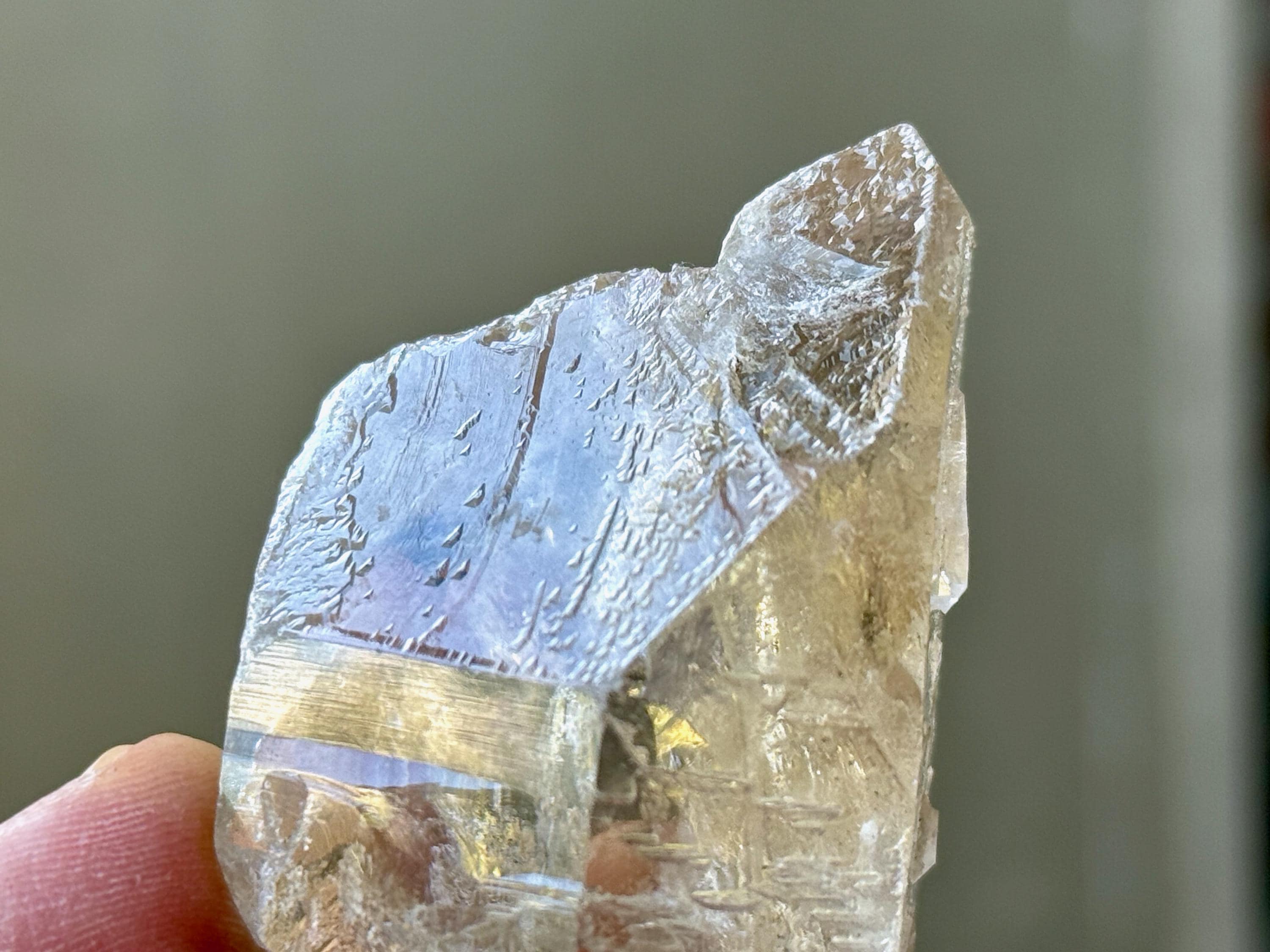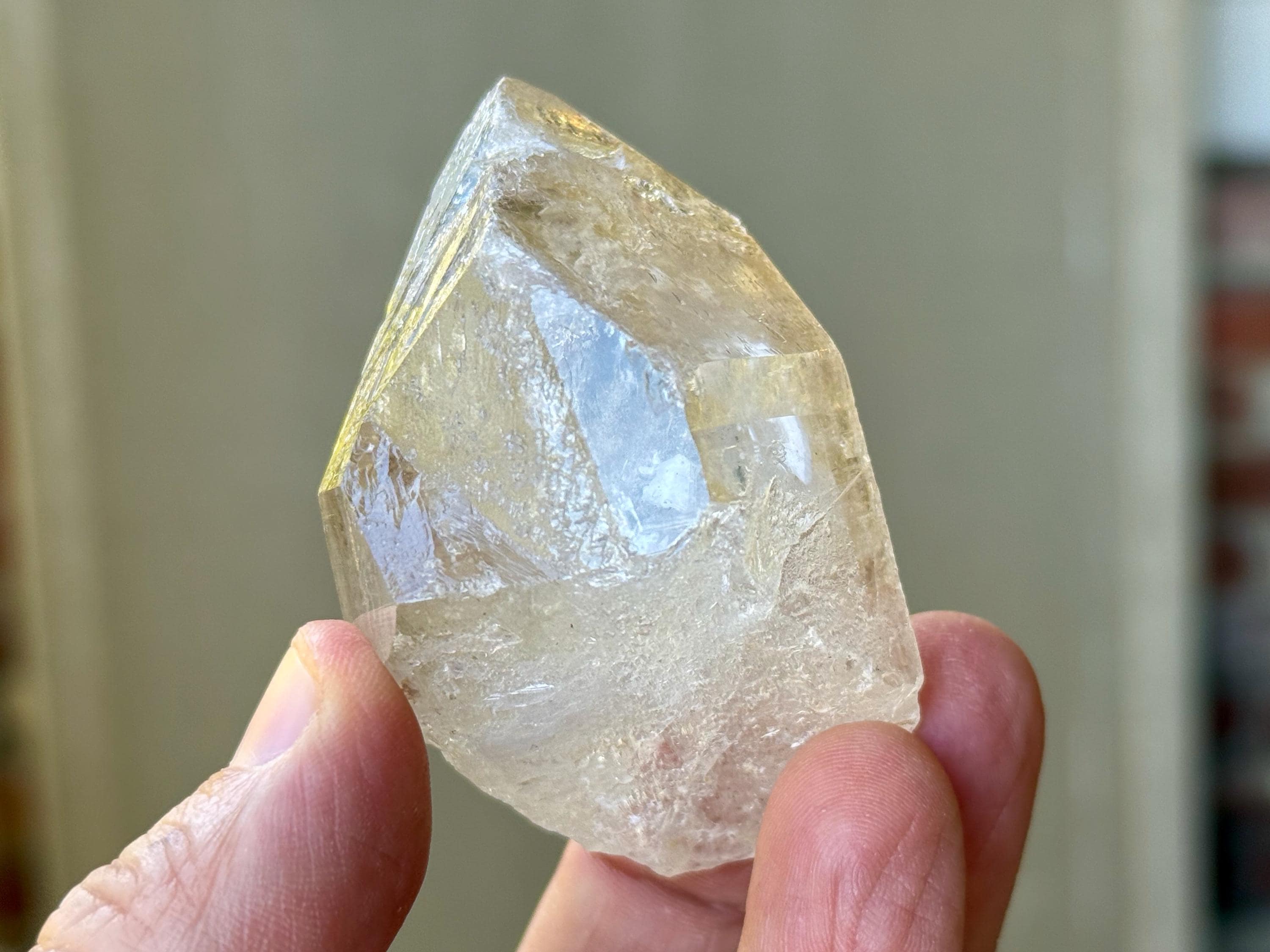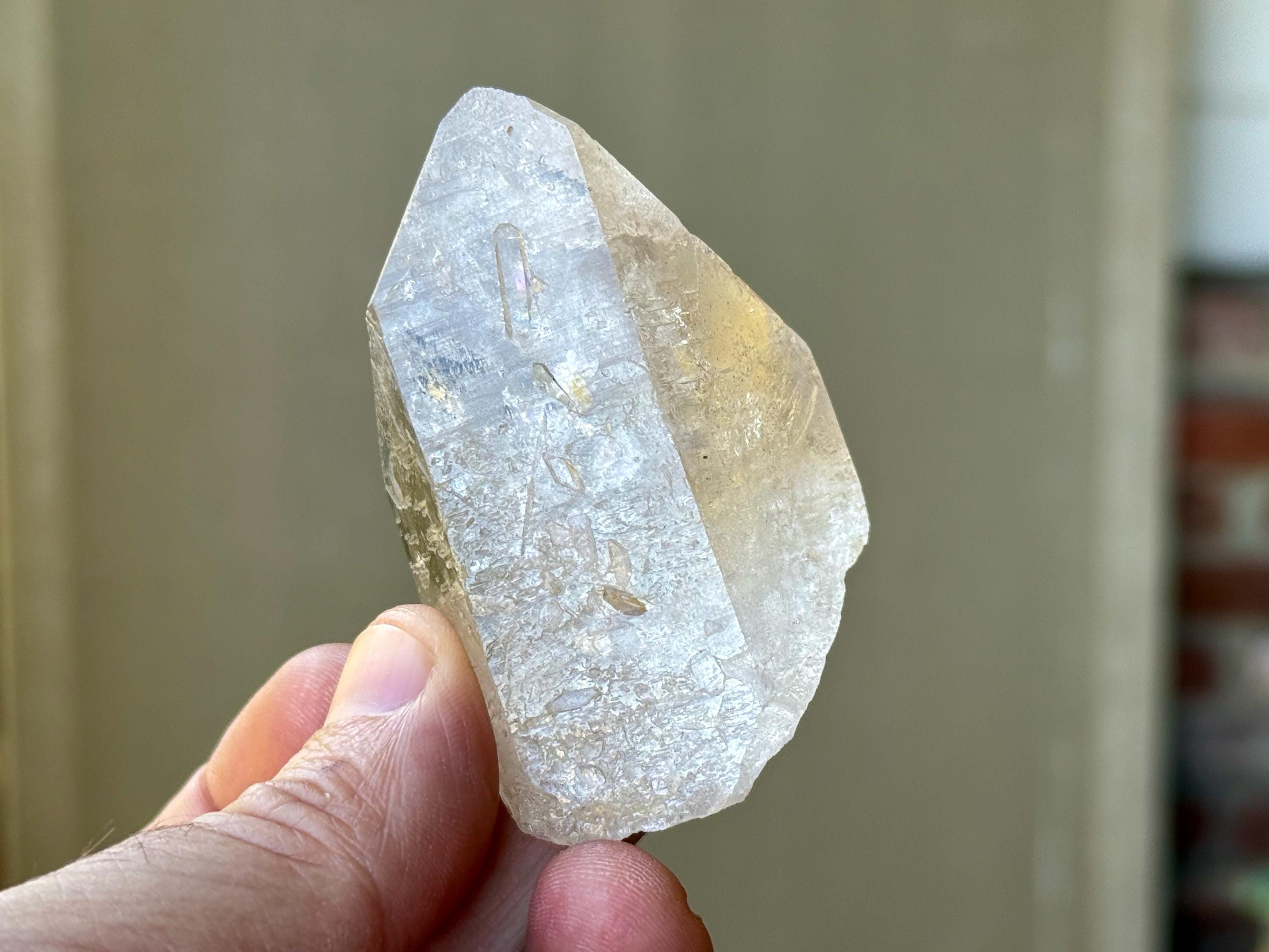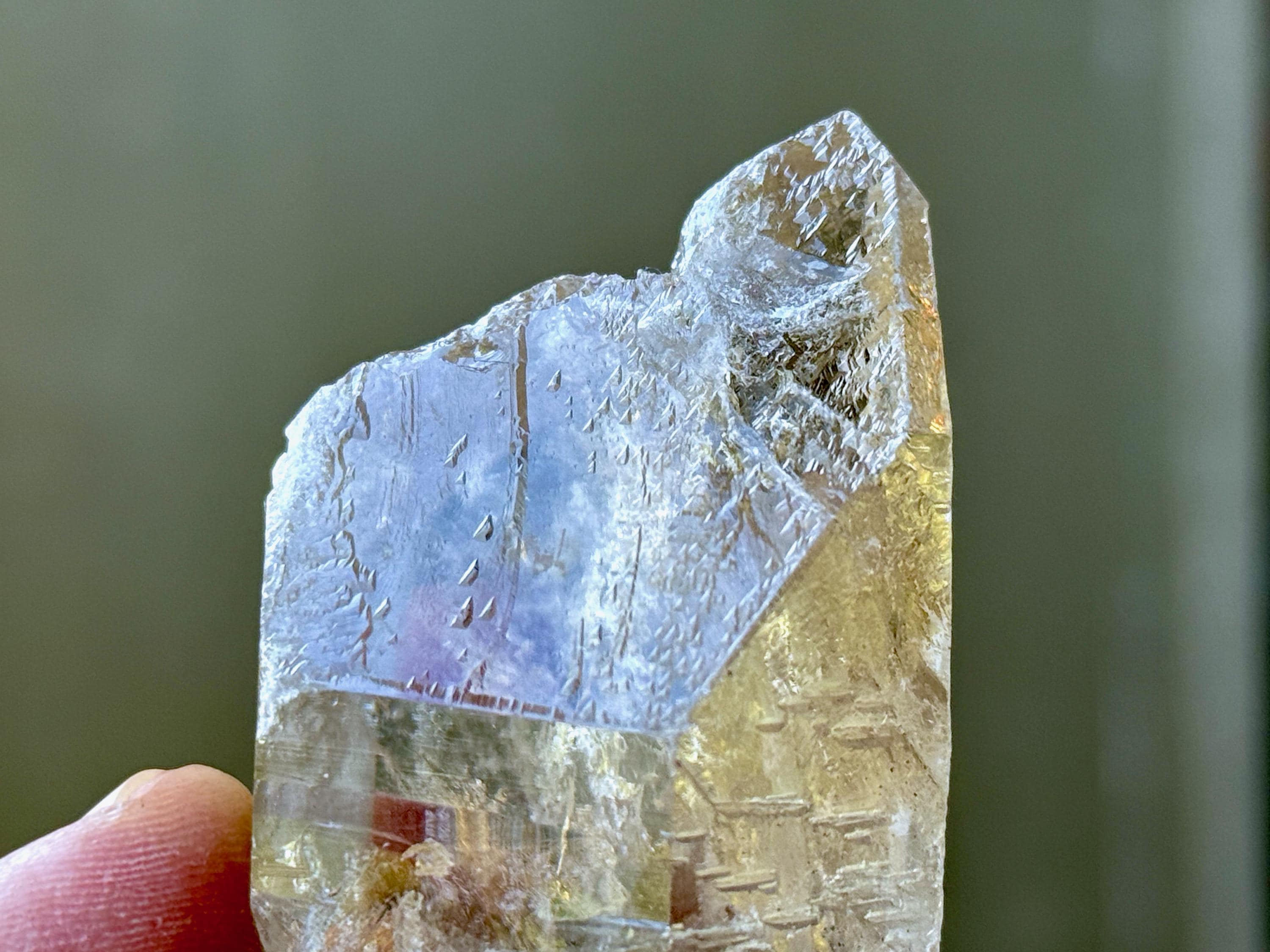 *Please note this crystal is mostly clear and colorless and that the yellow seen in the photos is due to the natural sunlight reflecting off the crystal itself.